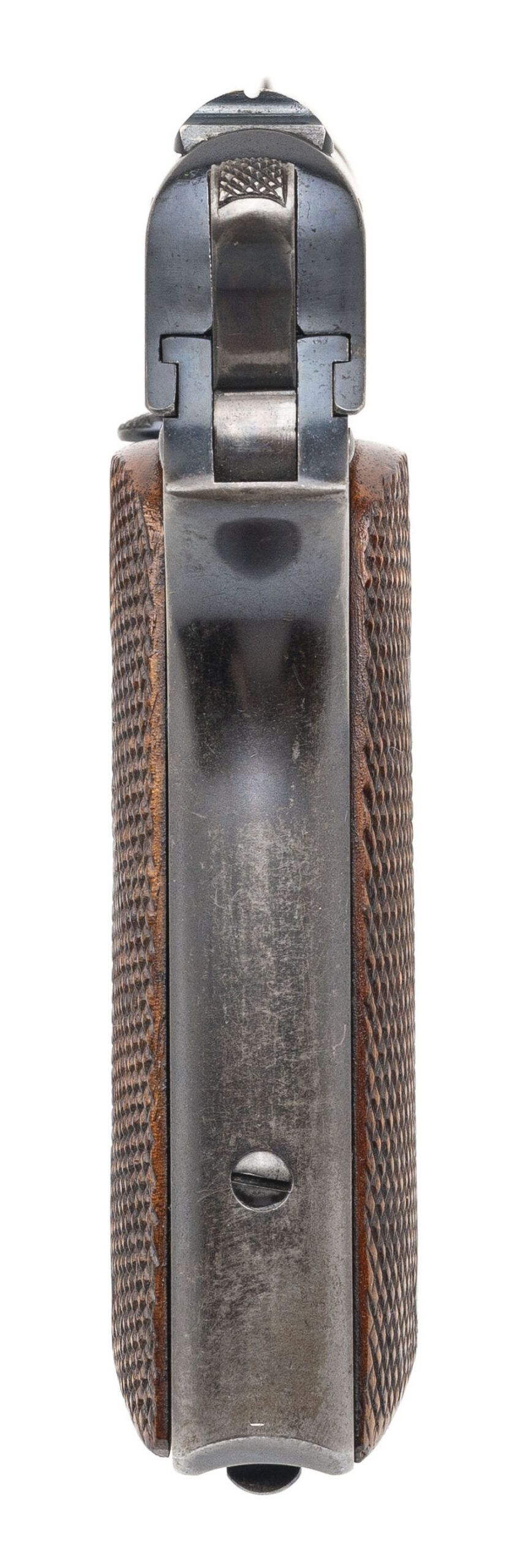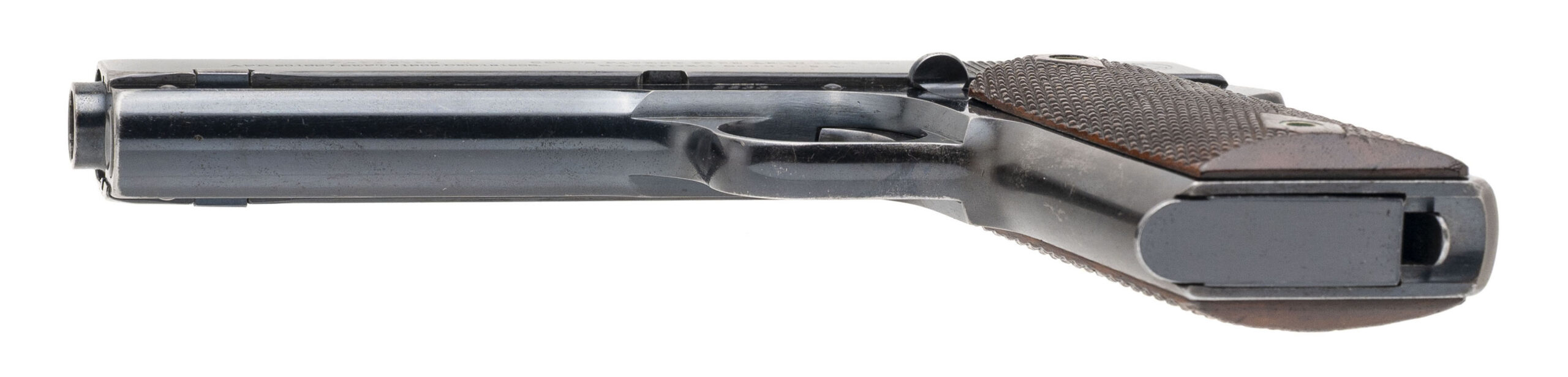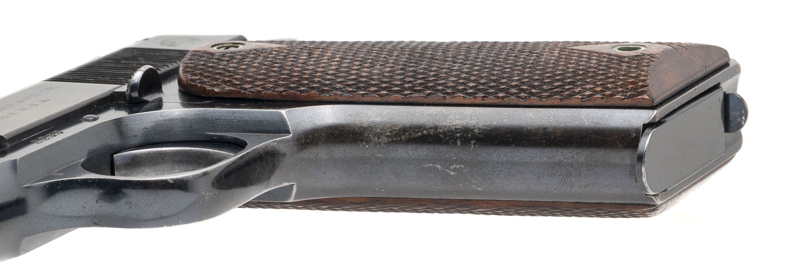 Serial number 2223. Made in 1907. 45 ACP caliber with a 5” barrel. This is a very fine gun with 85% of the original blue with just slight flaking on both the left and right hand sides of the slide. The grips are excellent. The hammer even has most of the original case colors. This is a very fine example of an all original Colt 1905!