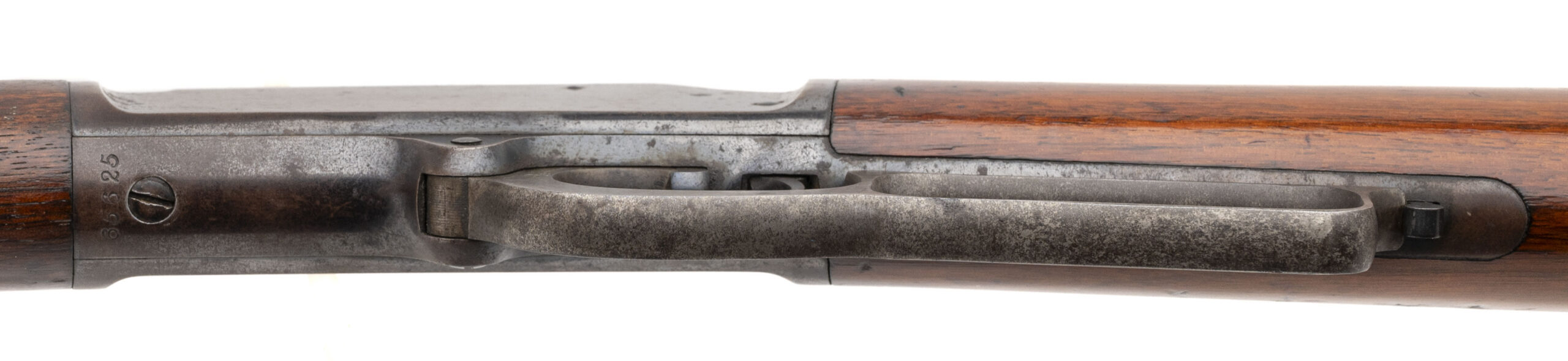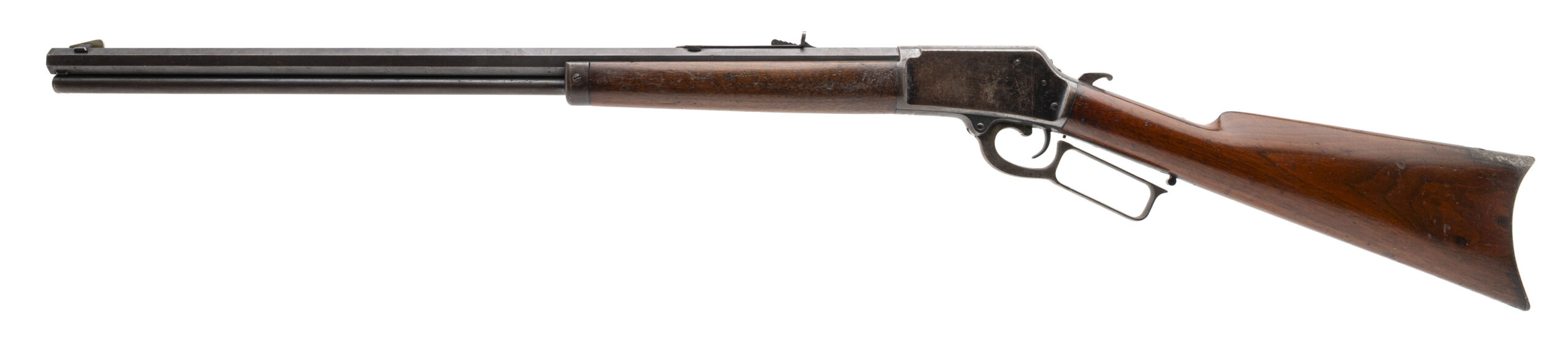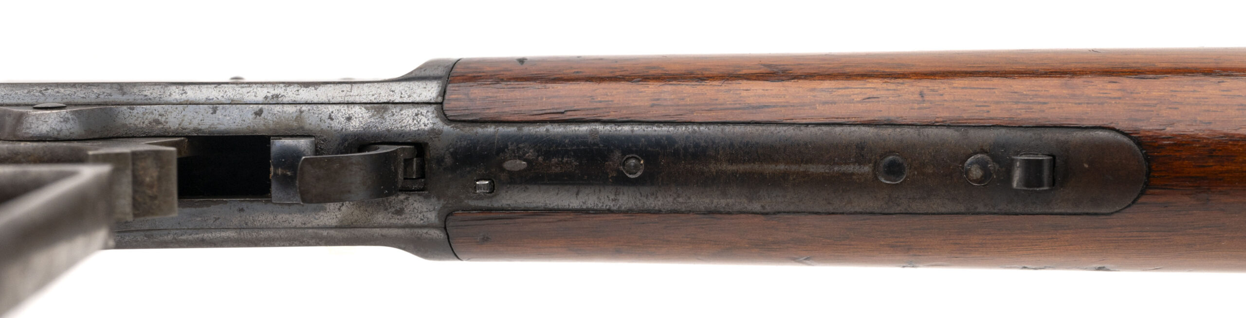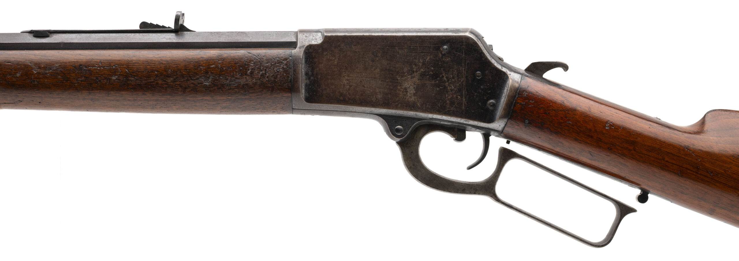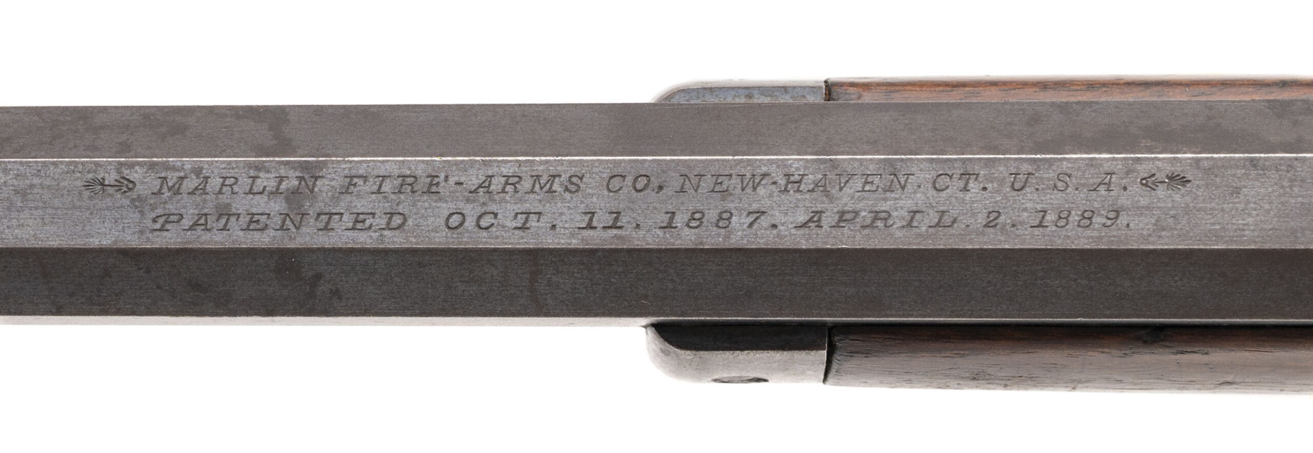 SN 65625. Made in 1892. 32-20 caliber with a 24” barrel. This is a very fine example with 85% of the original blue. The magazine has mostly turned to a smooth brown patina with blue in protected areas. The receiver has 30% of the original blue and a smooth brown patina. The lever still has traces of case colors. The wood is very fine. The bore has very sharp rifling. There is some pitting in the grooves. This is a very fine example of an 1889 Marlin!