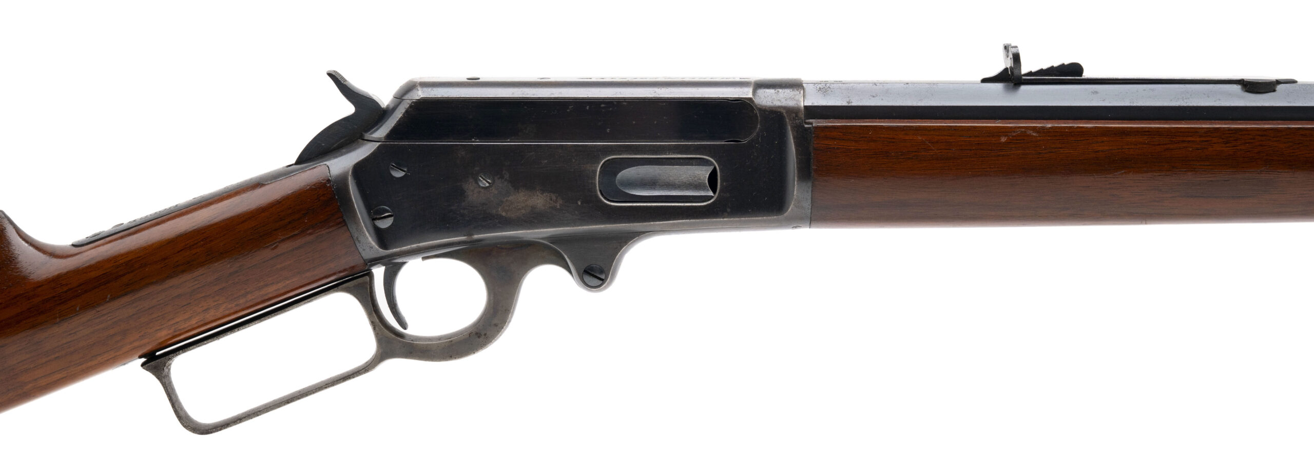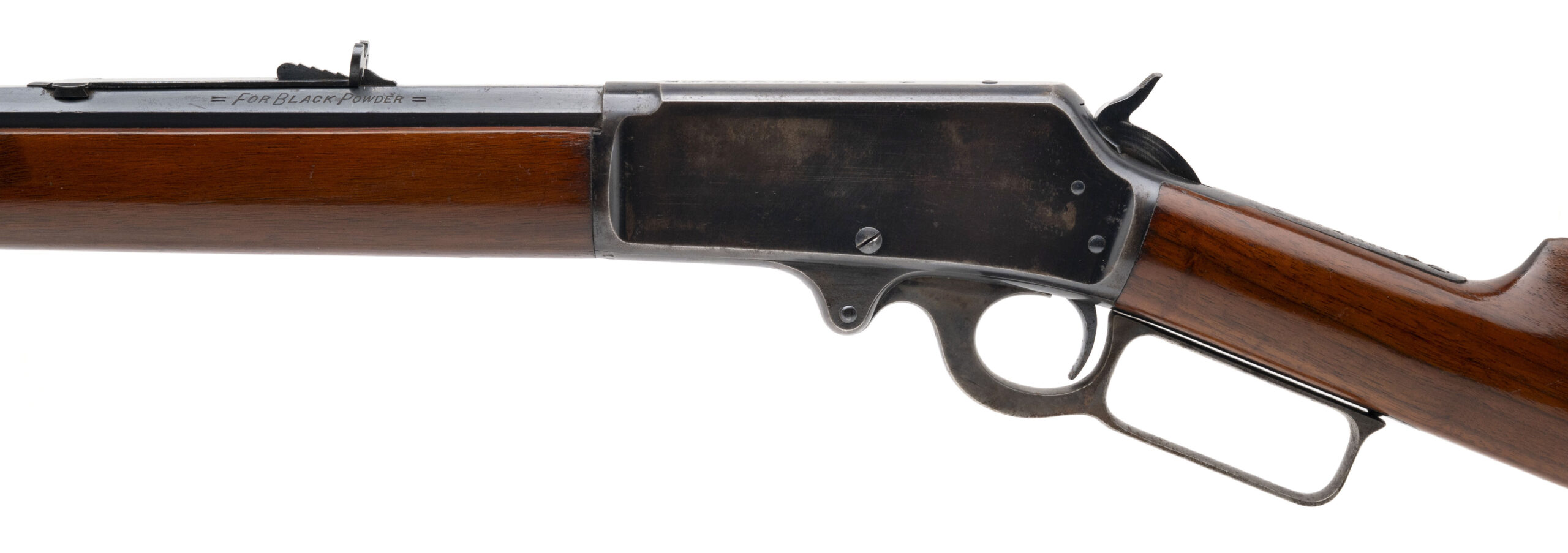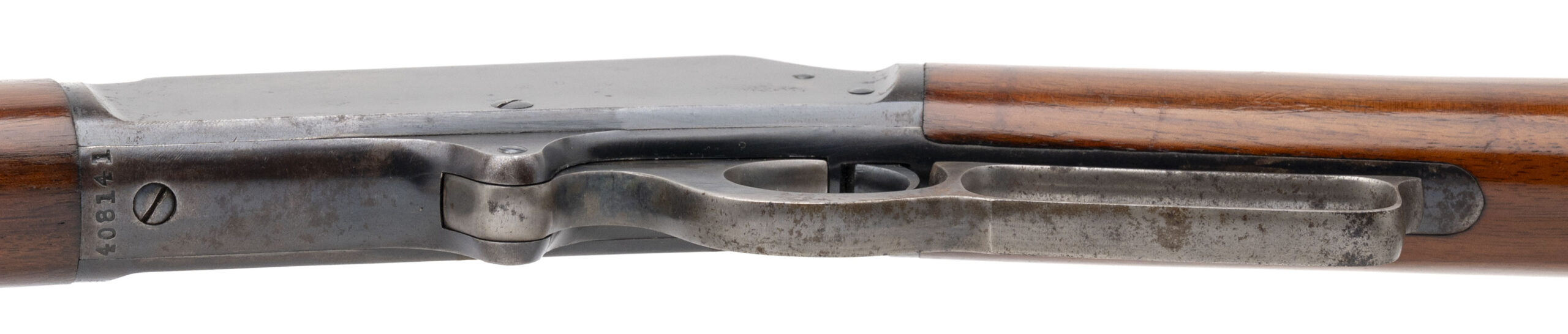 Serial number 408141. Made circa 1910. 38-55 caliber with a 26” half round half octagon barrel. This gun is in very fine original condition with 95% of the original blue finish on the barrel. Approximately 80% of the original finish remains on the frame. The wood is in excellent condition with almost all of the original finish. The bore is dark with pitting, but strong rifling.