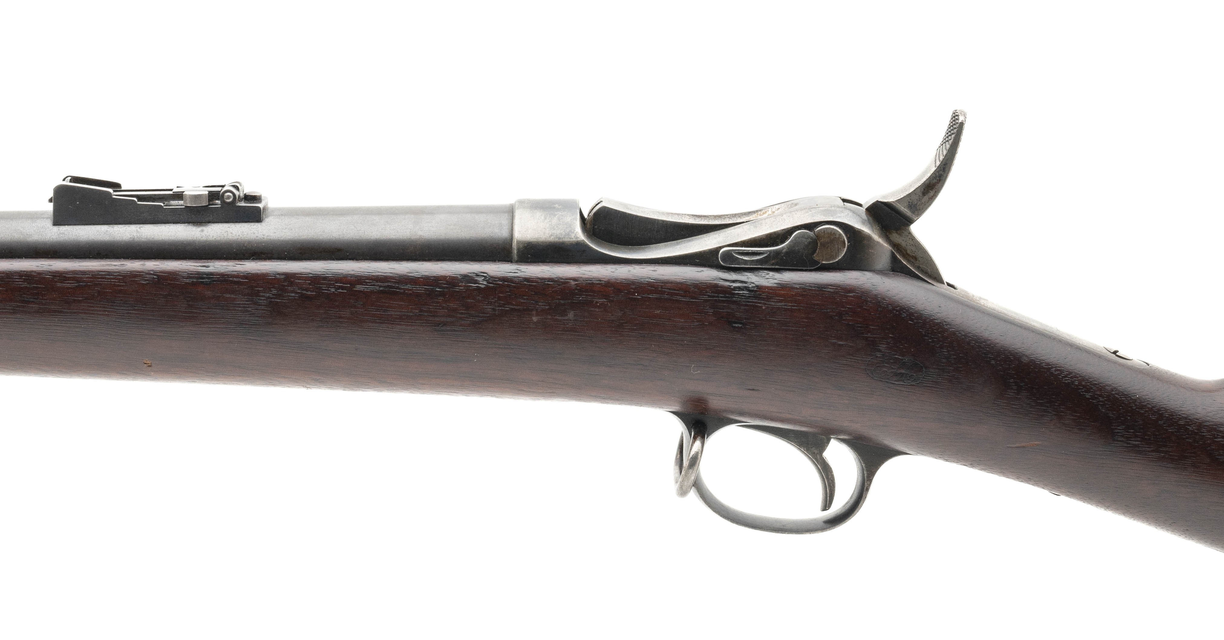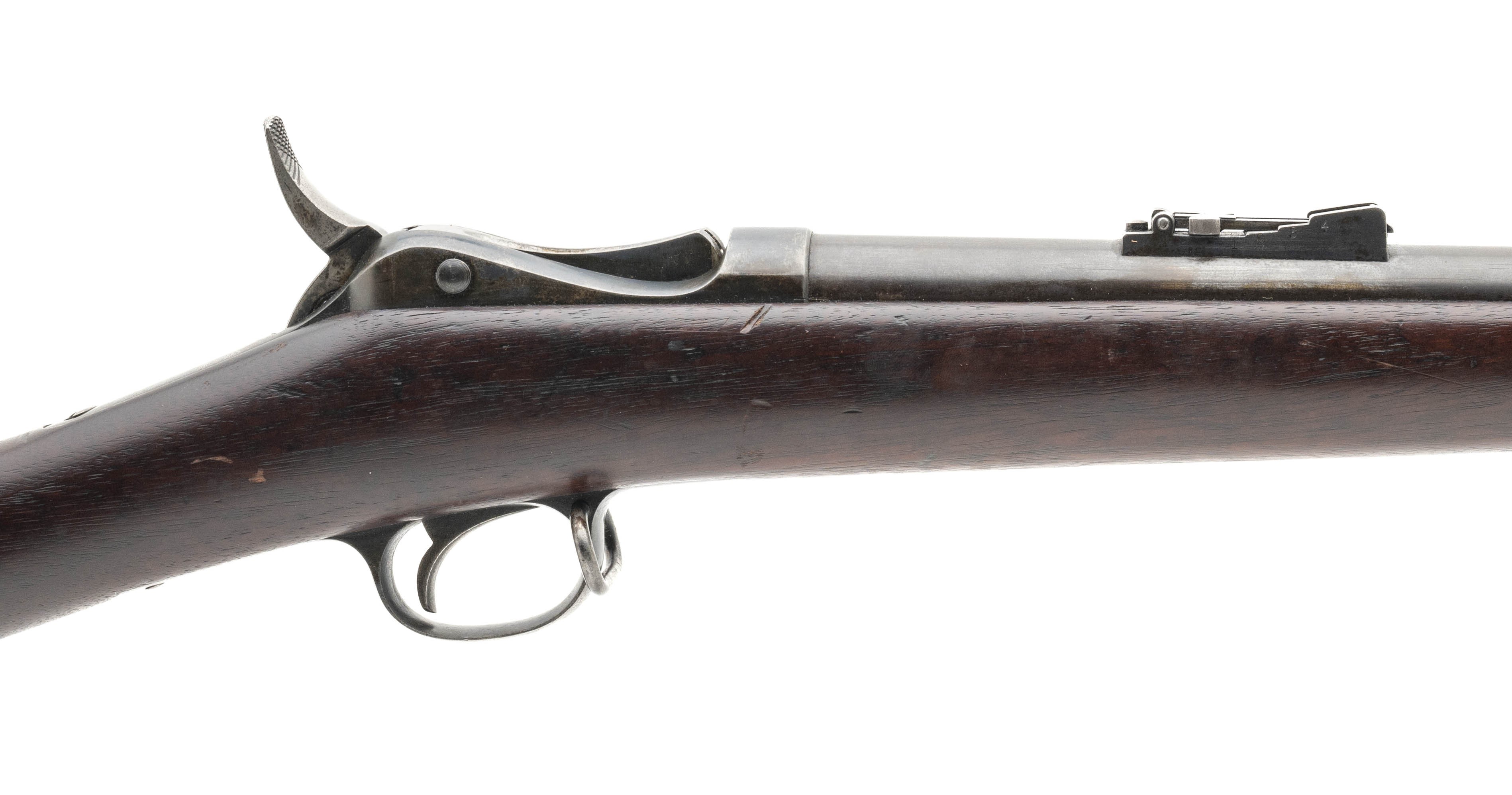 NSN. Made in 1875. 45-70 caliber with a 32 5/8” barrel. Ver fine gun with approximately 70% of the original thinning blue. Wood is very good with a nice sharp cartouche. Very rare gun with only 143 being made!