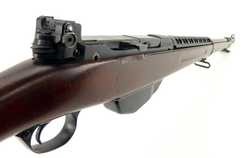 Vickers LTD Pedersen Self Loader .276 Pedersen caliber rifle. Ultra Rare !! 1930’s British trials rifle made by Vickers LTD. Excellent plus condition. Pedersen best known for his semi-auto conversion of the 1903 rifle also had interest of the U.S. and Japan for this design. Very few of these were made. This is the best one we have seen. Bore is excellent. Serial number 187 Toggle action like the Luger. In the end England and Japan kept bolt actions we kept M 1 Garand.
