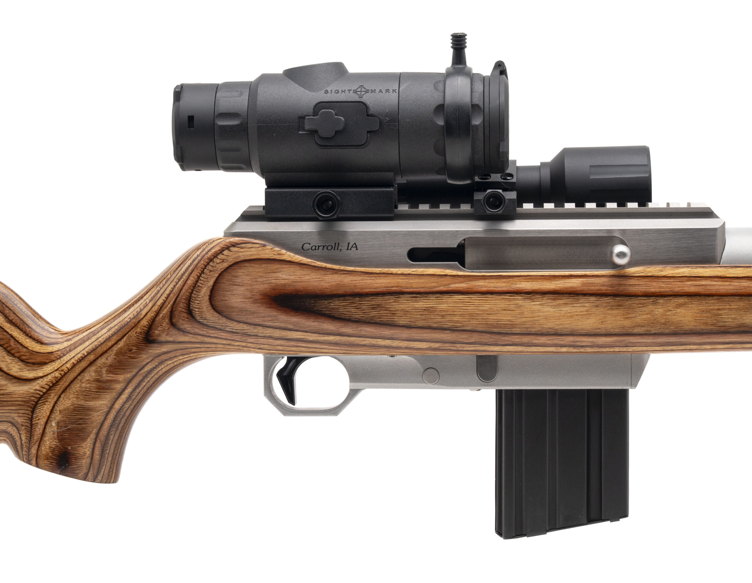 Sn: EV00064, modern production semi auto custom rifle chambered in 223 with a 20” stainless steel bull barrel with flush muzzle brake, custom machined stainless action and bottom metal with a volquartsen match trigger in a Laminated stock with a Sight Mark Wraith 4k night vision scope with IR light. Accepts standard AR magazines, action is butter smooth, bore and overall condition are excellent.