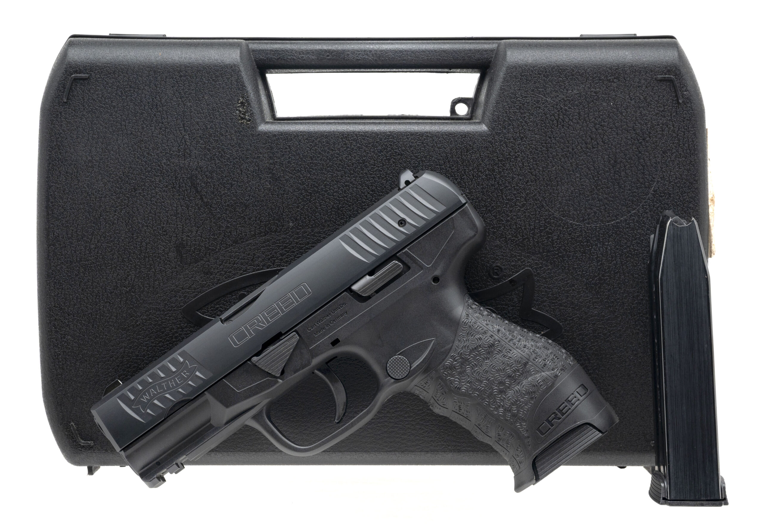 SN: FCR2149. Modern production, 9mm with a 4" barrel. Bore is excellent. Single-action only polymer frame pistol with 3 dot sights, accessory rail, and matte black finish. Finish shows light handling wear. Overall condition is near excellent. Includes an additional magazine, and original case.
