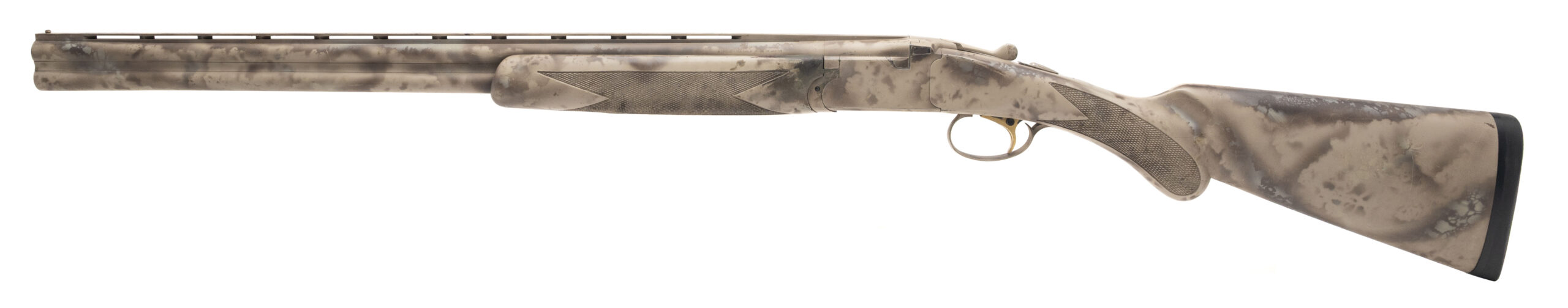 SN: GN06389. Modern production, 20 gauge with 26" vent rib barrel w/removable chokes chambered for 3" shells. Bores are excellent. Over/under field shotgun with custom painted finish, and checkered synthetic forend & stock with a 14.5" LOP. Custom finish is worn and shows minor loss and marks throughout. Overall condition is very good.