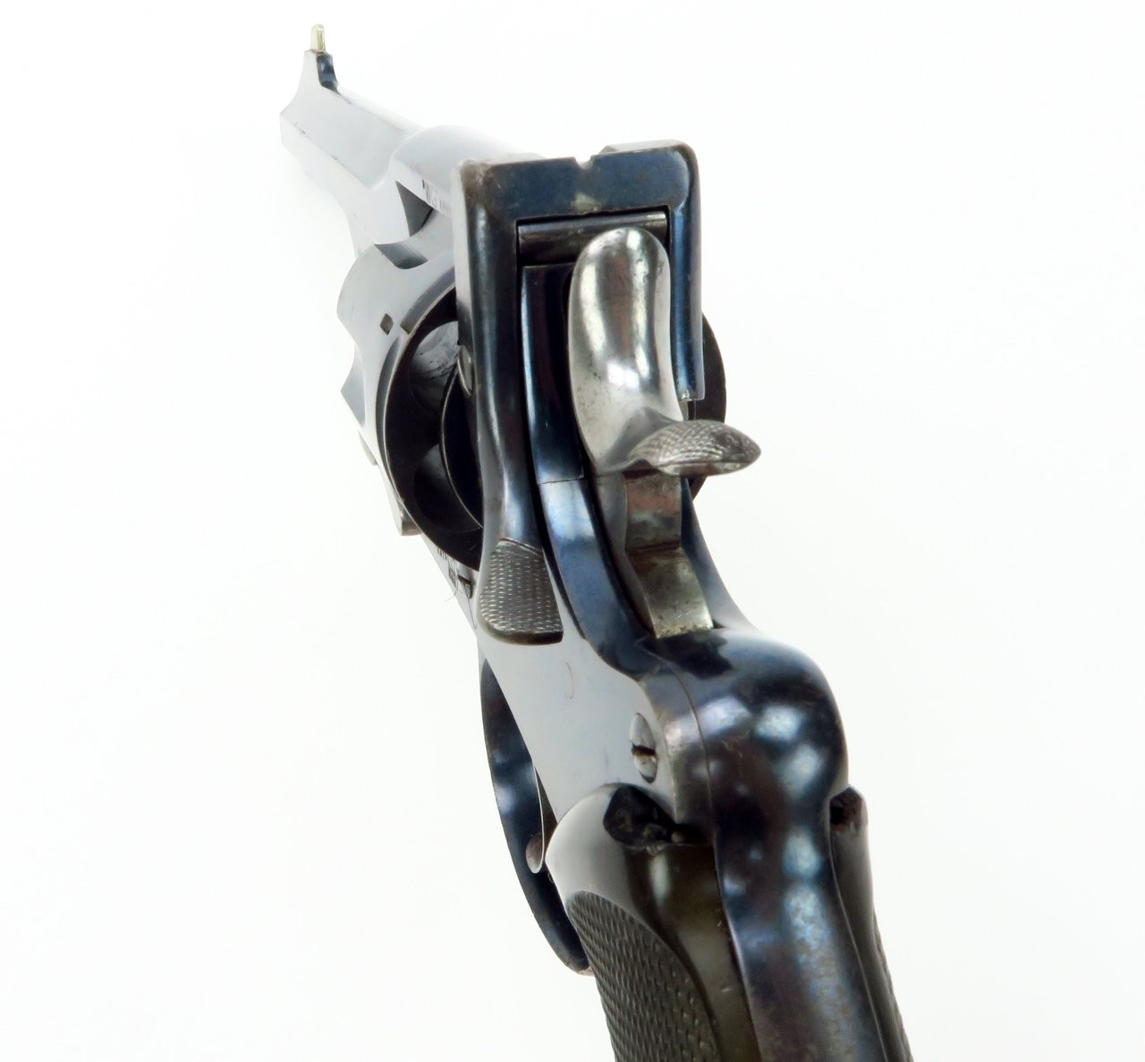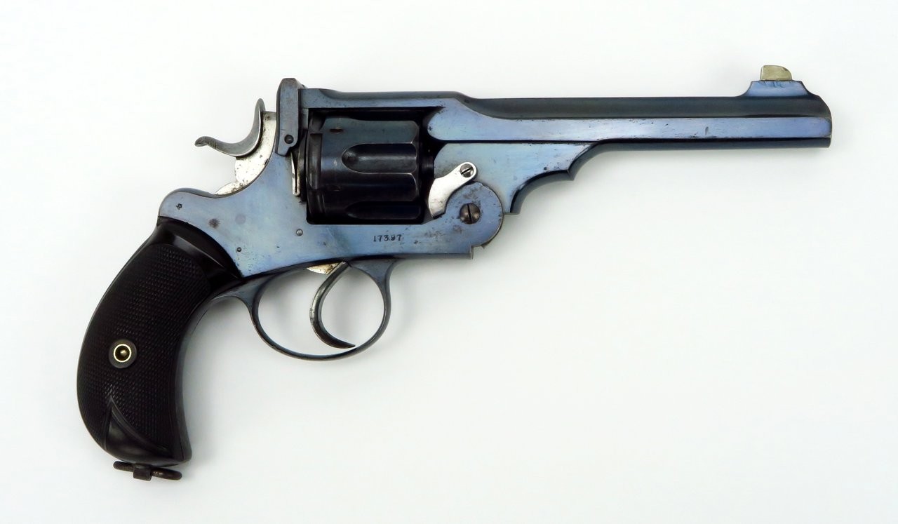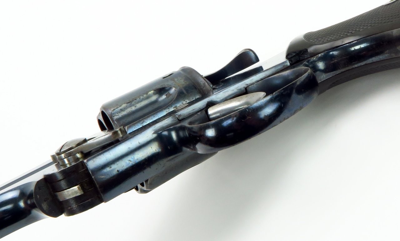 Webley 1896 WG Army. .455 caliber revolver. Bore is about very good action works perfectly. Grips have a tiny chip on each side at the top. Gun has 92-93% blue. Much better condition than most WG revolvers.