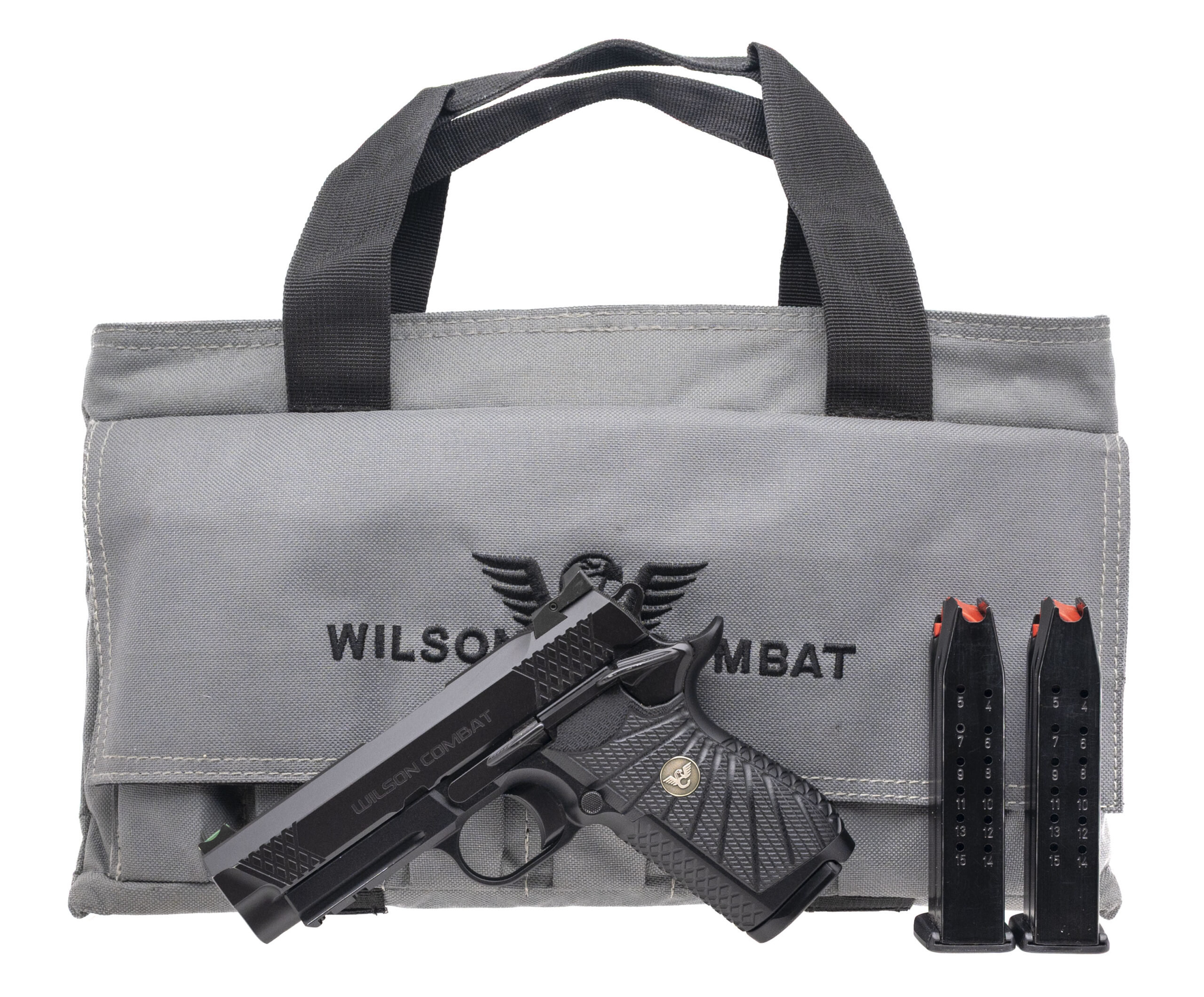 SN: WCX4274, modern production 9mm double stack semi-auto hammer fired pistol with a 3.75" fluted barrel with target crown, fiber optic front sight, aluminum frame with checkered front and back strap with integral beavertail. Overall in very good condition with only some very minor edge wear. Comes with original bag and 2 extra magazines.