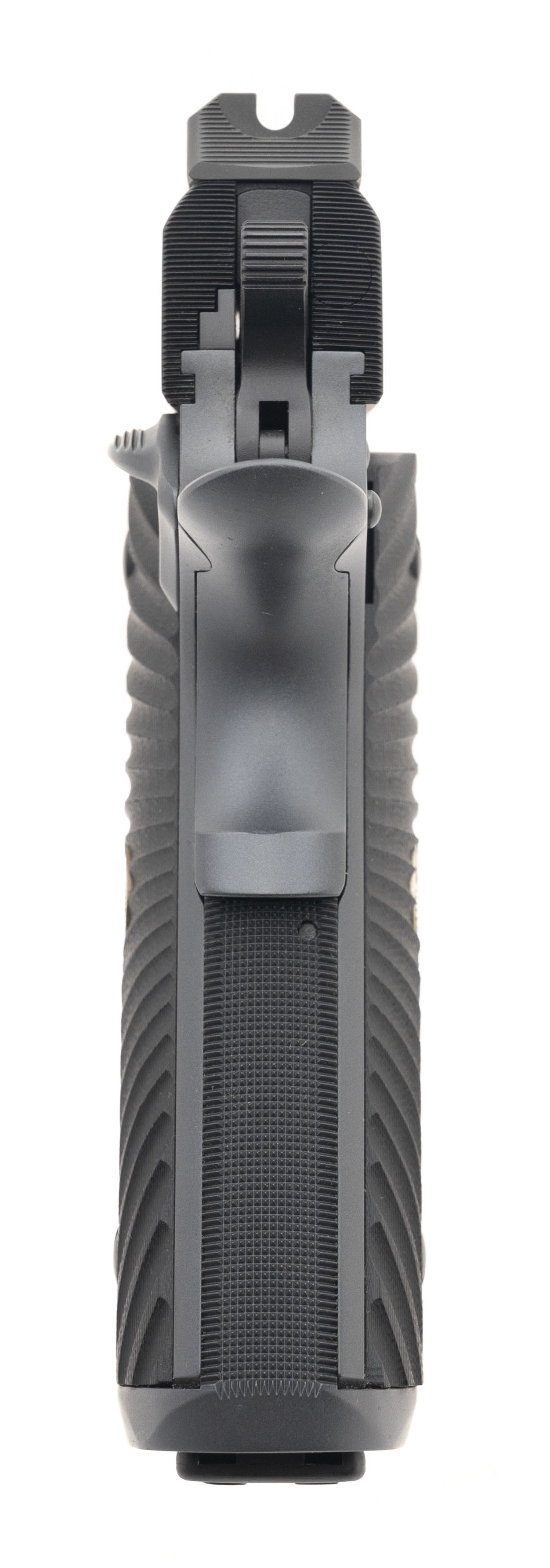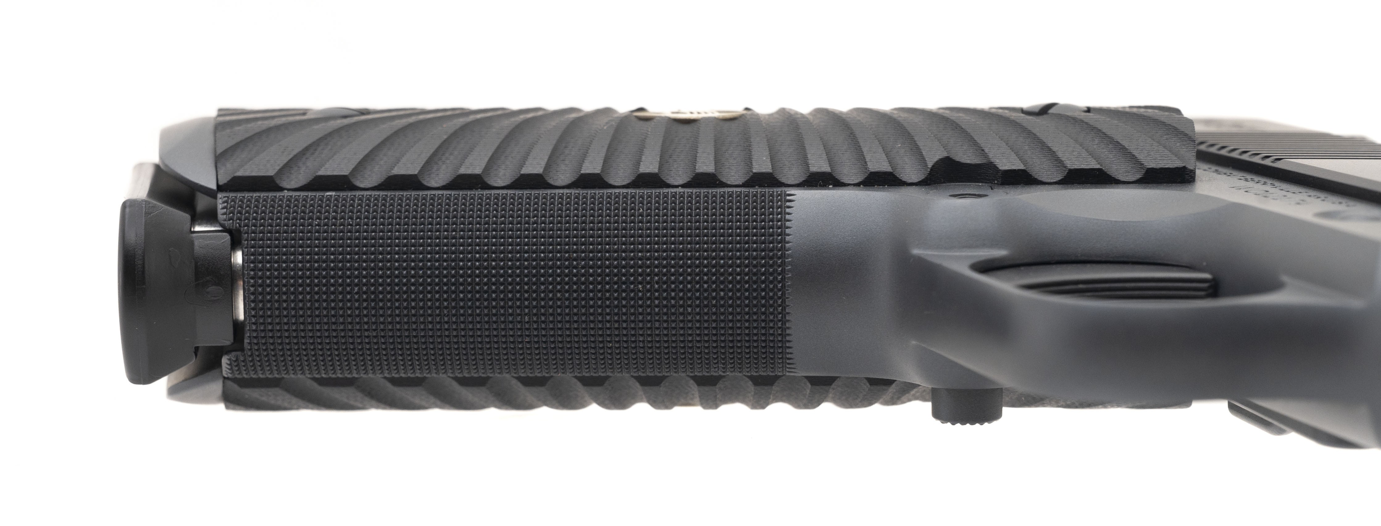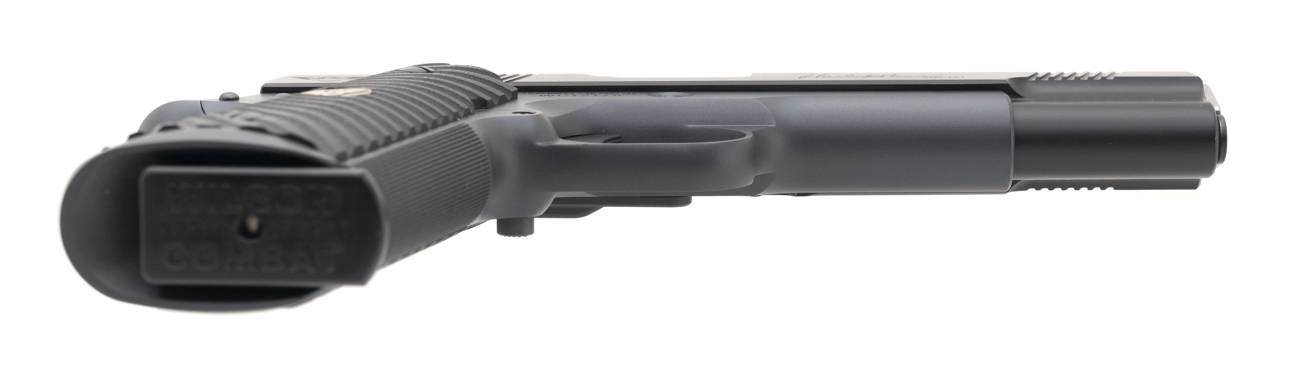 SN:WC63322. Manufactured 2015, .45 Auto with 5' barrel. Bore is in excellent condition. Premium two tone 1911 with hand fit 5" government match barrel, black G10 Starbursts flat bottom grips, battlesights with fiber optic front sight, fluted chamber and skeletonized hammer. Overall condition is excellent. Comes with Wilson combat range bag.