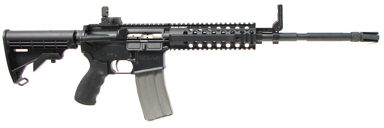 Wilson Combat Tactical Custom .223 Rem caliber rifle. M4 Tactical with quad rail, flip up sights and Vortex flash hider. New.