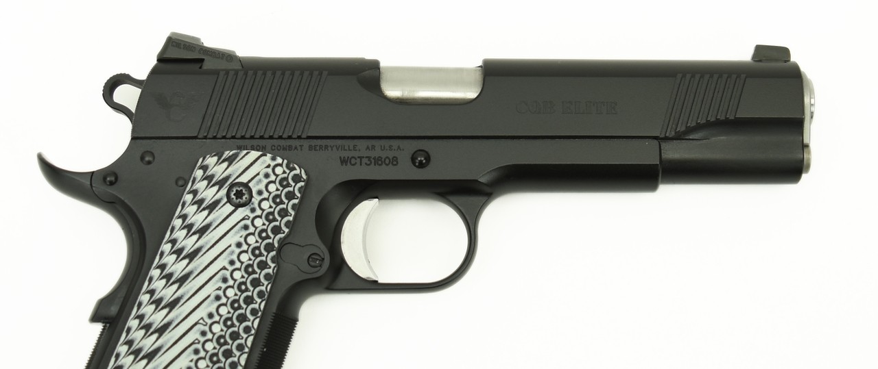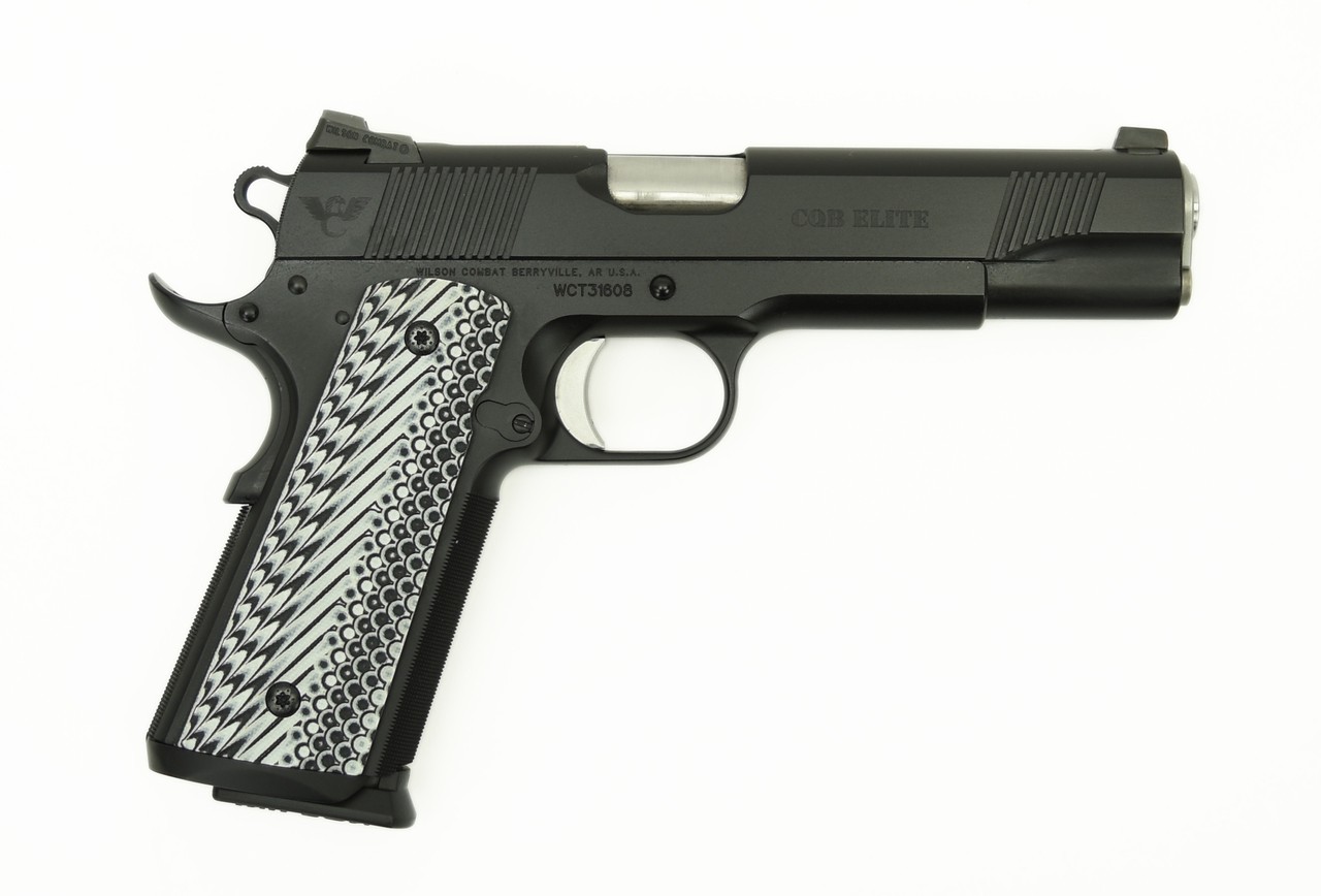 Wilson CQB Elite .45 ACP caliber pistol. 5” tactical pistol with black finish and VZ grips. Excellent condition with bag and two extra magazines.