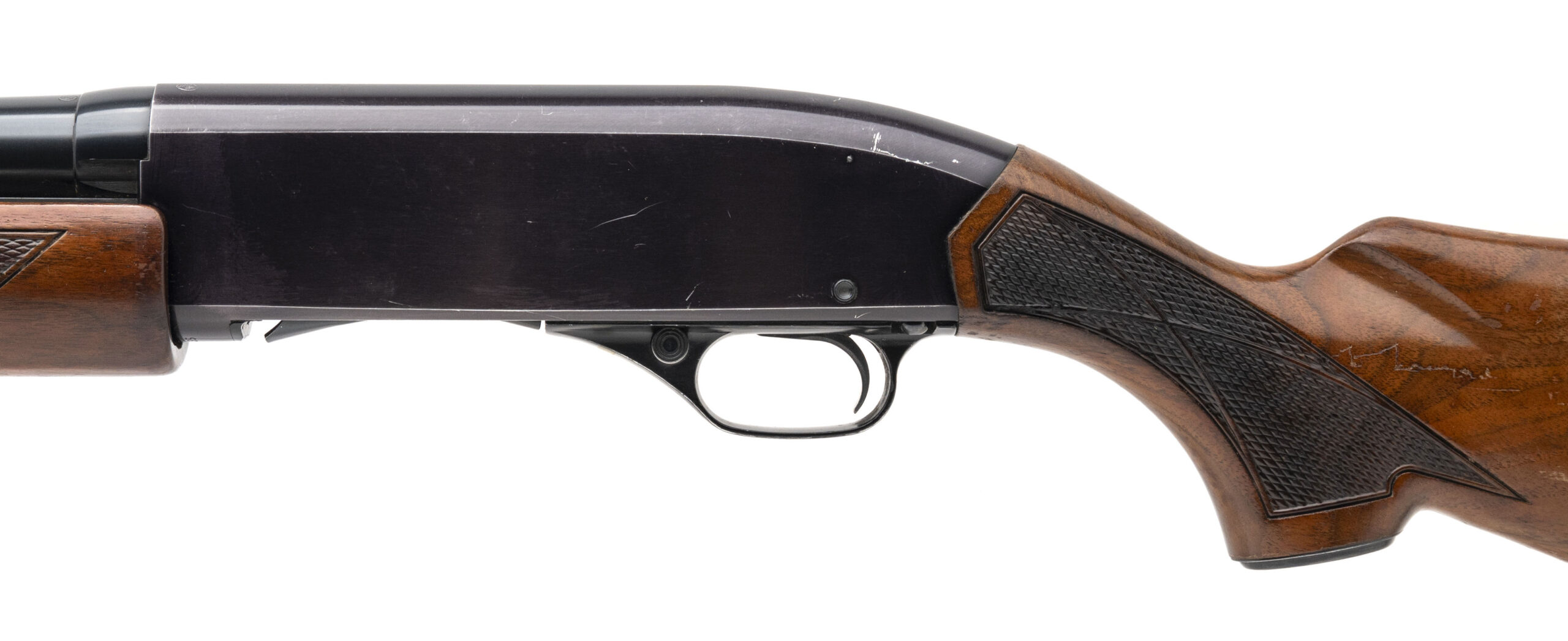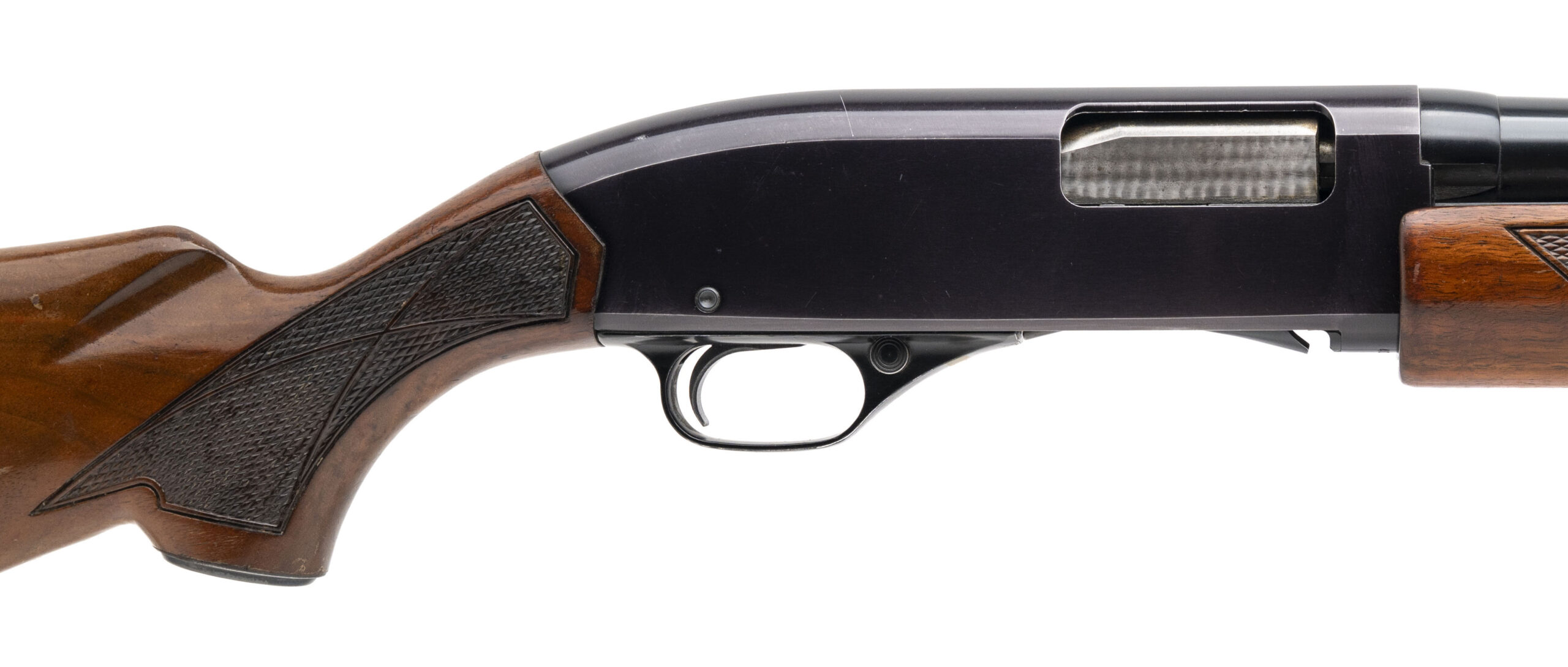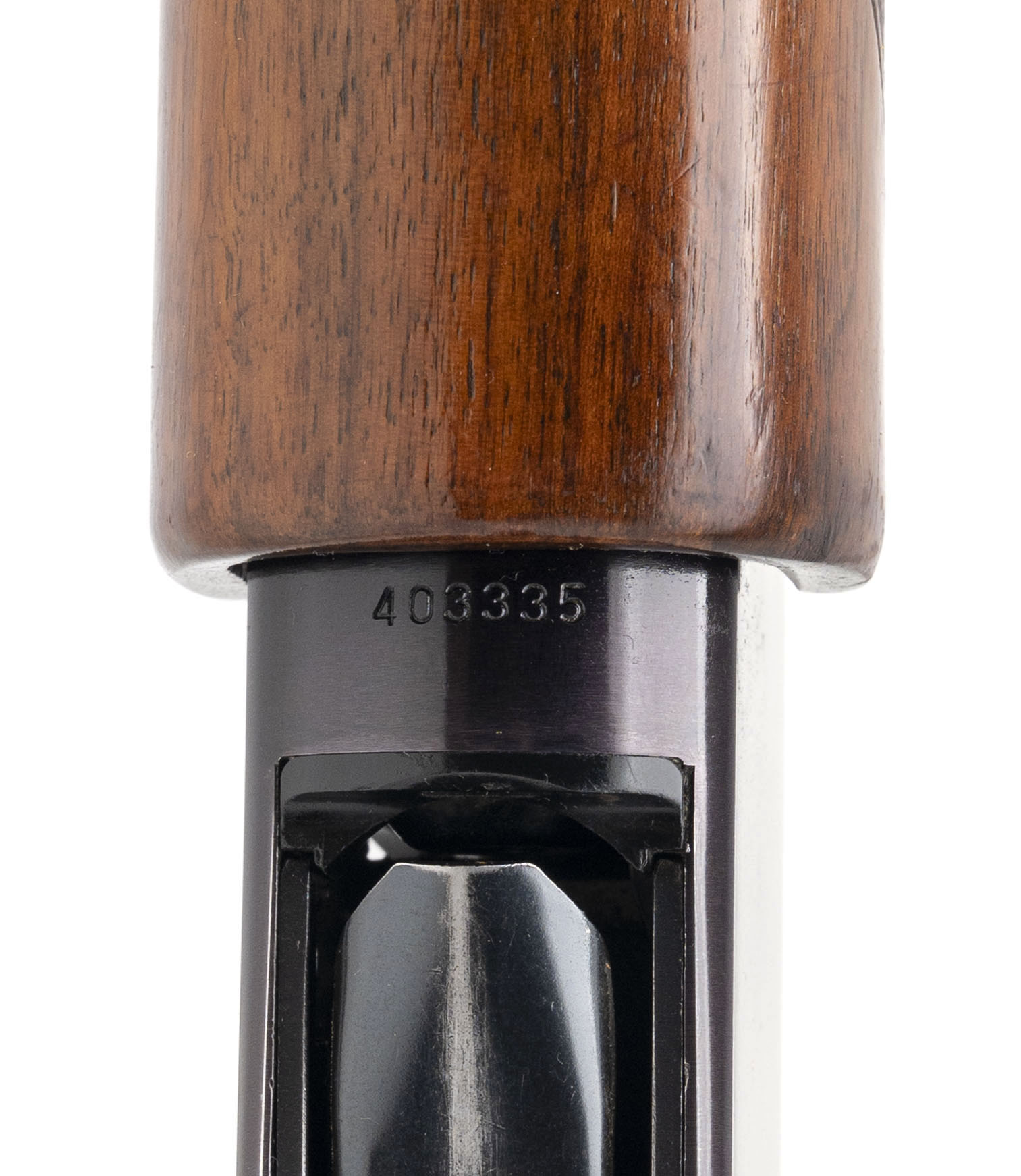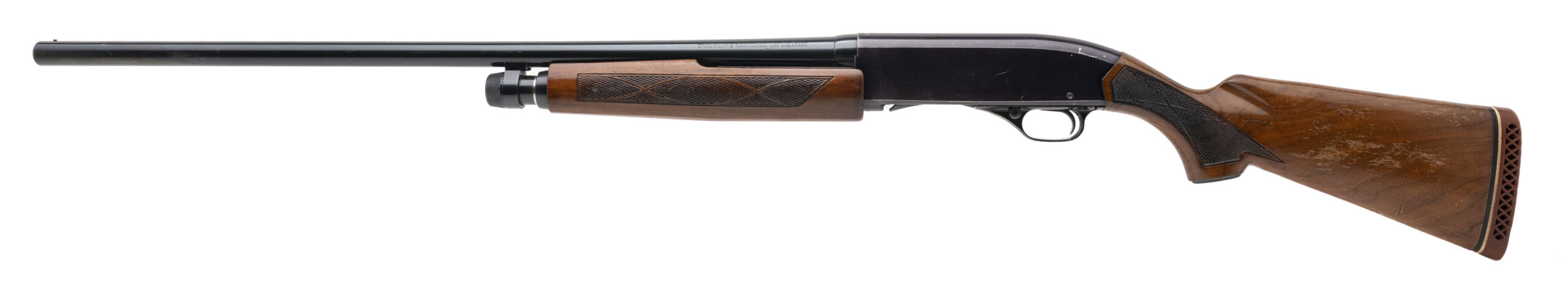 SN: 403335. 1960s vintage, 12 gauge with a 28" mod. bore barrel chambered for 2 3/4" shells. Bore is very good. Pump-action field shotgun with blued finish, and checkered wood stock & forend with a 14.25" LOP. Finish shows minor handling marks. Stock & forend are worn with marks, most notably to the buttstock. Overall condition is good.