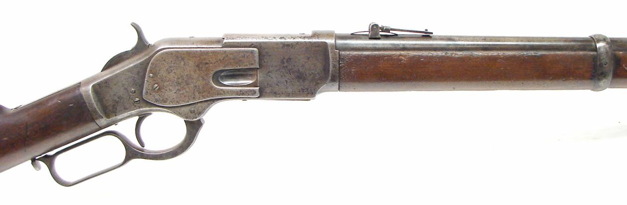 Winchester 1873 1st Model Musket. Rare. Manufactured in 1875. Only 600 1st Model Muskets were made. Bore has very strong rifling and is dark in the grooves. Gun shows honest use and no abuse. Action works fine. Stock is fine with normal nicks and dents. Hard to find early 1st Model.
