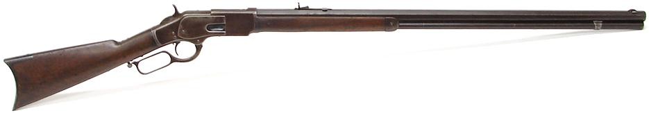 Winchester 1873 1st model rifle with 30 barrel and set trigger. Manufactured in 1876. Serial number 18139. Smooth patina gun w (w3247)