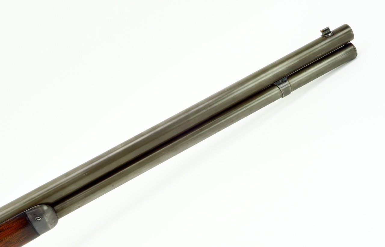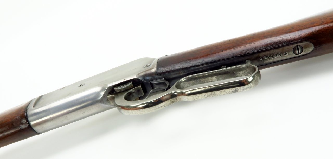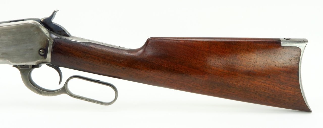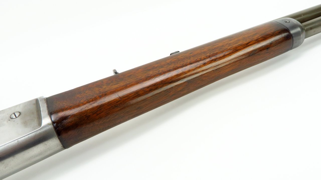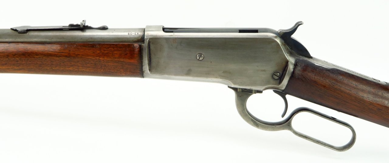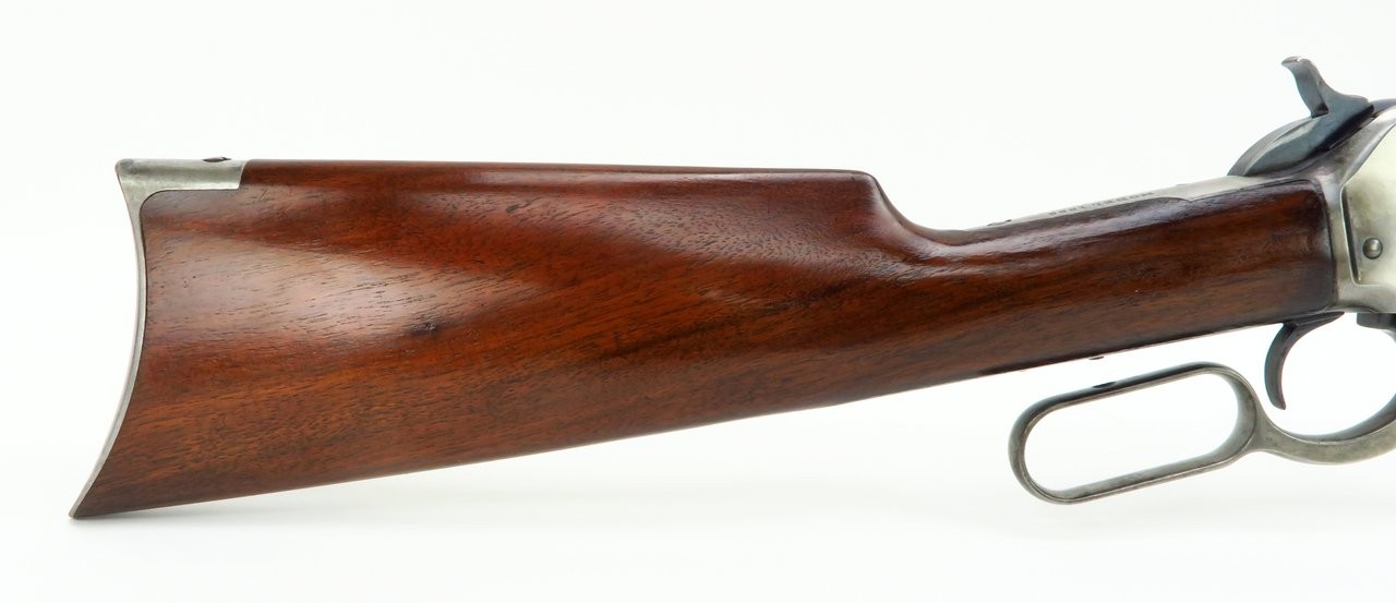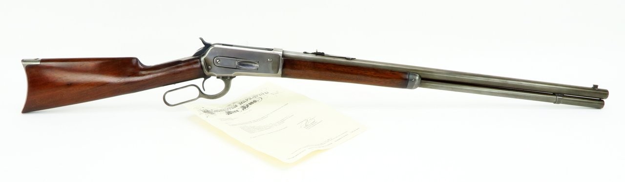 Winchester 1886 .50 Express caliber rifle. Made in 1914. Very sharp gun in .50/110. This gun shows very little use. The people we originally bought this gun from said their relative cleaned the finish off. Bore is excellent as well as the action being tight. Wood is fantastic. Gun comes with a letter. The letter is interesting because it mentions the shipping address of G. Watts and Son in Hawley, Pennsylvania. Hardly any Winchester letters come with a shipping address.