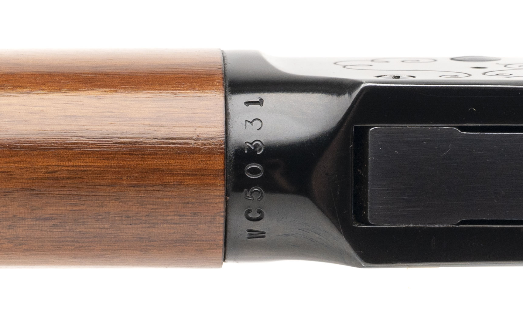 SN: WC50331 made in 1968. .30-30 lever action rifle with a 26″ octagon barrel, engraved receiver with saddle ring and blued metal finish. Walnut furniture with curved steel butt plate and medallion inlaid in the stock. Overall in near excellent condition with an excellent bore.