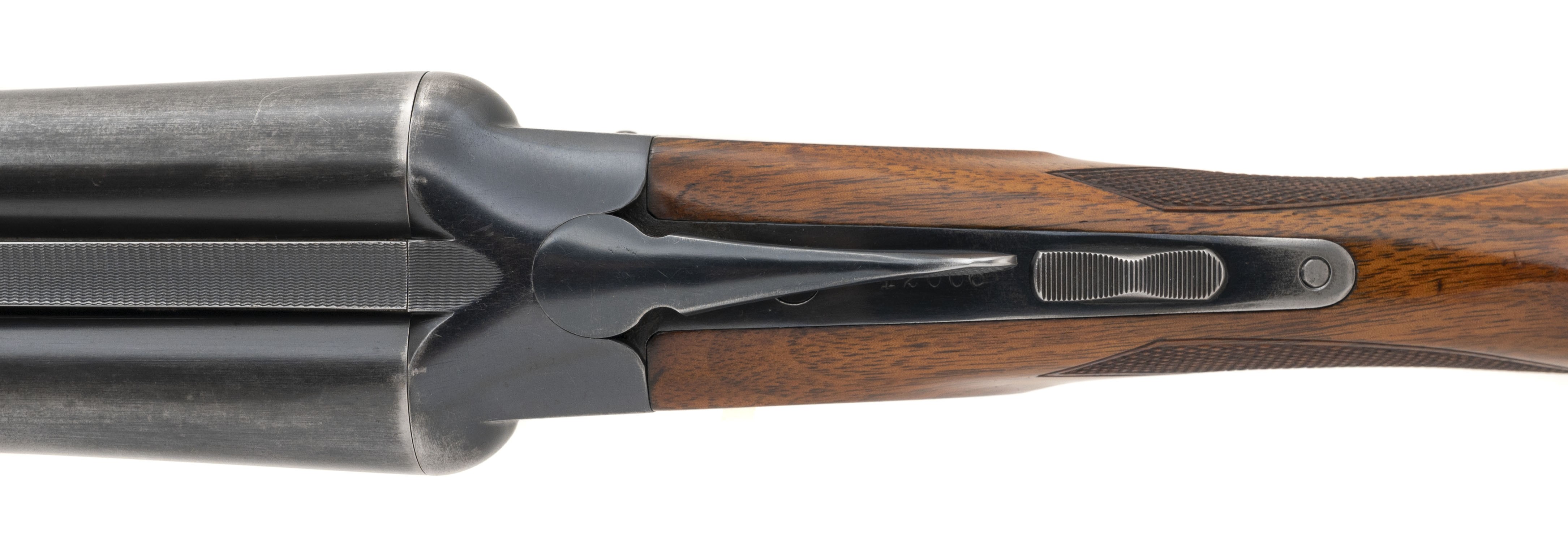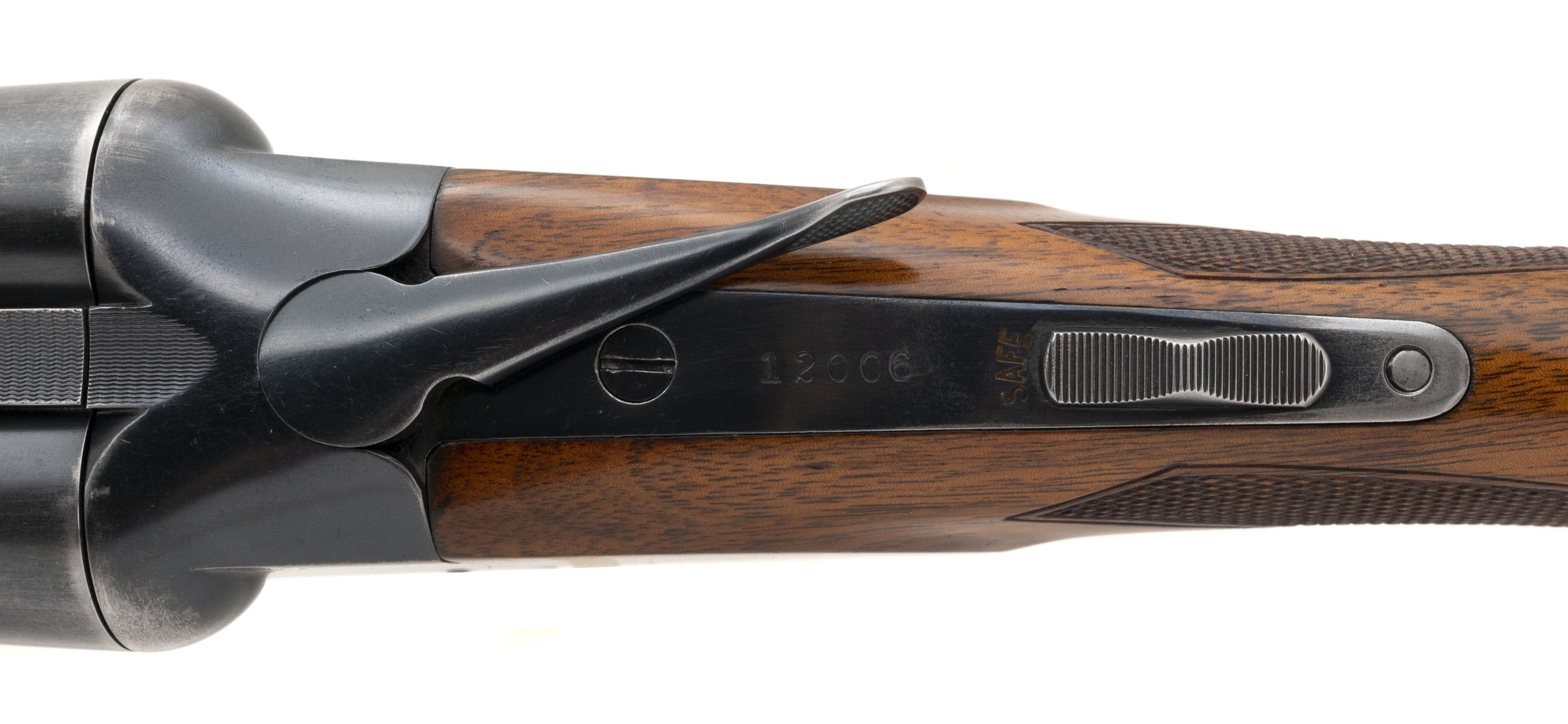 SN: 12006. 1930's production, 12 gauge with 26" barrels choked WS-1 & WS-2. Pre-war double skeet gun. Bores and action are excellent. Shows handling wear to the underside of the receiver and barrels at the breech. The stock has been refinished and has a recoil pad added. LOP is 14". Overall very good condition.