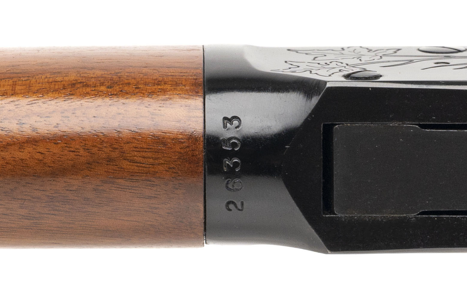 SN: 26353 made in 1967. 30-30 lever action rifle with a 26" octagon barrel, beaded front sight and semi-buckhorn rear sight with an engraved receiver, blued metal, finish and walnut furniture with curved steel butt plate. Overall in near excellent condition for the age with an excellent bore.