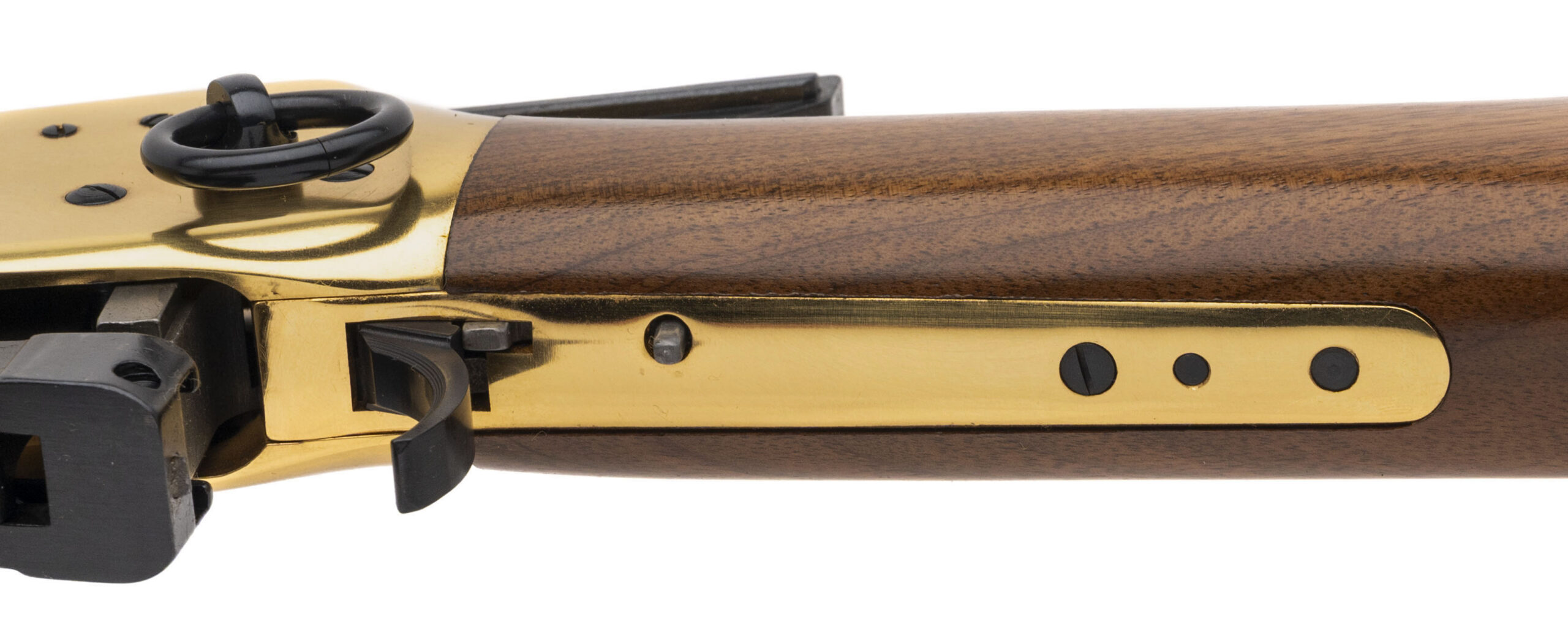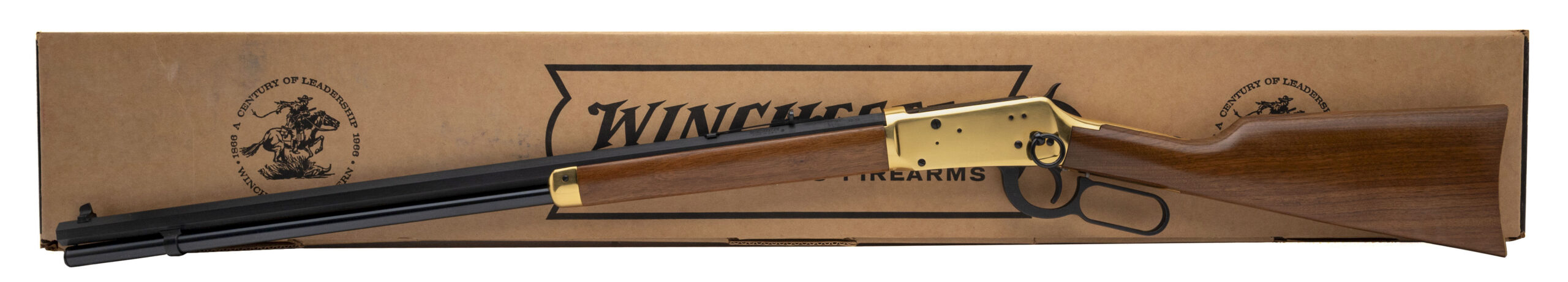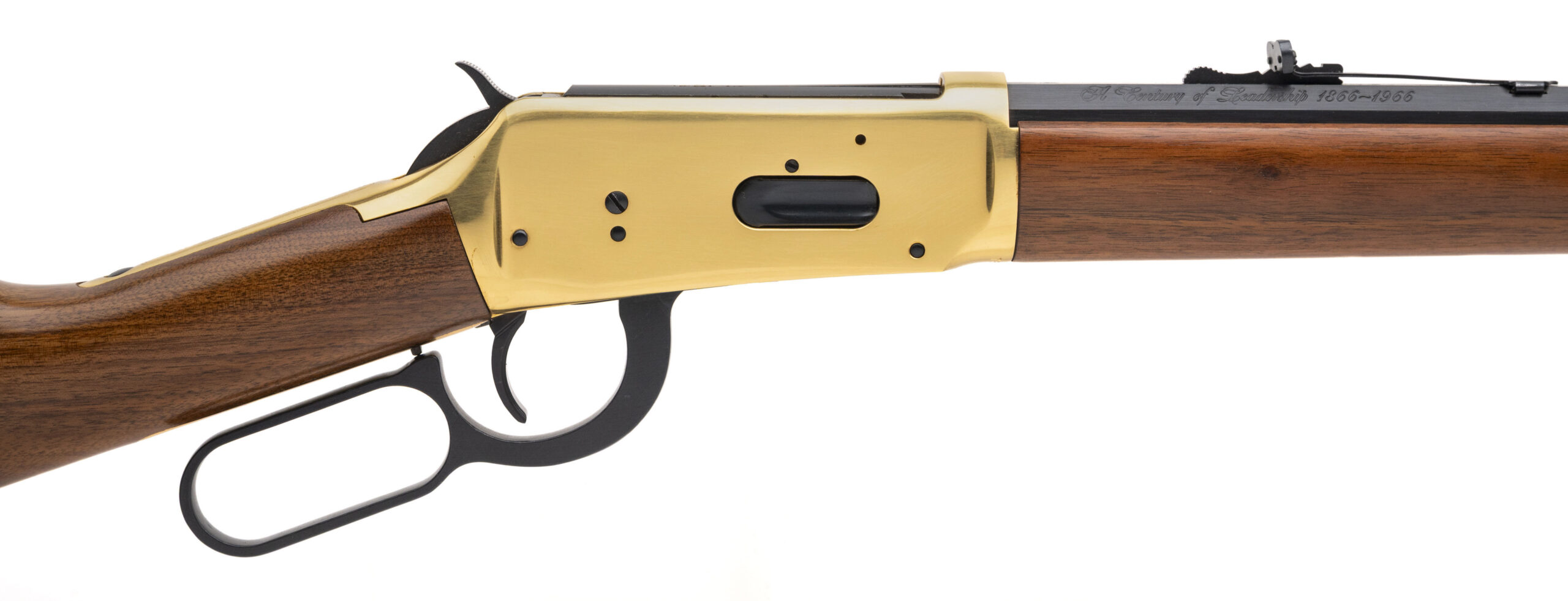 SN: 76184. 1966 production, .30-30 with a 20" blued octagon barrel. Bore is excellent. Gorgeous lever action rifle celebrating the 100th Year Anniversary of Winchester Repeating Arms Company with a production run of 102,666 units made. This rifle features a brass receiver, walnut forend & stock w/crescent buttplate, and a saddle ring. Desirable commemorative for any cowboy action gun collection. Very good condition overall. Comes with box.