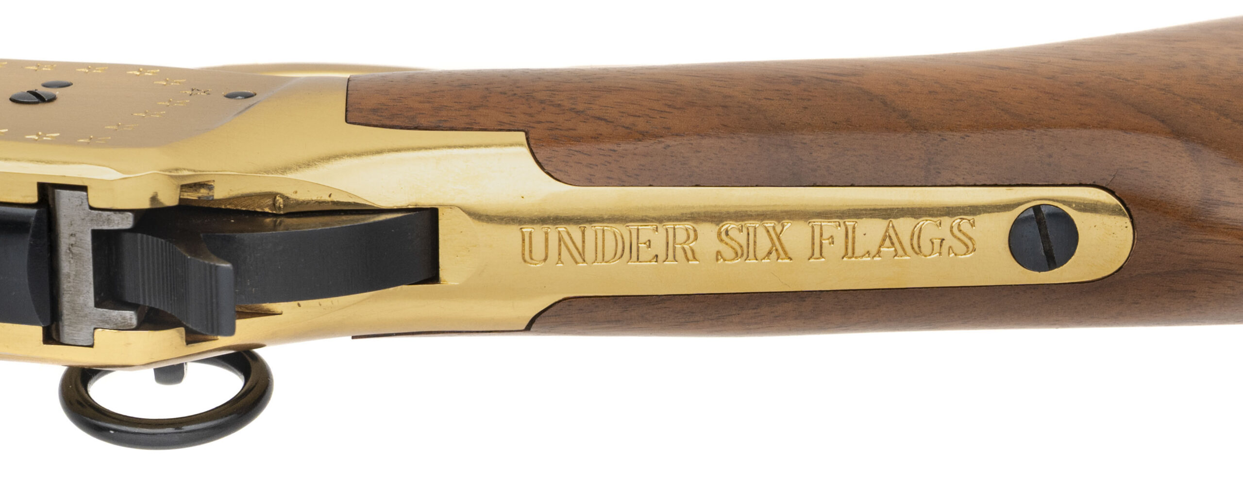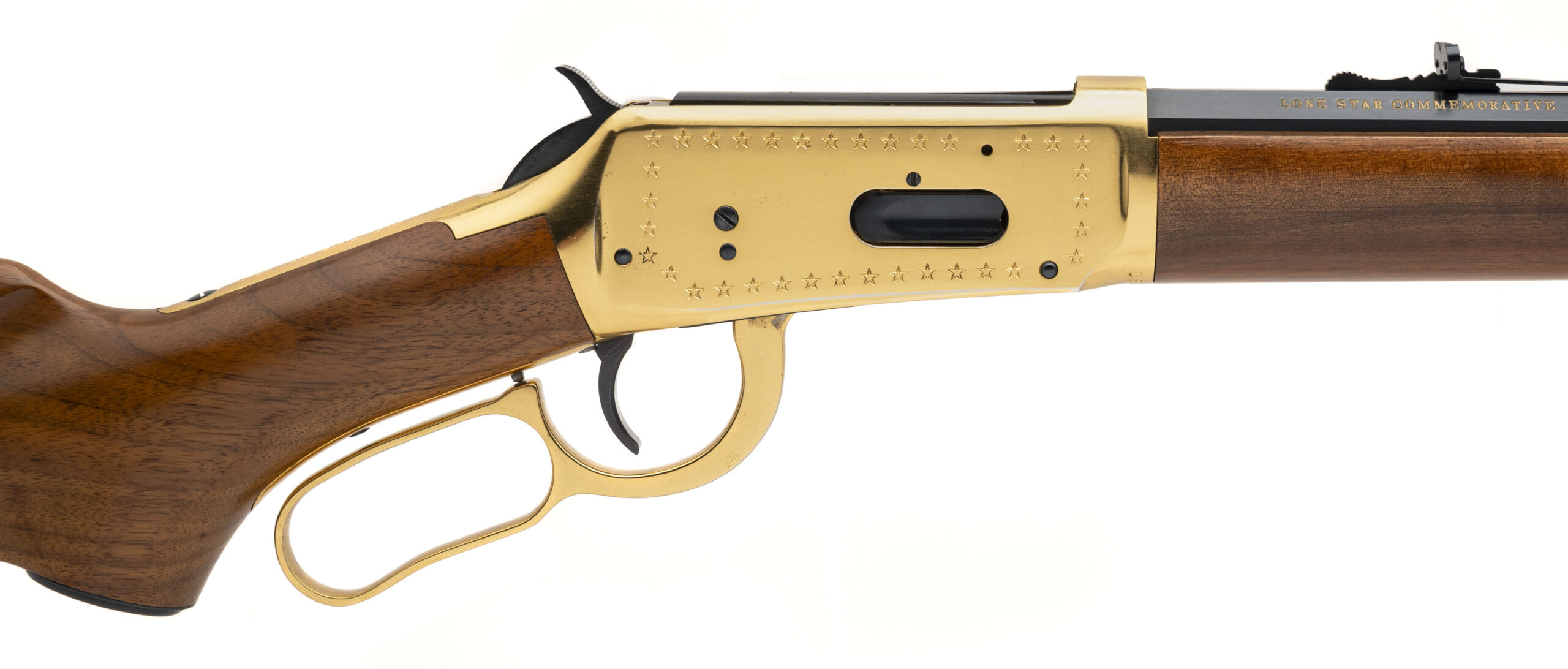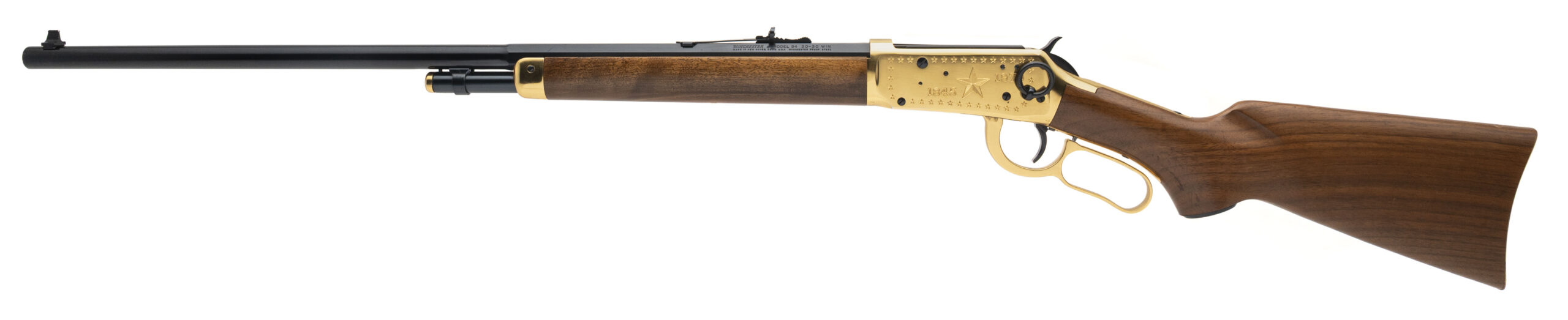 SN: LS34498. Modern production. Lever action rifle chambered in .30-30 Winchester with a 26" barrel. Overall condition is great with some light handling wear on the butt plate and the receiver. Lone Star Commemorative with coin in the stock featuring Houston, Travis, Crockett, Austin and Bowie.