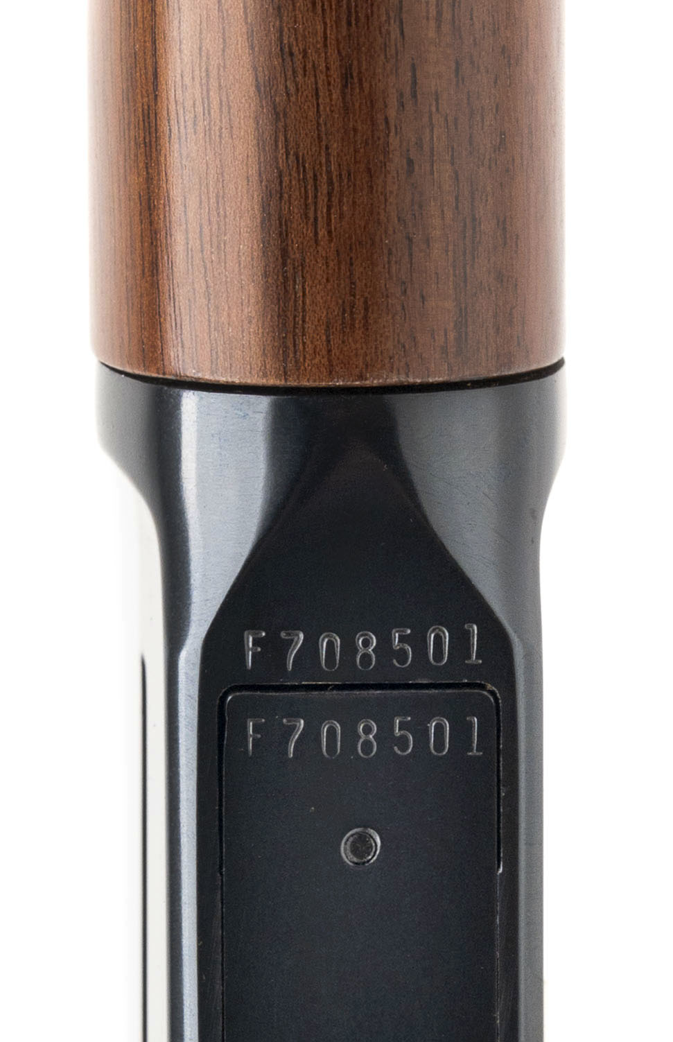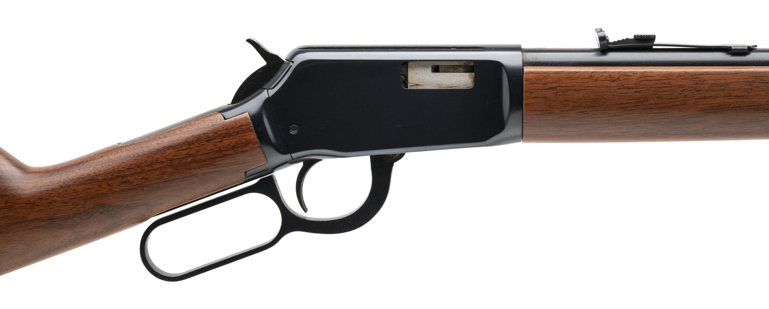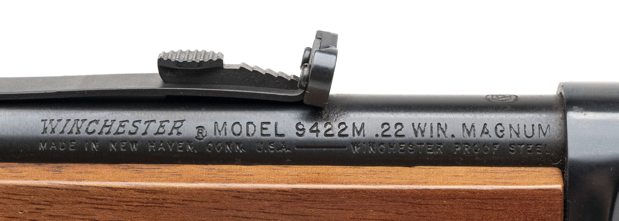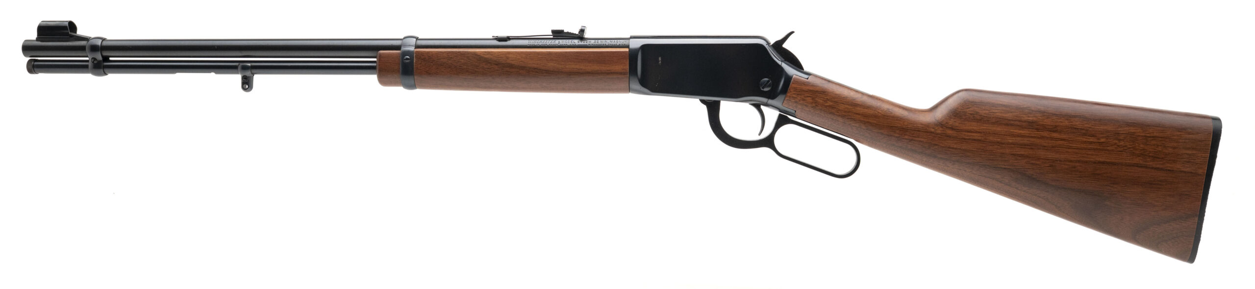 SN: SN: F708501. Made circa 1997, .22 WMR with a 20.5" barrel. Bore is very god. lever-action rifle with a hooded front sight, adjustable semi-buckhorn rear sight, blued finish, and wood stock & forend. Finish shows handling marks, most notably to the left side of the receiver. Overall condition is very good. Includes original box.