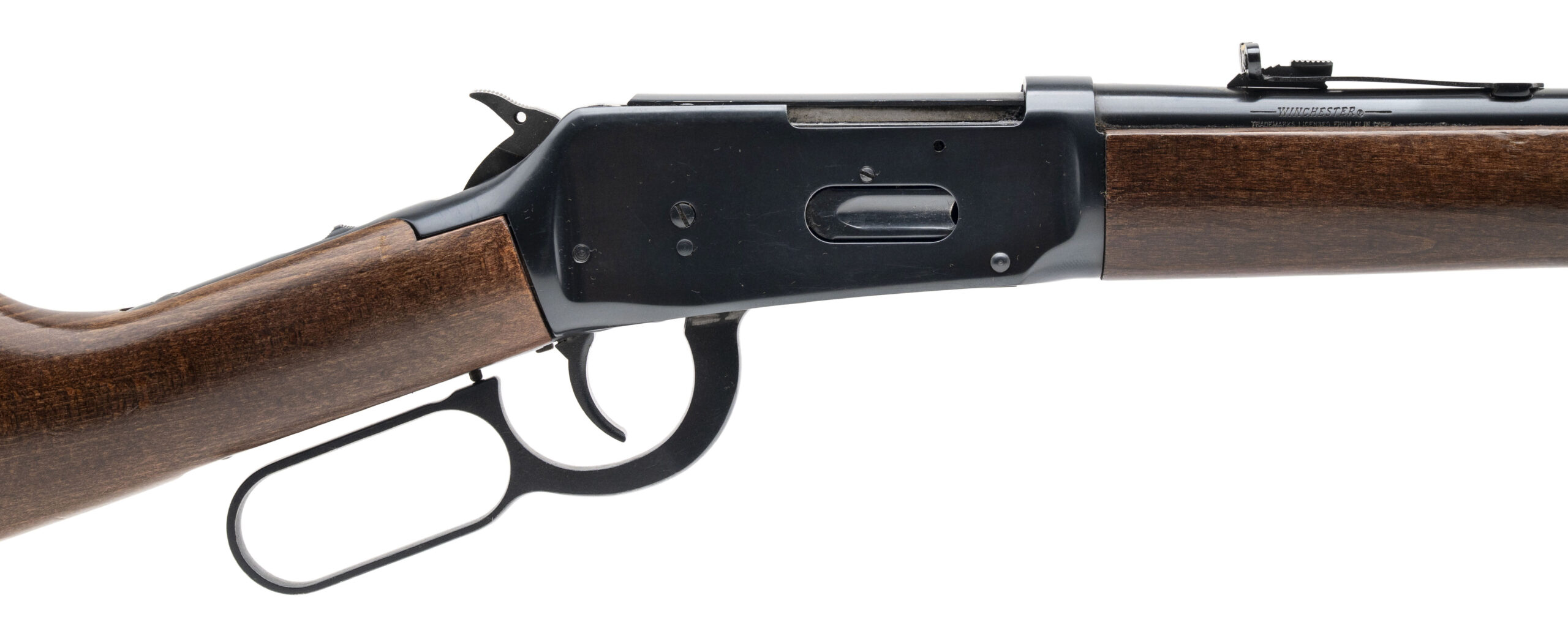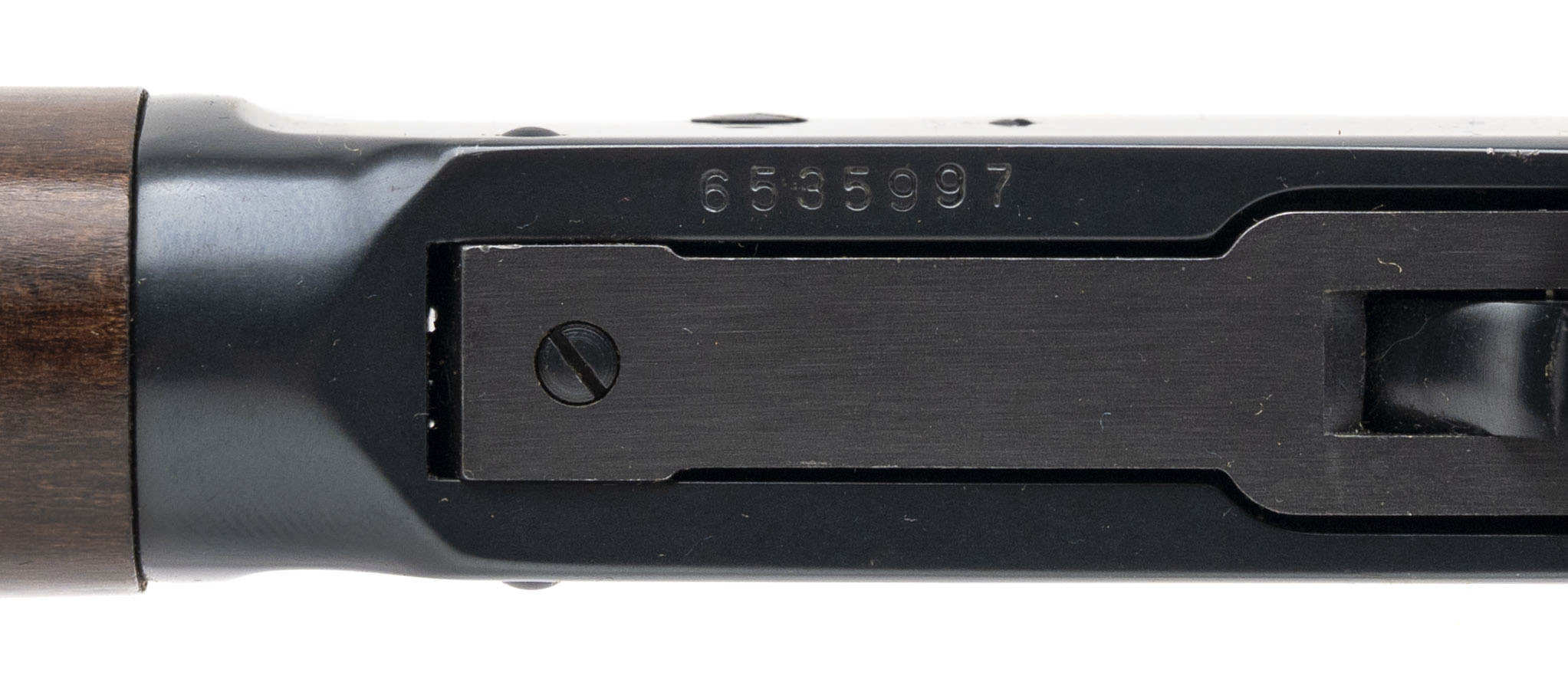 SN: 6535997, modern production lever action saddle ring carbine with a 16” barrel chambered in 44 magnum with a tang safety, blued metal finish and walnut furniture. Overall in very good condition with an excellent bore.
