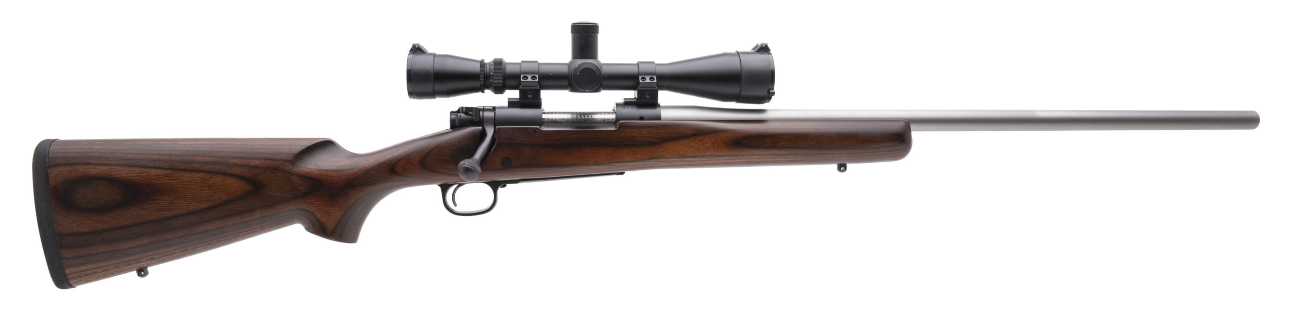 SN: G2368336 modern production bolt action rifle chambered in 308 with a 24" round stainless steel barrel, jeweled bolt body, Leupold VX-ii 3-9x40 Tactical scope in a laminated wood stock with the original Winchester recoil pad. Overall in near excellent condition with only some rust on the sling stud and an excellent bore.