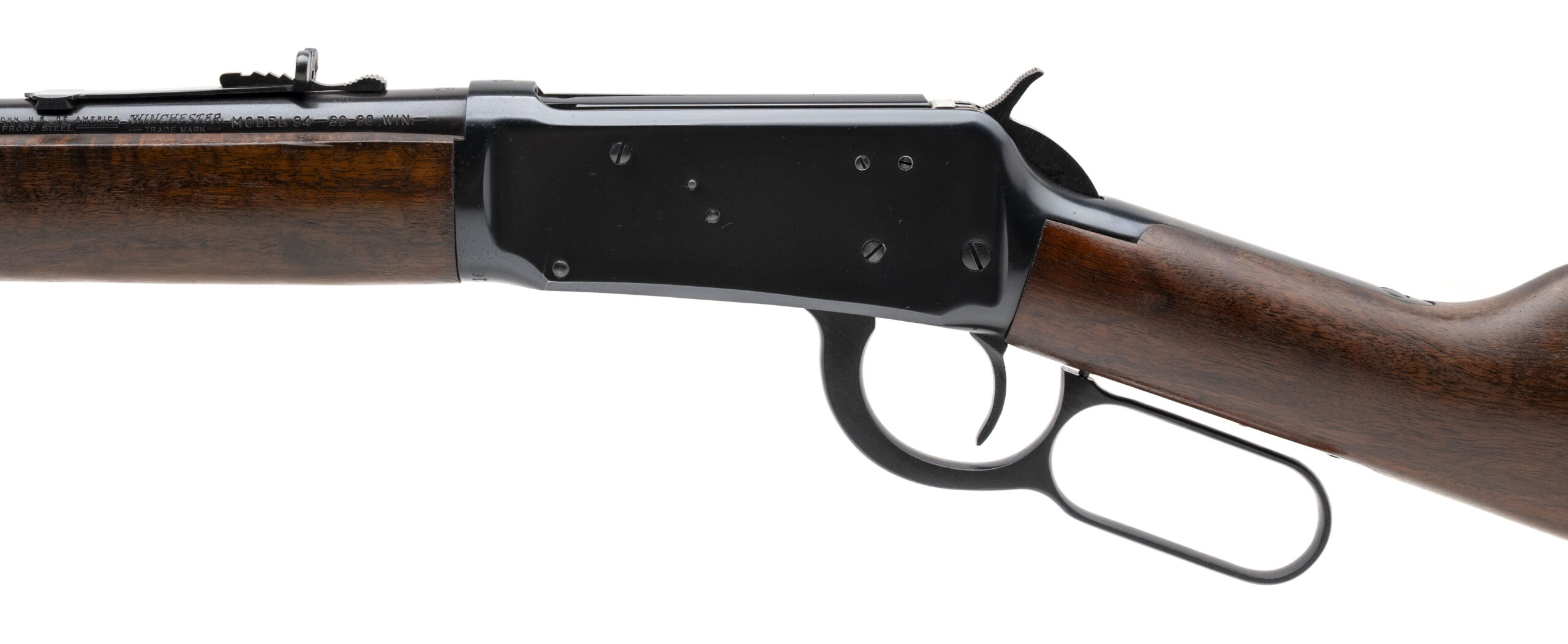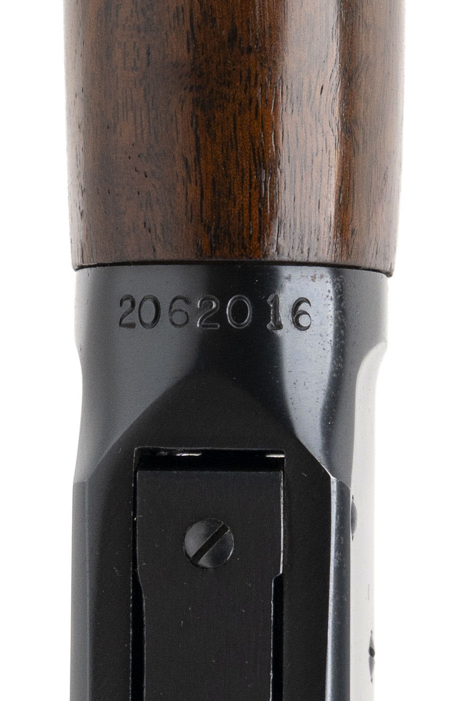 SN: 2062016. Made in 1954, .30-30 WIN. with a 20" round barrel. Bore is excellent. Original pre-1964 lever-action rifle with hooded front sight, semi-buckhorn rear sight, blued finish, and wood stock. Stock shows handling wear. Overall condition is very good.