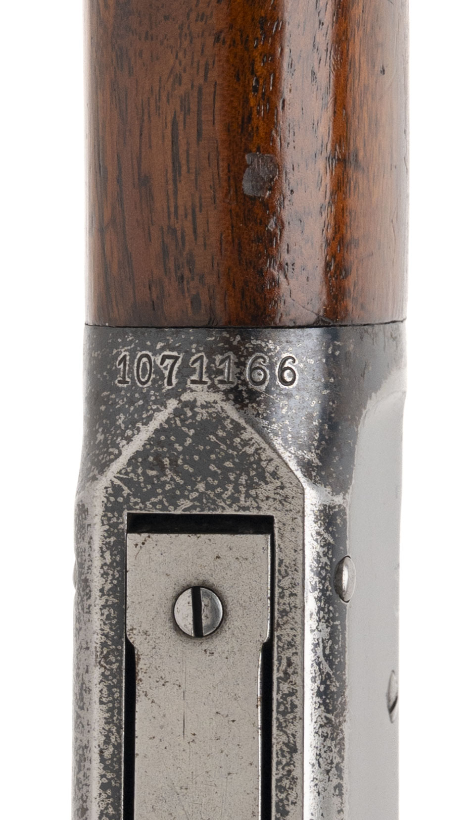 SN: 1071166 made in 1929. Lever action rifle with a 20” round barrel chambered in 30-30 with upgraded Marbles sights, walnut furniture and original steel butt plate. Condition is good for the age with some wear to the right side of the receiver but most of the original bluing on the rest of the rifle. Furniture is in very good condition, bore is good with strong rifling.