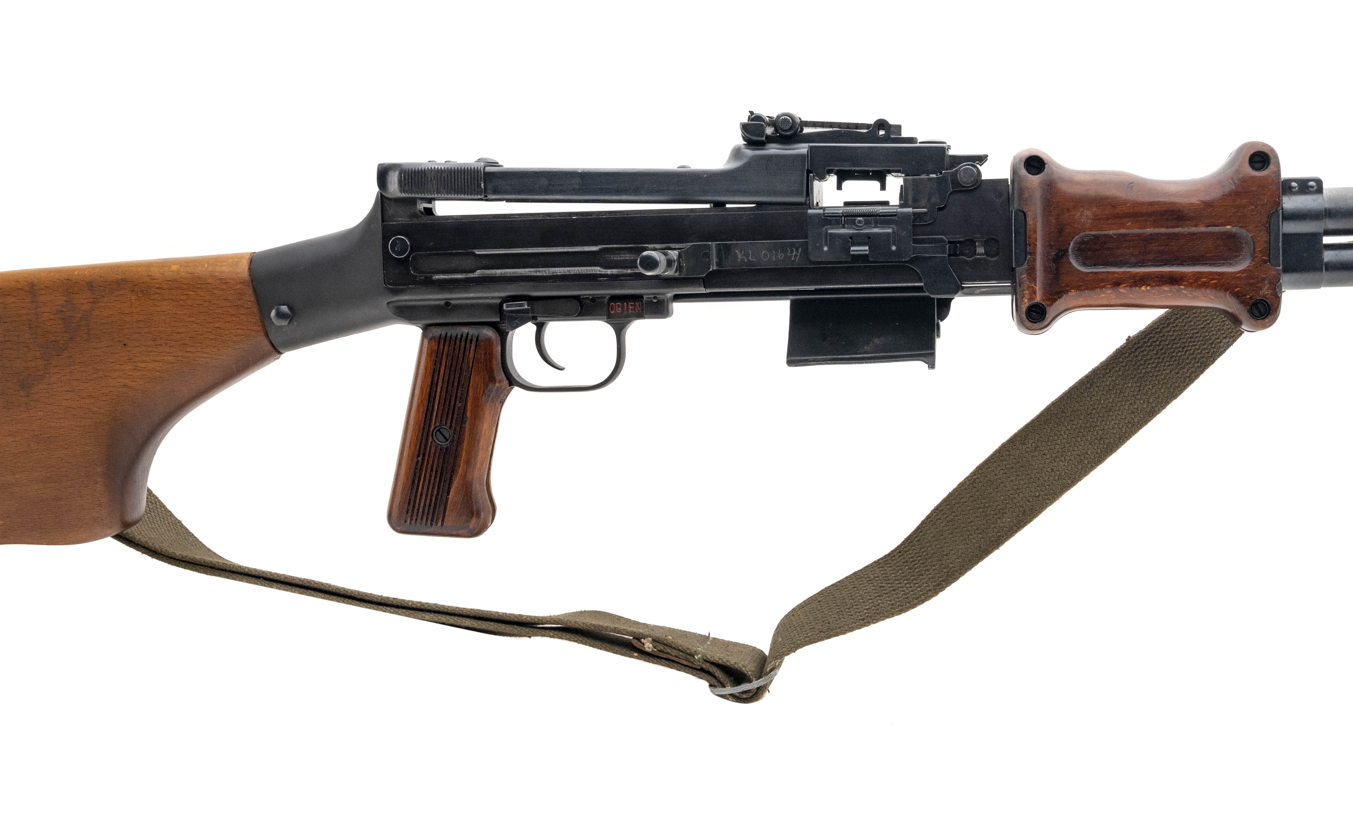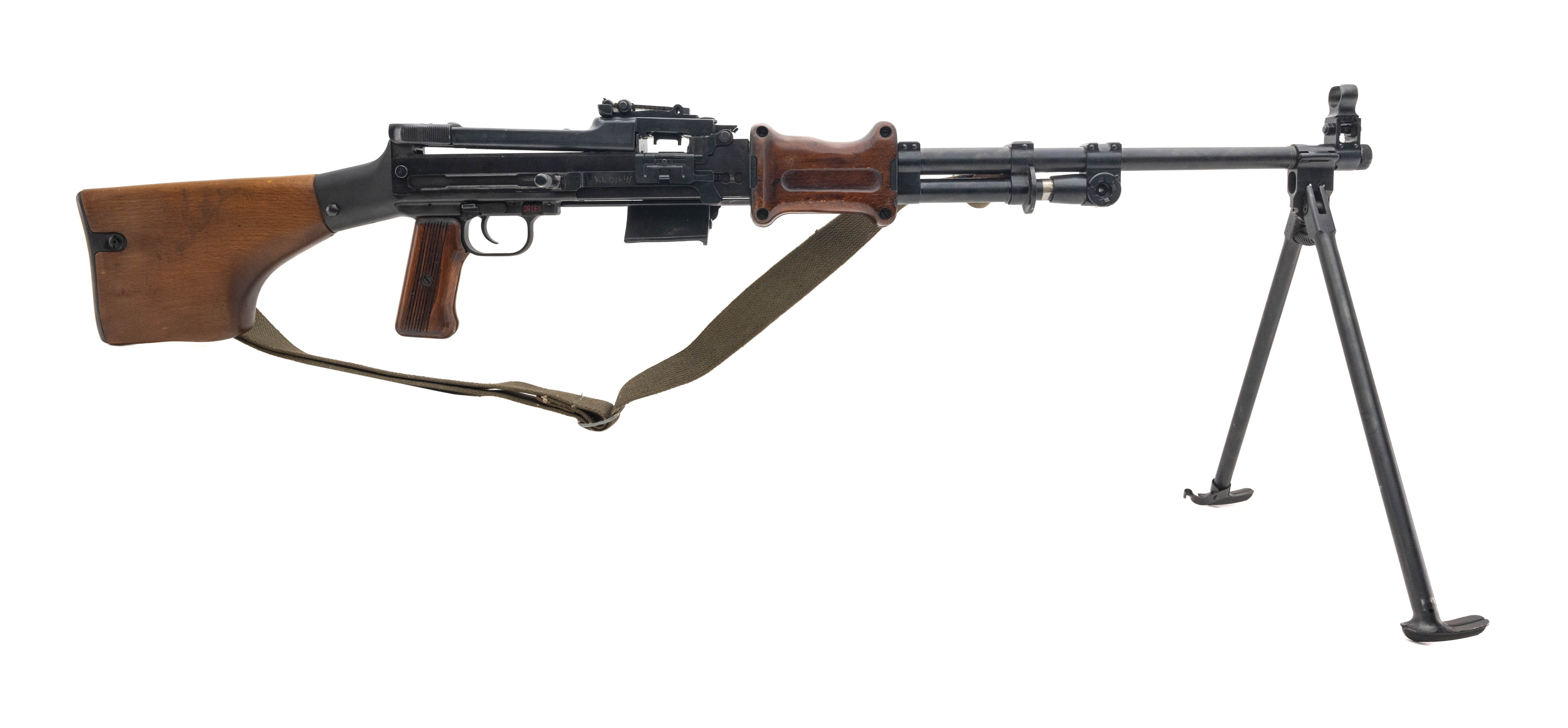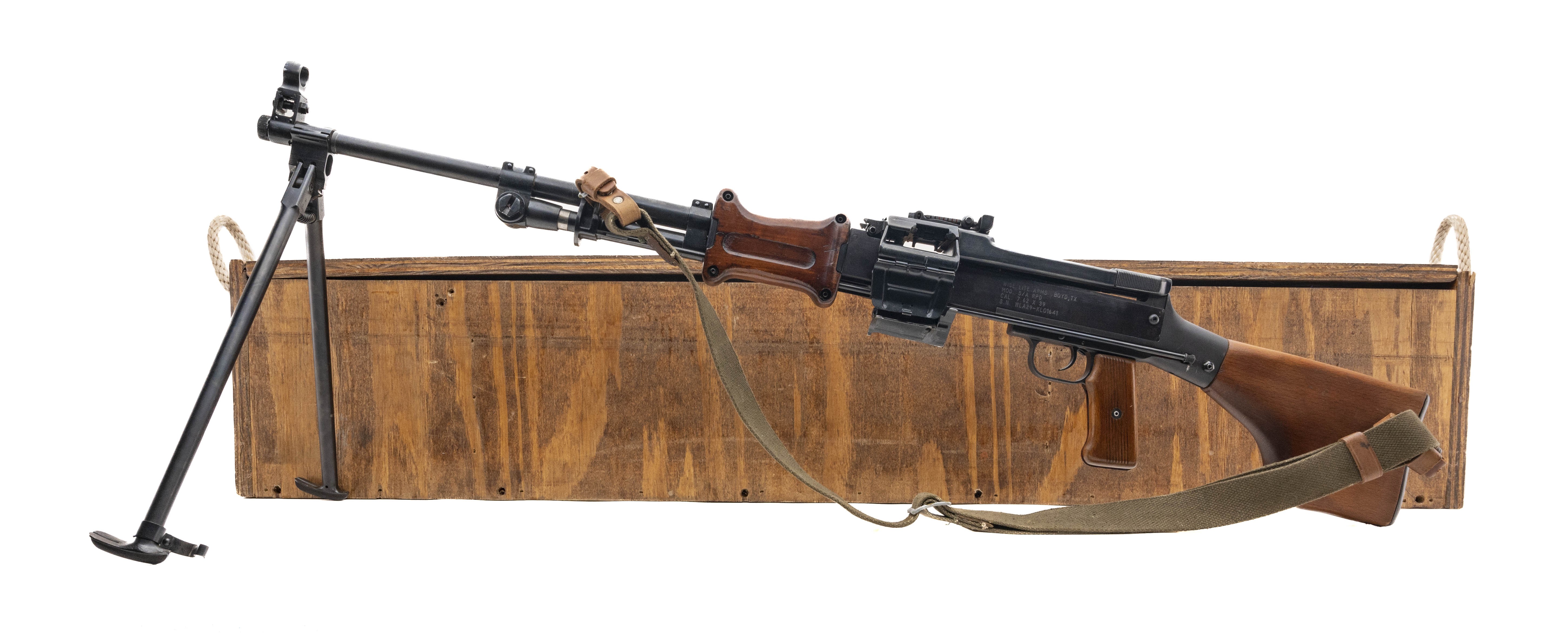 SN: WLA29-KL01641. Polish-made semi-auto belt-fed rifle with 20" threaded barrel, bipod, wood furniture and sling. Overall excellent condition. Comes with wood crate and three drum magazines and table mounting RPD belt loader.