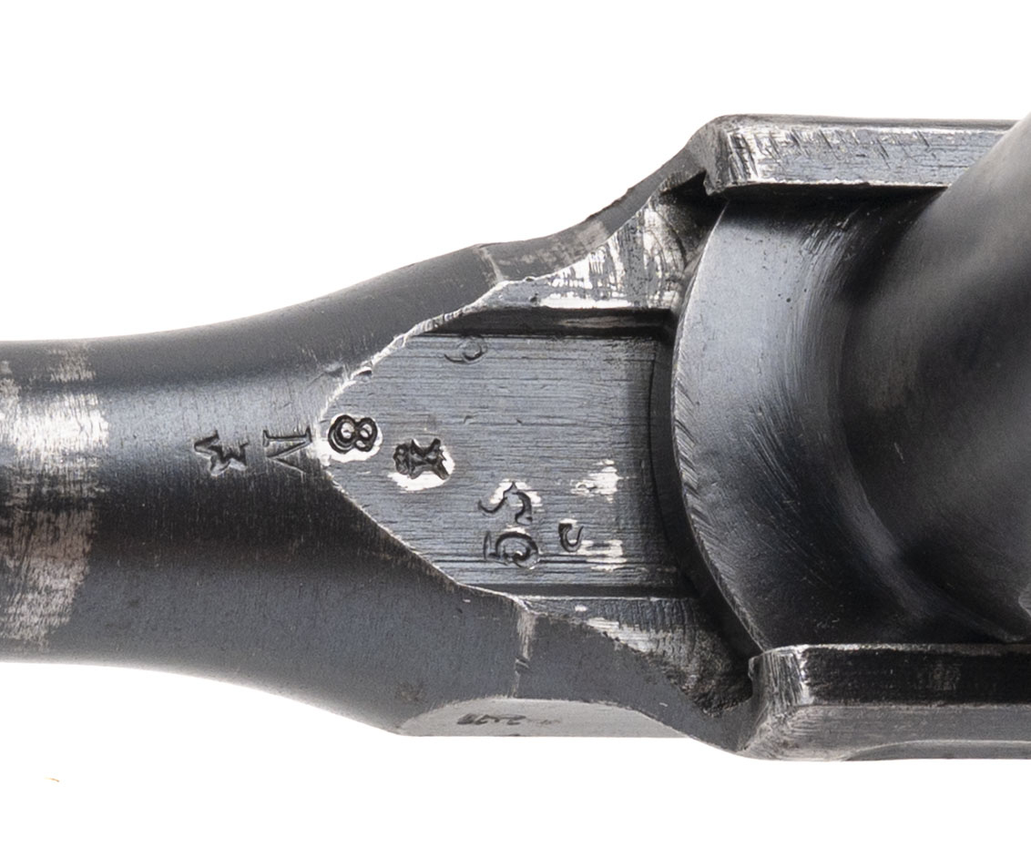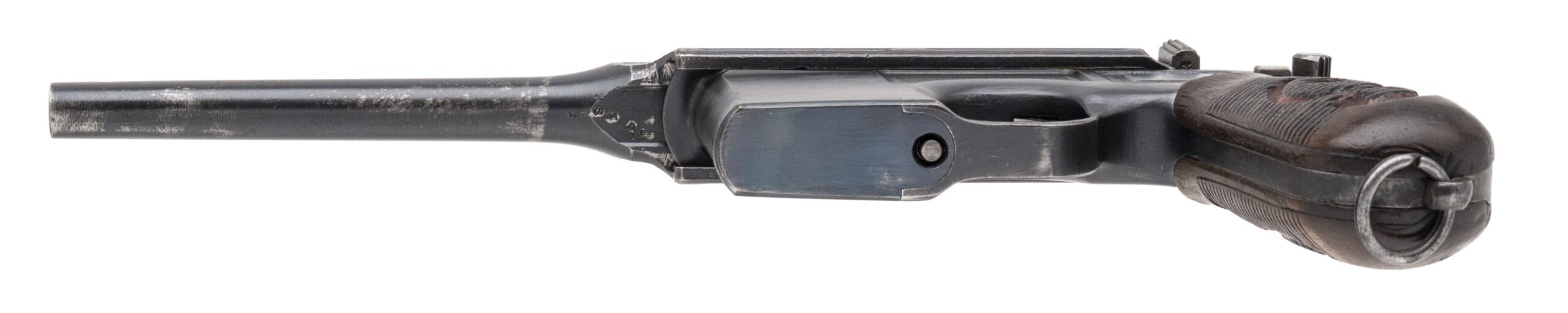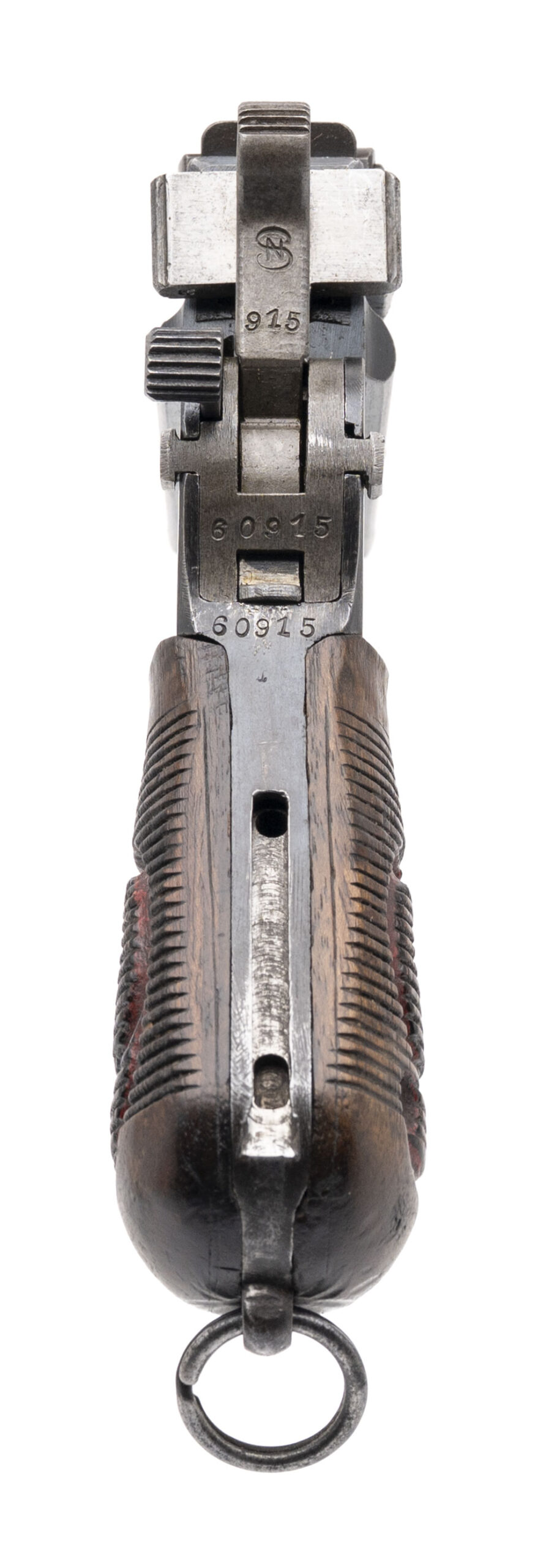 SN: 60915 made circa 1916-1918. Semi auto pistol chambered in 9mm with a 5.5" barrel, internal magazine and original red 9 grips. Slotted for a stock with a lanyard loop, all numbers matching in good overall condition with honest wear and an excellent bore. Overall in very good condition. Dallas location.