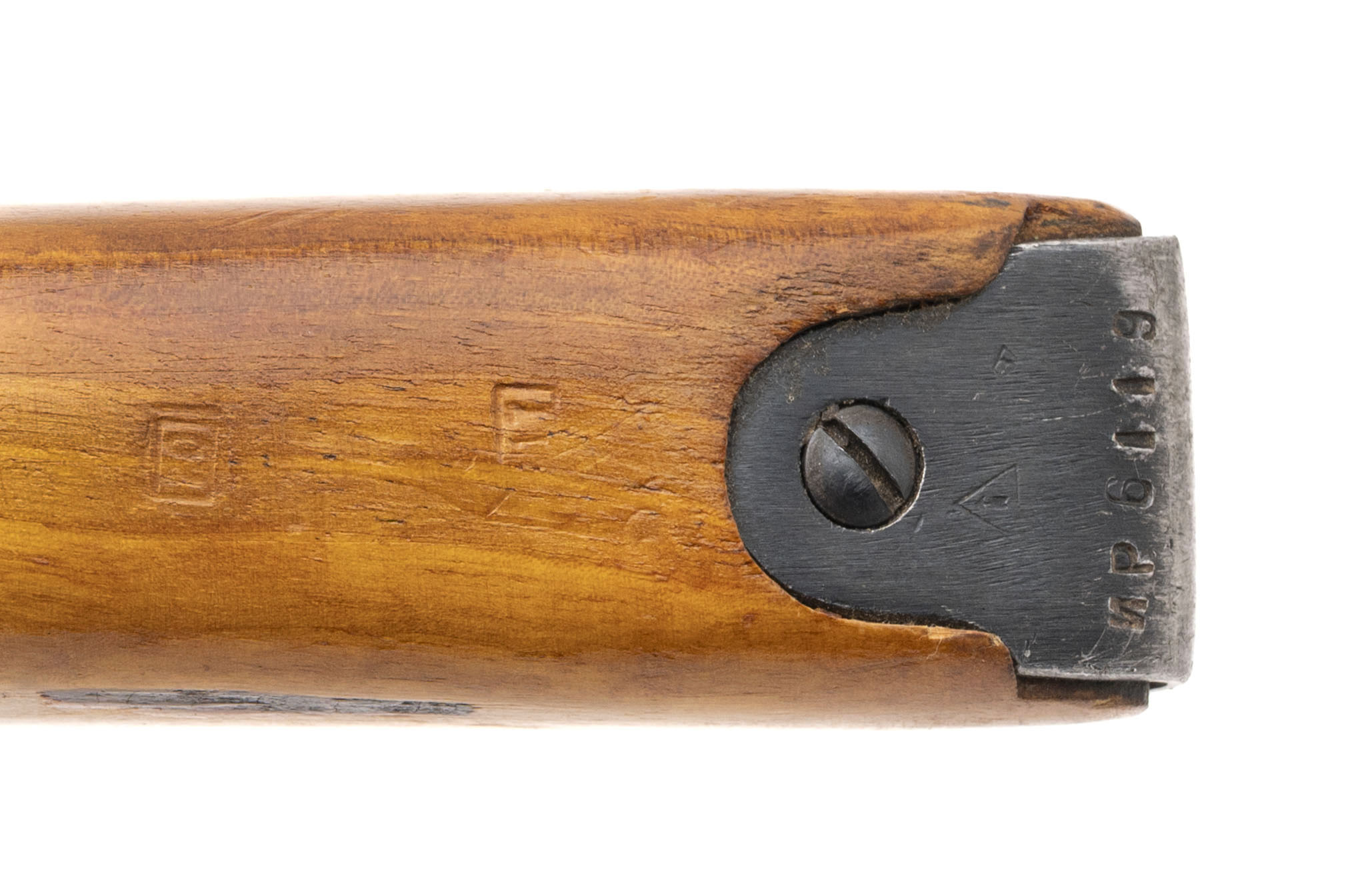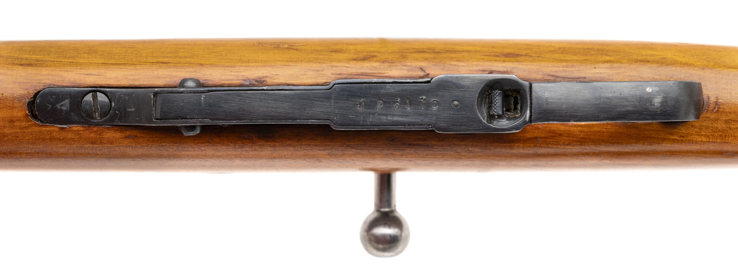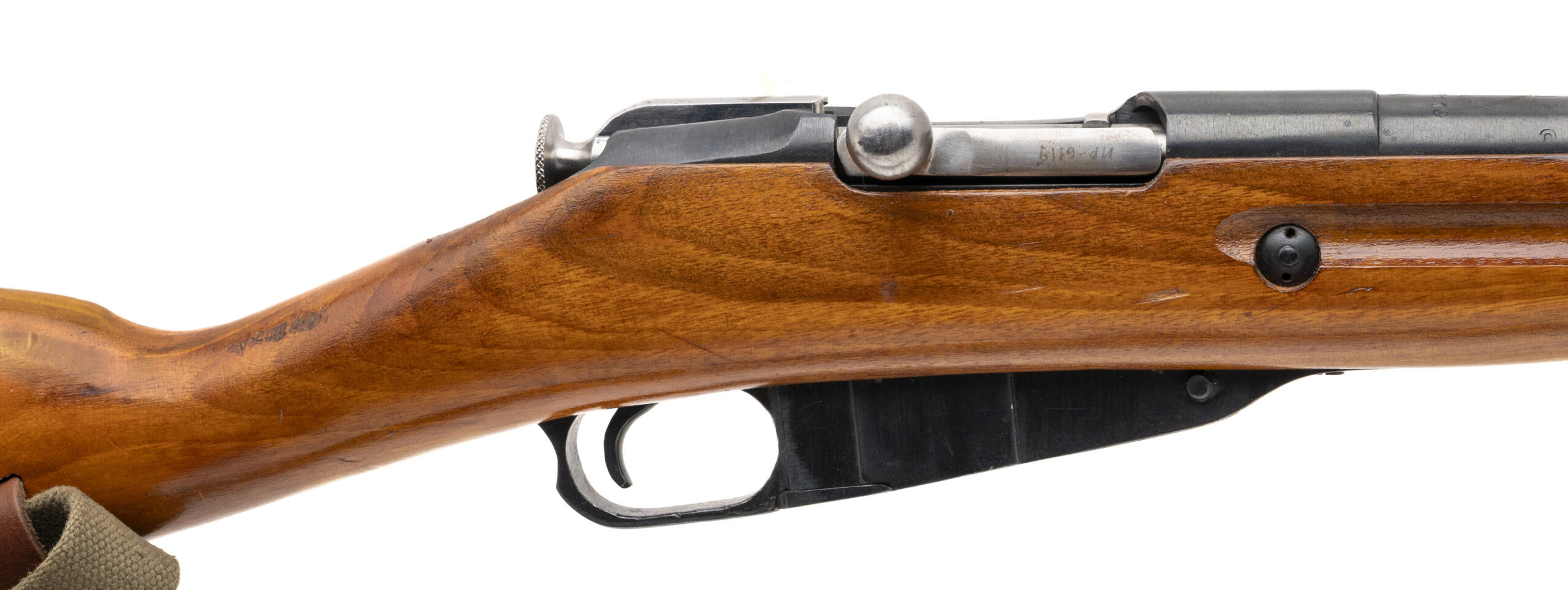 Serial number M440857277. Made in 1944 with a 20.5-inch barrel that has a good bore with strong visible rifling. This World War II production Red Army M44 went through a post-war factory refurb/service life extension rebuild, so it is in very good condition with arsenal refinish on the metallic parts & Arctic Beech laminate furniture that remains in crisp shape. Comes with a Soviet "dog collar" webbed sling, a 17.5-inch threaded cleaning rod & a 12-inch folding cruciform spike bayonet.