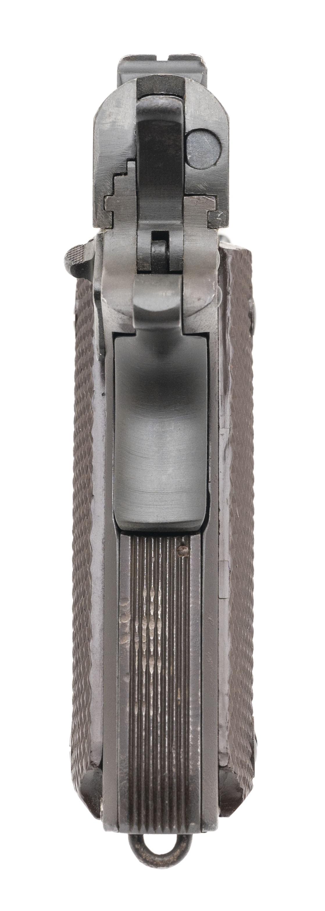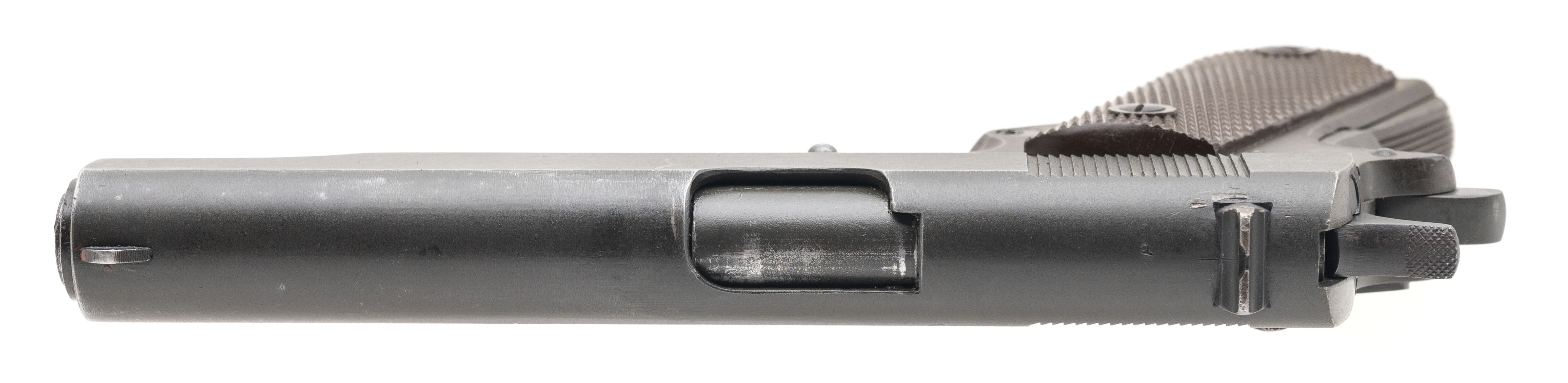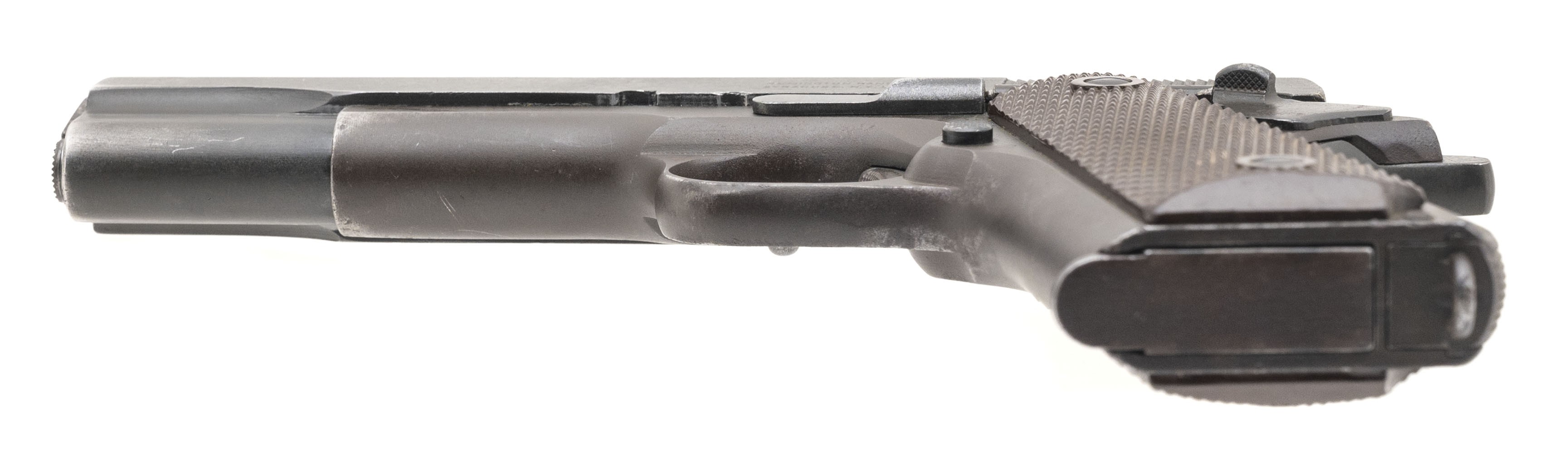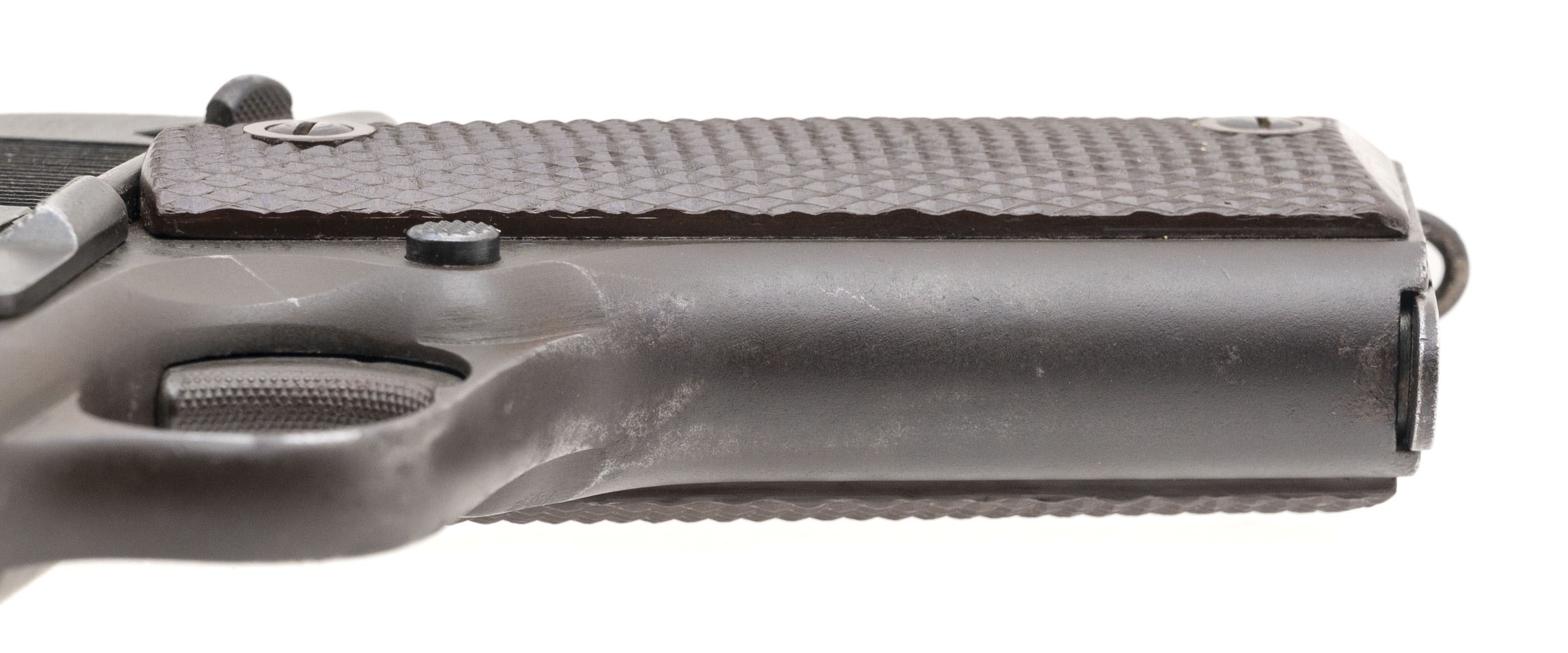 SN: 2263955. Made in 1945 with a 5-inch barrel chambered for the .45 ACP cartridge. Bore is bright with strong rifling. This WWII USGI pistol has a Remington Rand slide & a COLT frame. Finish is in very good condition with expected handling wear noted, frame has matured to a smooth brown aged patina. Plastic grips have minimal handling wear. Action functions properly. Comes with a World War II production USGI "no seam" 7-round magazine made by M.S. Little Company.