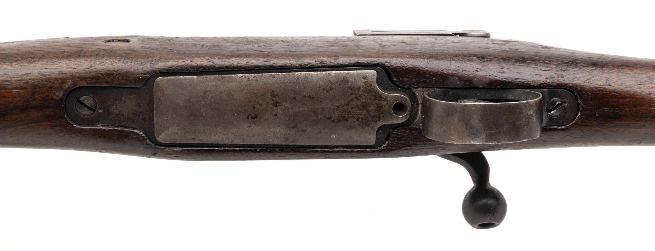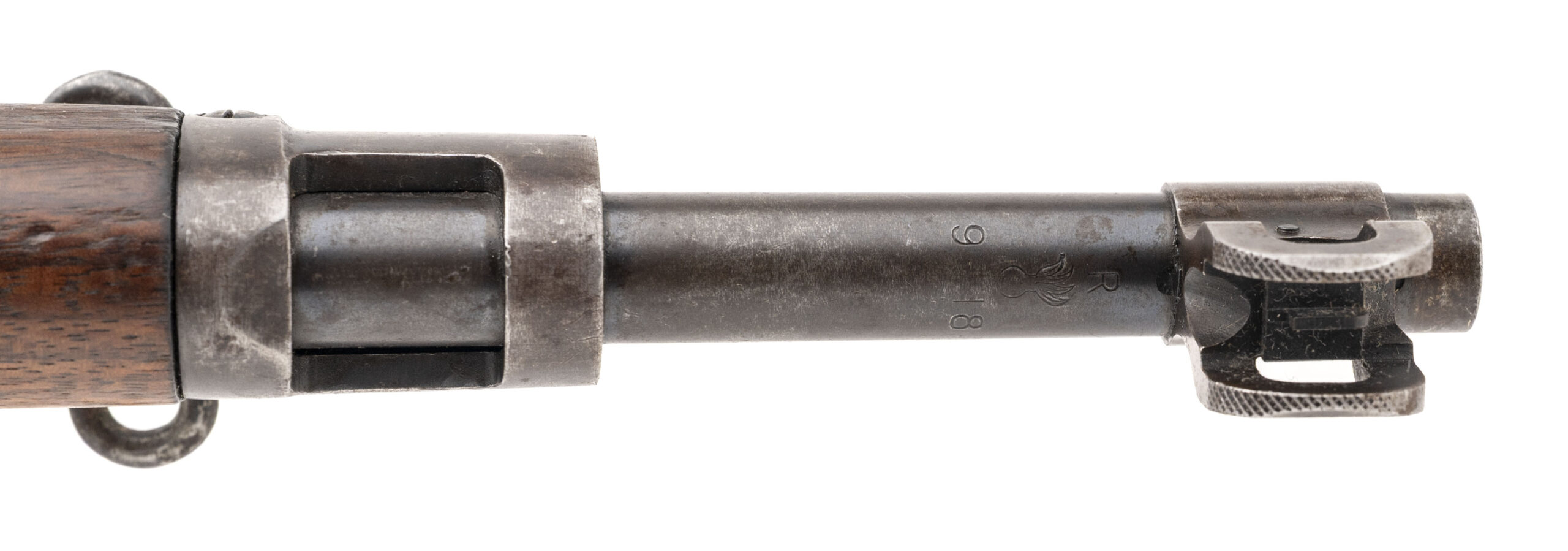 Serial No. 546727, made November 1918, .30-06, 26” round barrel marked “R/Flaming Bomb/9-18”. Bore is good with light oxidation and frosting visible in the grooves, rifling remains strong. 95% blue remains with thinning visible around the barrel and edges. Stock is very good with light nicks, dings and scratches noted. Action is smooth and functions correctly.