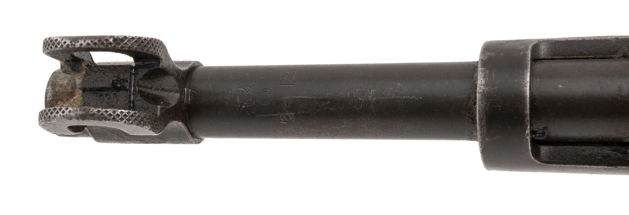 Serial No. 660345, manufactured in 1918, chambered in .30-06 with a 26" round barrel marked “E / Flaming Bomb / 5-18.” The bore is bright with light frosting visible in the grooves, while rifling remains strong and well defined. The stock has been lightly sanded at some point in its service life, and a small crack is noted on the right side, typical of well-used service rifles. Overall appearance remains honest and representative of a WWI-issued arm. Action is smooth and functions correctly.