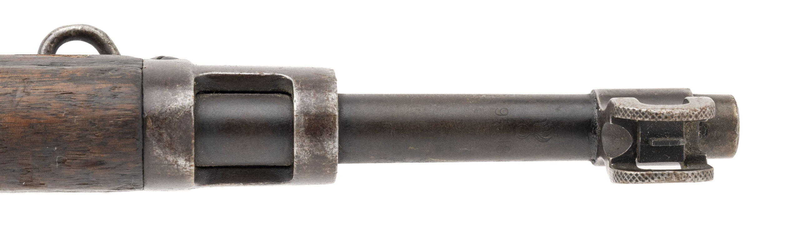 Serial No. 136807, manufactured in December 1917, .30-06 Springfield, 26” round barrel marked “E / Flaming Bomb / 9-18.” Metal surfaces on the barrel and receiver have developed an even grey/brown patina. Rifle remains in its original WWI configuration, showing no evidence of later arsenal upgrades. Stock exhibits scattered handling marks with a crack noted on the upper forearm. Action is smooth and functions correctly. An honest, well-used example of a WWI Eddystone Model 1917, showing the character and wear of a rifle that undoubtedly saw service and history.