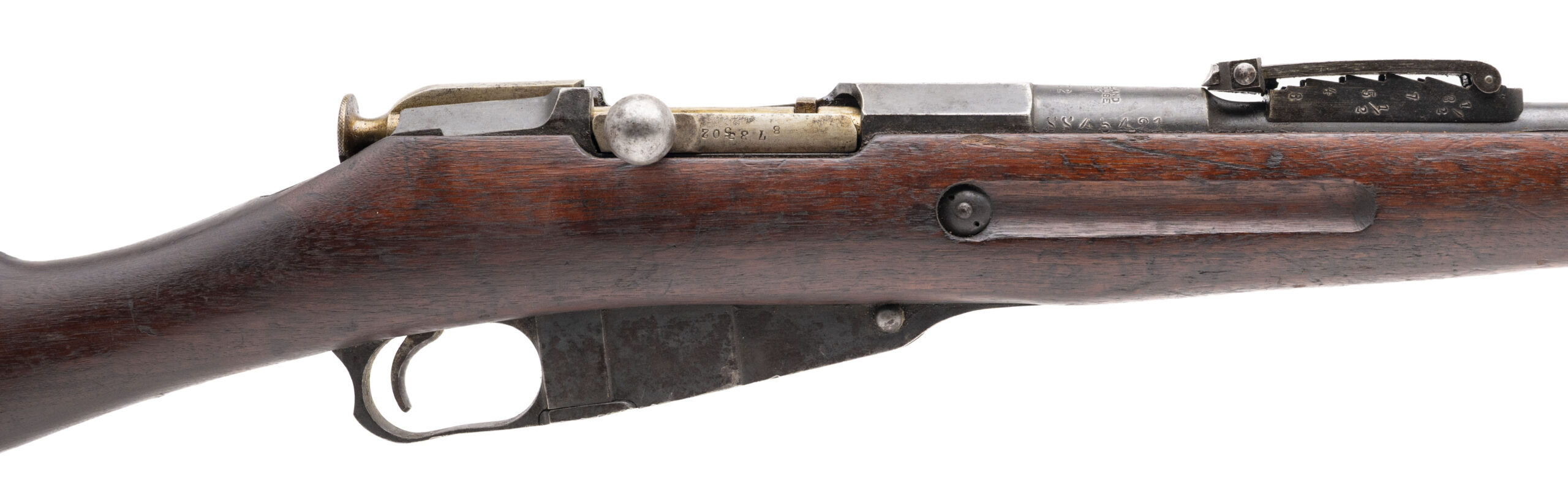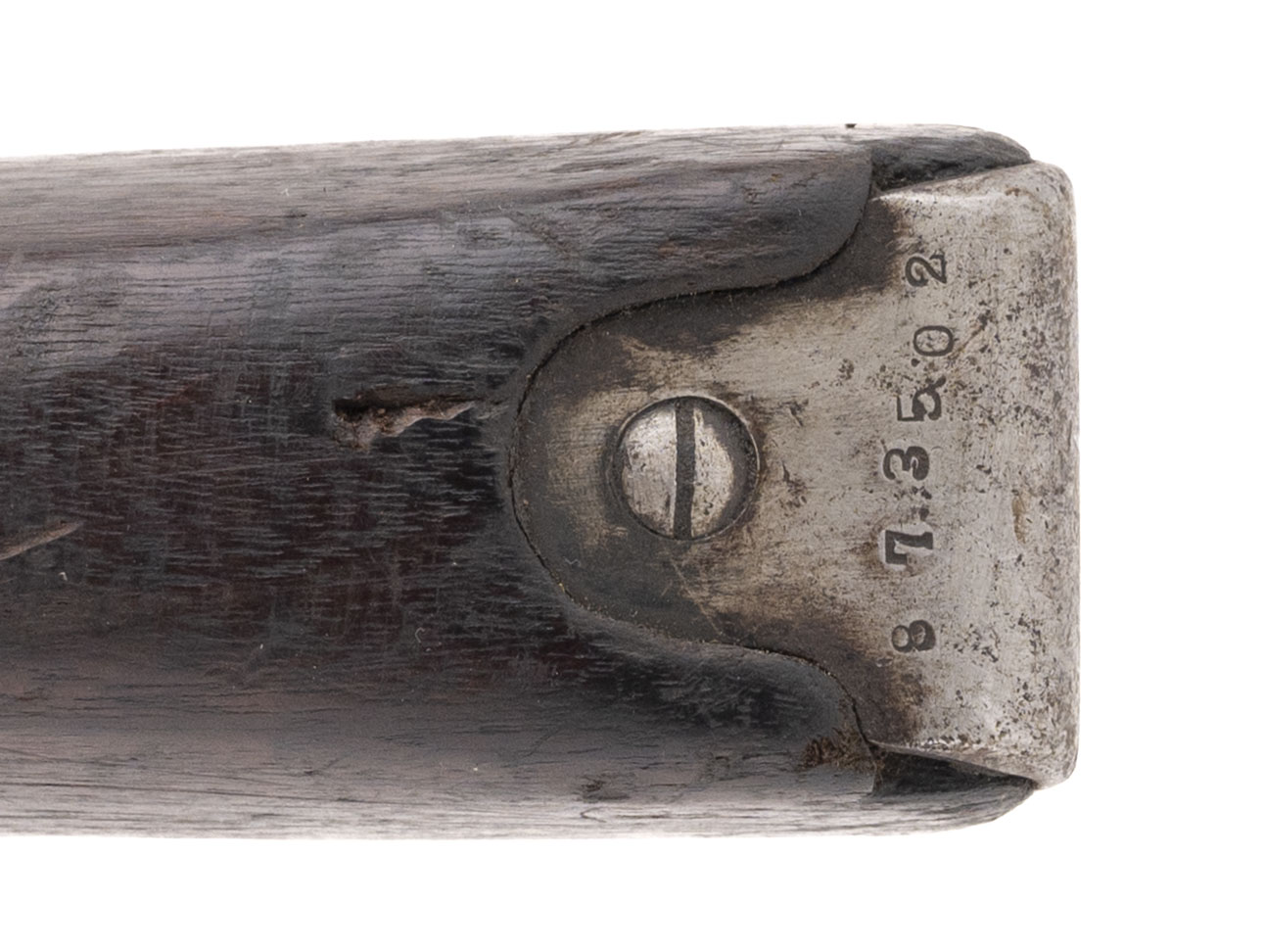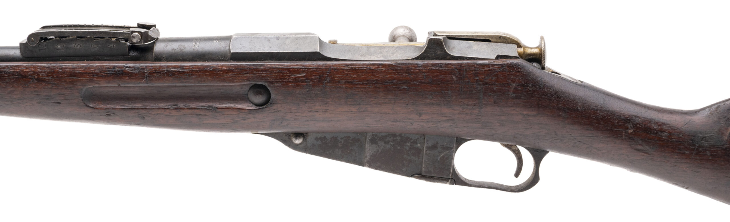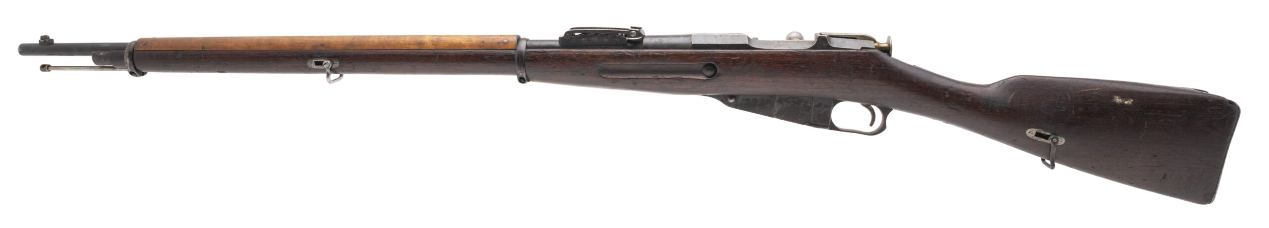 Serial No. 873502, manufactured circa 1915, 7.62x54R, 31½” round barrel. Serial numbers are matching throughout. Metal has thinned to a smooth grey patina, with factory markings remaining sharp and well-defined. Stock is in very good condition, showing light handling and storage wear consistent with service use. Action is smooth and functions correctly. A fine example of an American-made Mosin-Nagant rifle, produced under contract for Imperial Russia during the First World War.