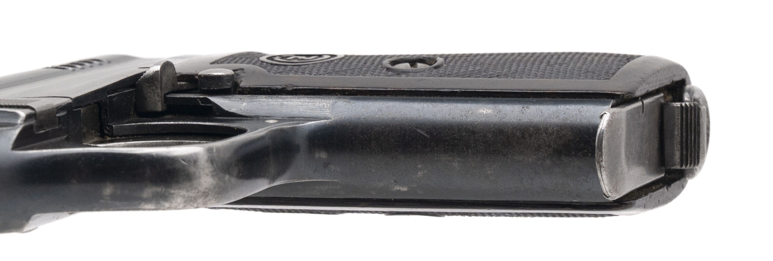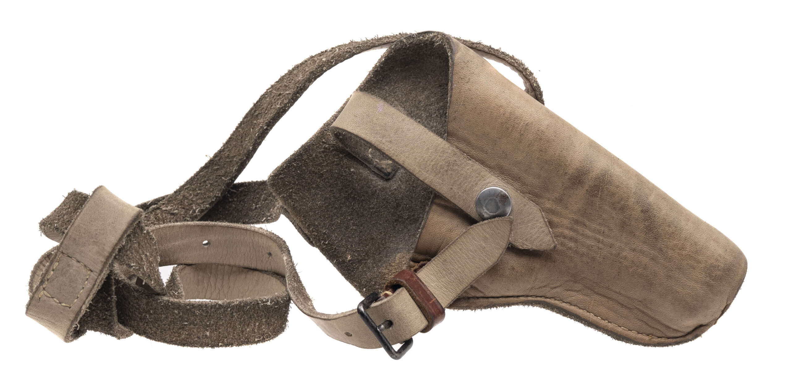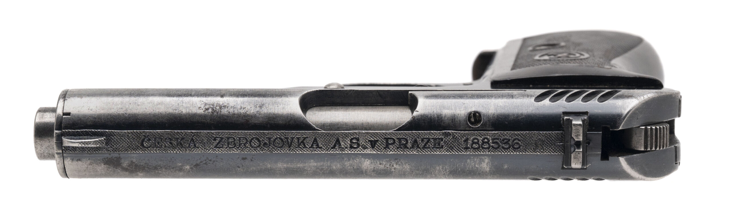 Serial No. 188536, made in 1937, 7,65mm, 3.5” round barrel. Serial numbers are matching on slide and frame with factory markings sharp and crips. 55% original blue remains, mostly on the frame. Grips are in very good condition with minimal handling wear noted. Action is smooth and functions correctly. Although the CZ 38 was intended as its replacement, the German occupation halted the transition. When the Czech Army was disarmed, these pistols were instead issued to the Waffen-SS, who were in urgent need of sidearms. Pistol comes with a shoulder holster.