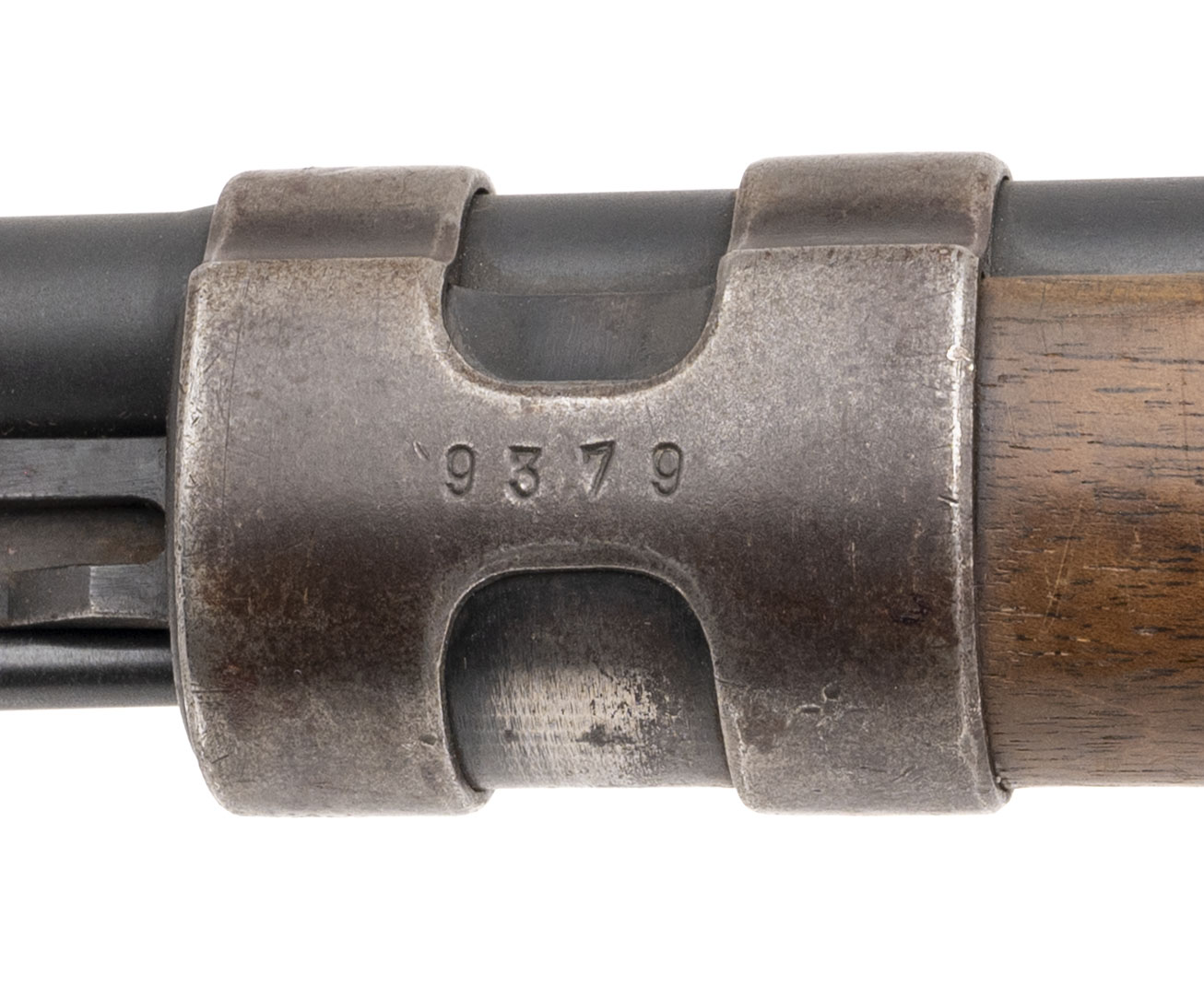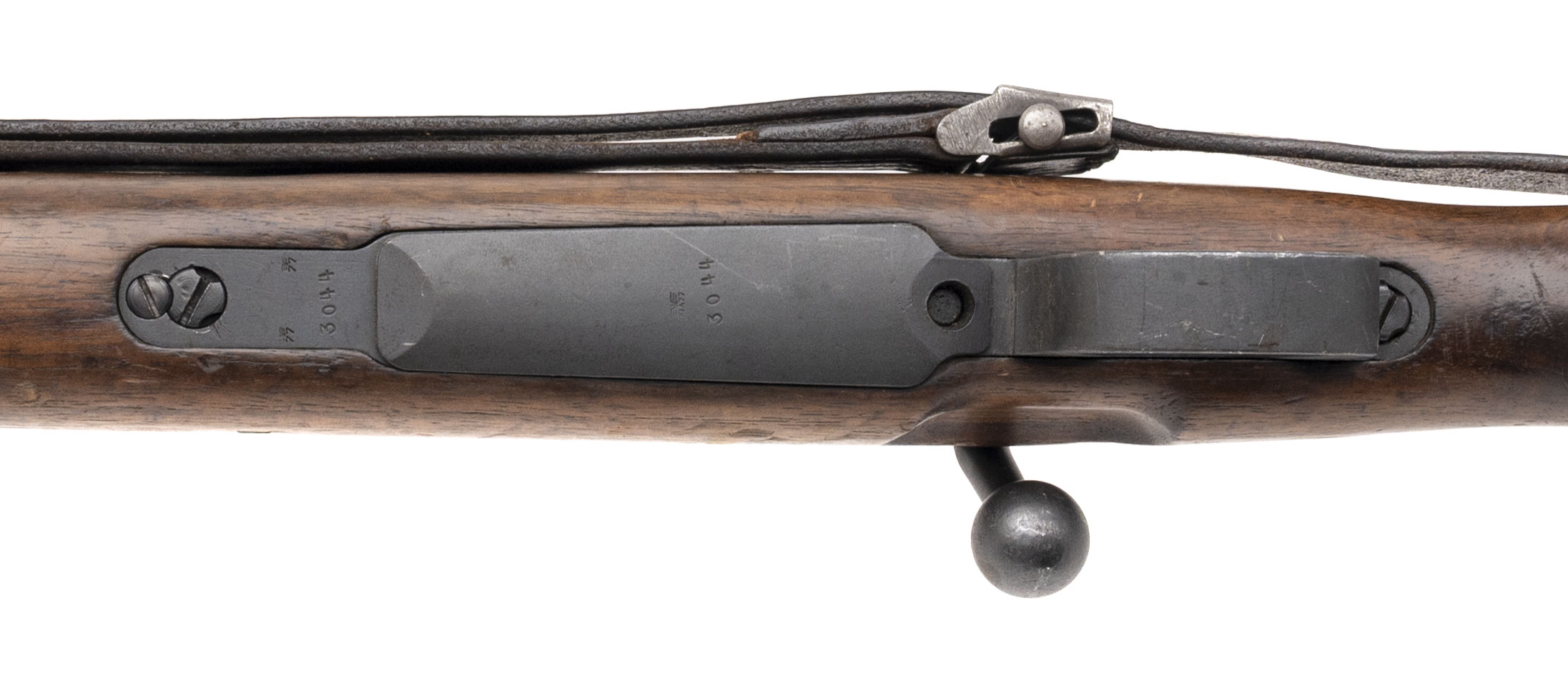 Serial No. 3044g, manufactured in 1942, 8mm Mauser, 24” round barrel. Serial numbers are matching throughout, except for the front barrel band. Rifle has been arsenal refinished, with factory markings sharp and clearly visible on the receiver and barrel. Stock has been lightly sanded, with Waffenamt inspection marks still visible. Rifle comes with its original sling. Action is smooth and functions correctly. A well-presented example of a bnz 42–coded K98k, produced by Steyr-Daimler-Puch, retaining its correct wartime features and markings.