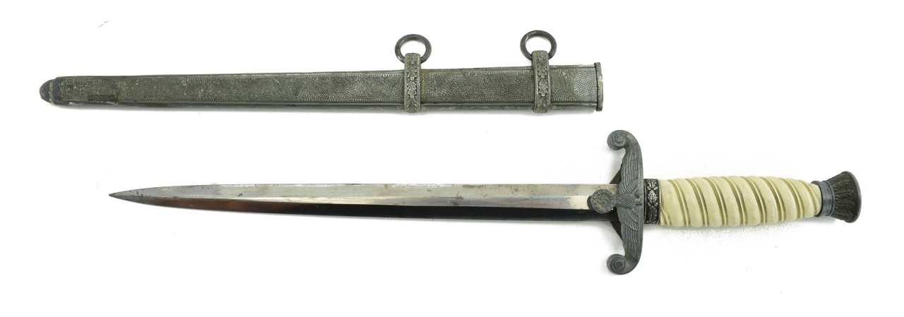 German Military of World War II were known for their uniforms and pistols. Most GI’s ultimate war souvenir would be the German Luger. Collectors Firearms is offering a WWII German Officers Collectors Kit. This kit has some typical items that a German military would have carried in World War II. 1. German Mauser S/42 1936 dated Luger. This gun is in very fine condition with 90% of the original finish. Gun is all matching except for the magazine and side plate.2. Army Officers Dagger “WKC” marked. The pommel on the dagger does have a chip on the left side. Blade is in great shape and scabbard is untouched.3. German Luger Holster dated 1936. Holster is in great shape and comes with Luger P08 tool.4. German Officers Artillery Visor Cap. This visor does show wear and use with some minor discoloration. There are some areas were the stitching in the liner has come loose and is fragile. Overall a great starter visor for a beginning collector.