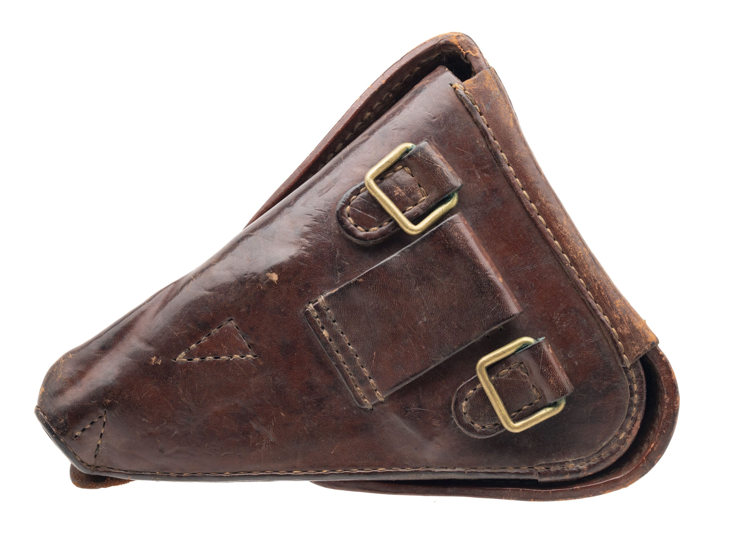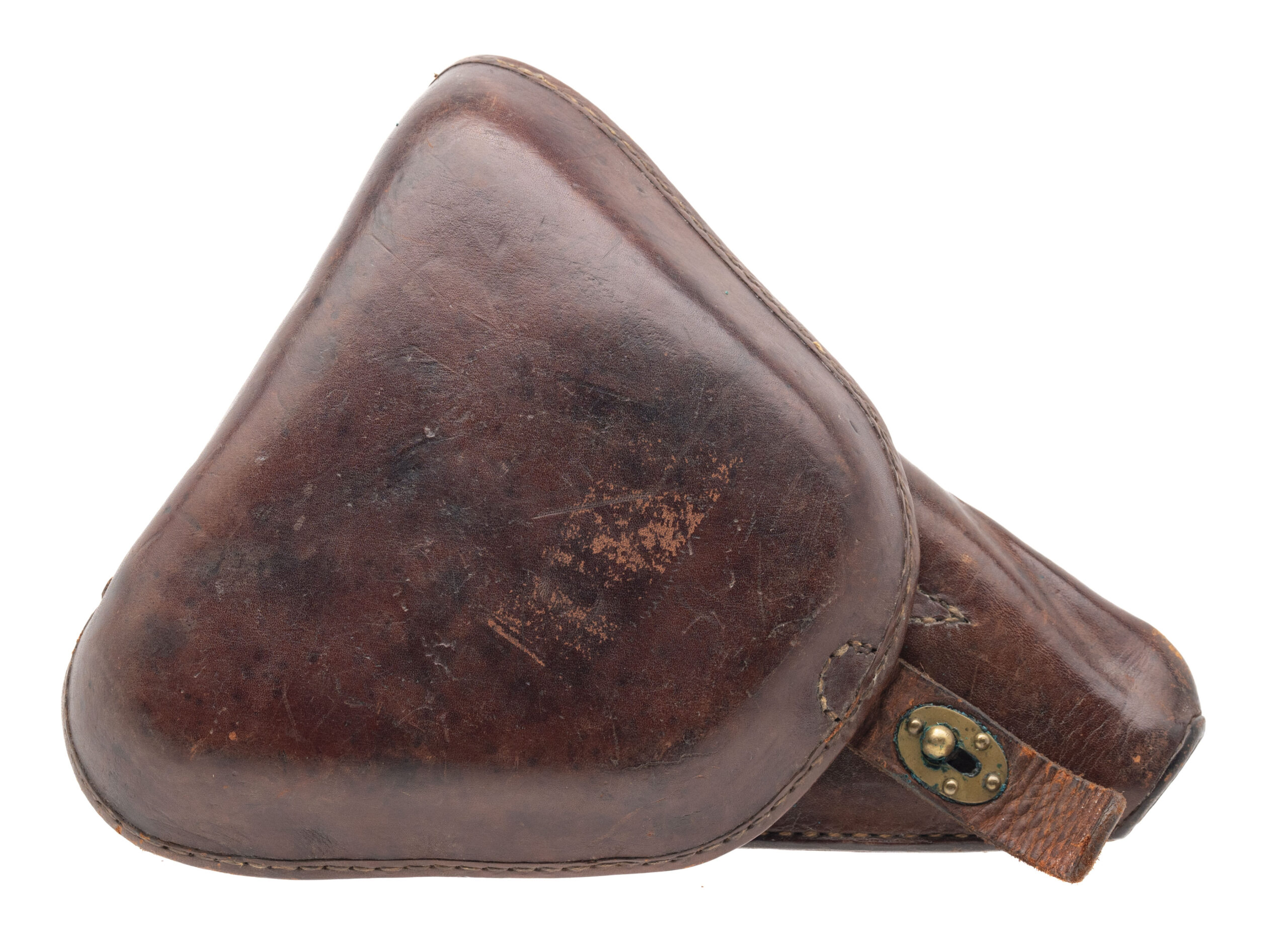 Serial No. 33705, manufactured July 1937 at the Kokubunji subcontractor facility under Nagoya, chambered in 8x22mm Nambu, with a 4.61” round barrel. This early wartime production Type 14 pistol remains in excellent original condition, retaining approximately 98% of its original blue finish. Serial numbers are matching throughout, including the magazine, while the firing pin and grips are unmarked, the wooden grips are in excellent condition, showing only minor handling impressions. The action is smooth and functions correctly. This example comes complete with its original clamshell-style brown leather holster. A well-preserved early example of a Kokubunji-manufactured Type 14 Nambu.
