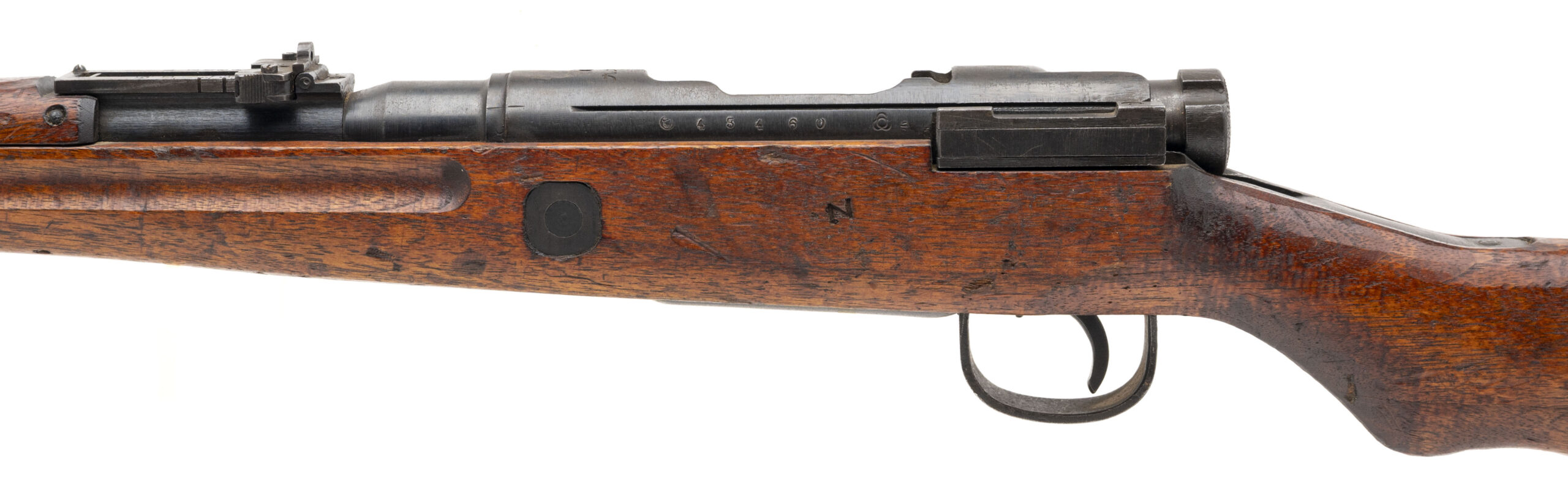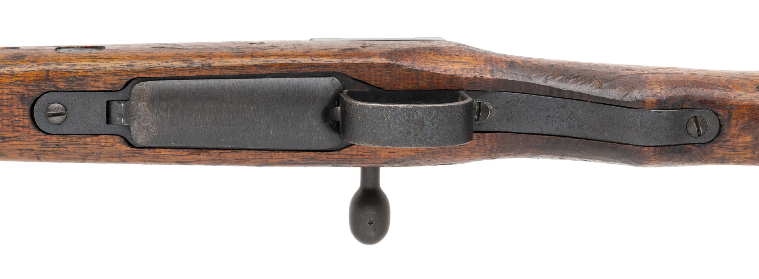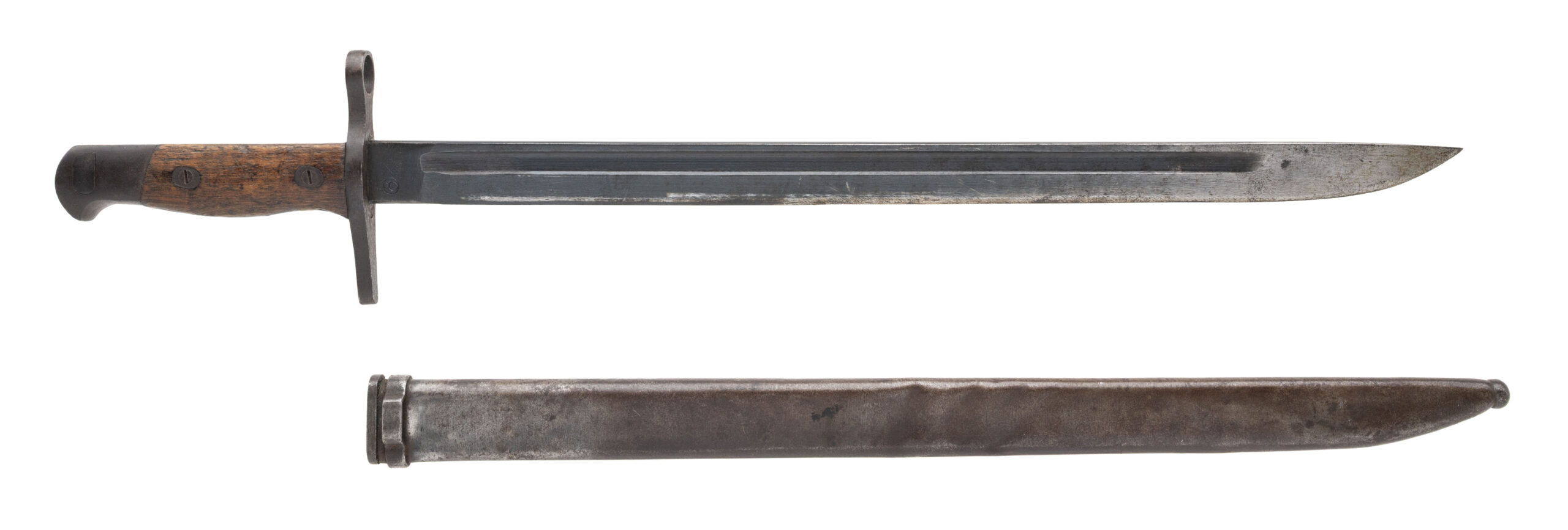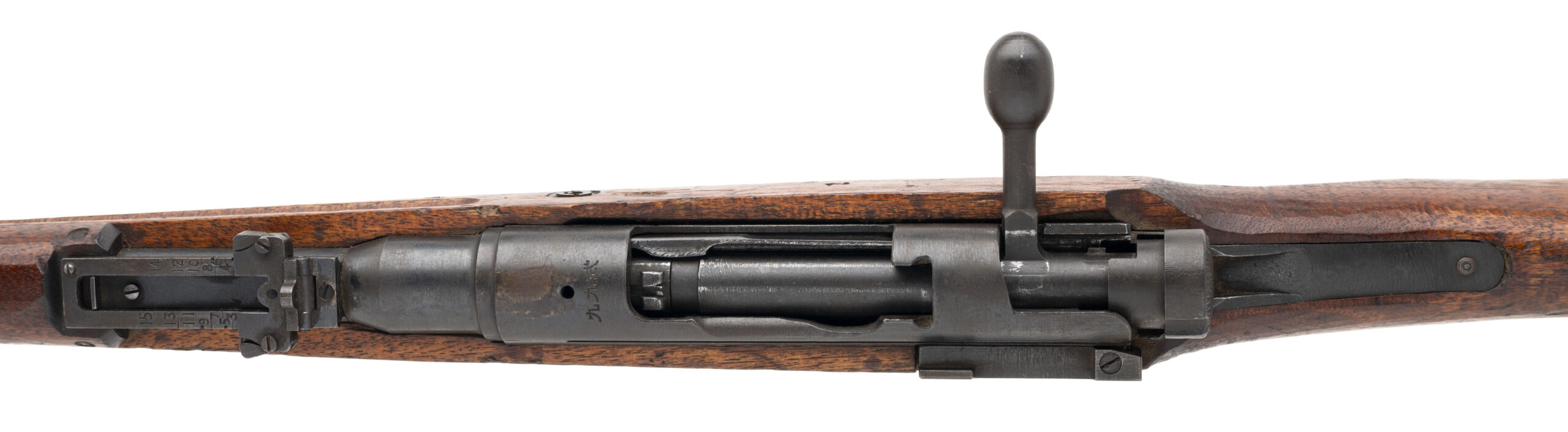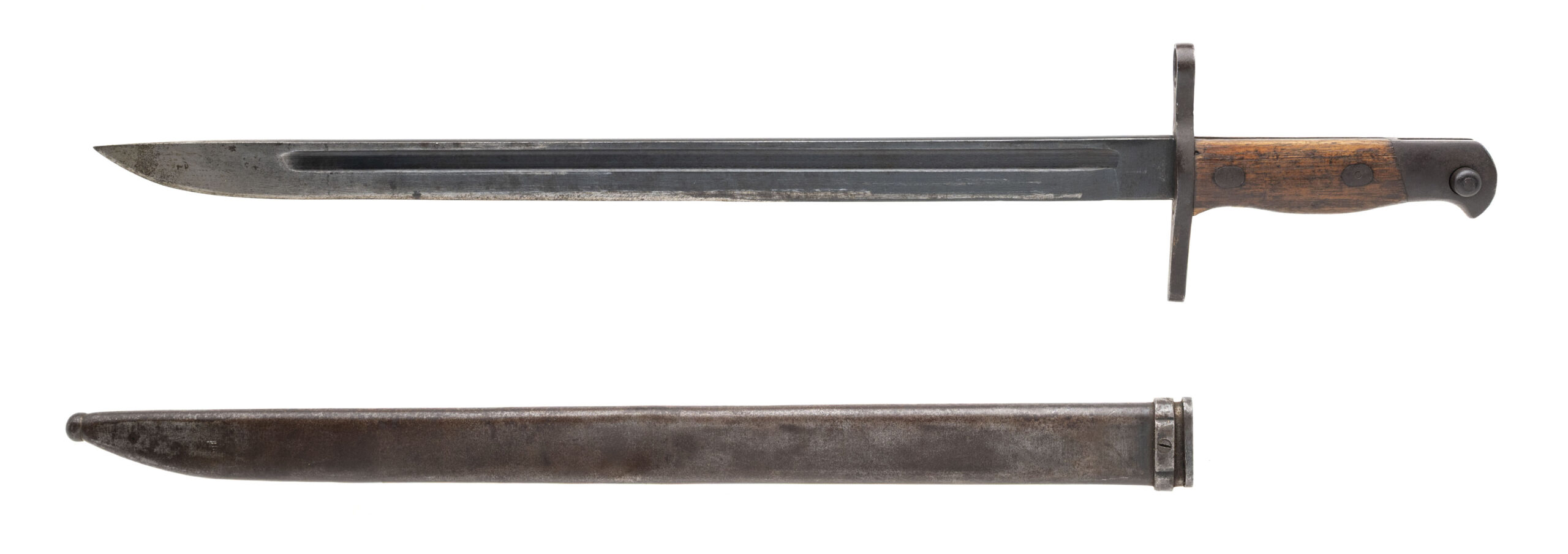 Serial No. 43460, produced circa 1944–1945, 7.7x58mm, 26" round barrel. Bore is good with strong rifling, and serial numbers are matching, though the safety knob is unmarked. Finish has thinned to a grey patina consistent with late-war production, and the mum has been removed. Stock shows honest handling marks with no cracks observed and retains the correct late-war style features. Action is smooth and functions correctly. Rifle is accompanied by a straight–quillon Type 30 bayonet manufactured by Toyoda Jidoshoki Seisakusho (Toyoda Automatic Loom Works) under Nagoya supervision. A solid, matching Series 24 example with correct late-war characteristics and desirable bayonet pairing.
