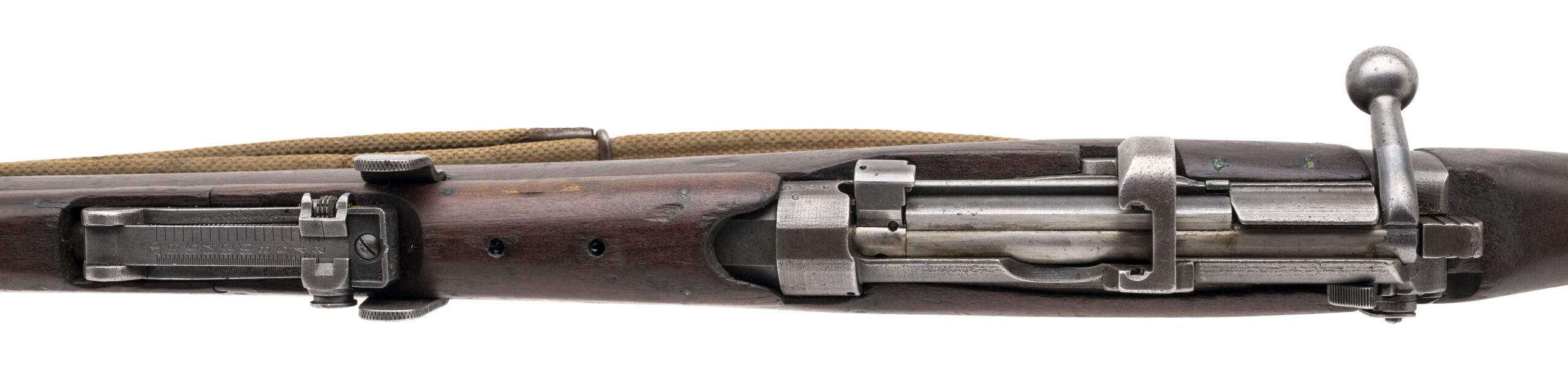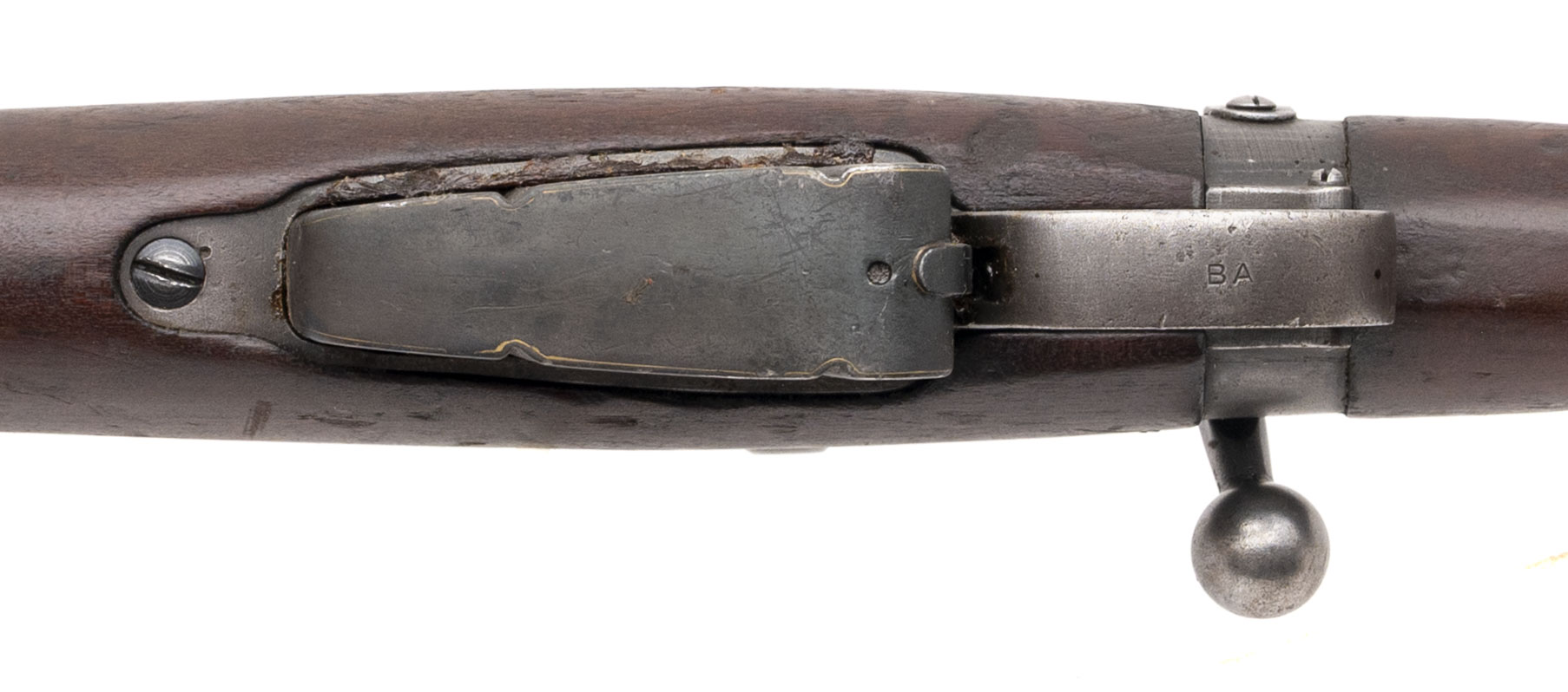 Serial No. D86532, manufactured in 1942 at the Lithgow Small Arms Factory, .303 British, 25” round barrel. Serial numbers are matching, magazine is unmarked. Metal finish has toned to a smooth grey patina with sharp factory markings remaining visible. The buttstock is dated 1943 and bears unit markings, adding historical context to its wartime service. Stock shows expected handling and usage marks, while the magazine follower retains traces of cosmoline. Action is smooth and functions correctly. A solid and representative example of a wartime Lithgow No.1 Mk.III* rifle, complete with matching components and documented 1943 stock.