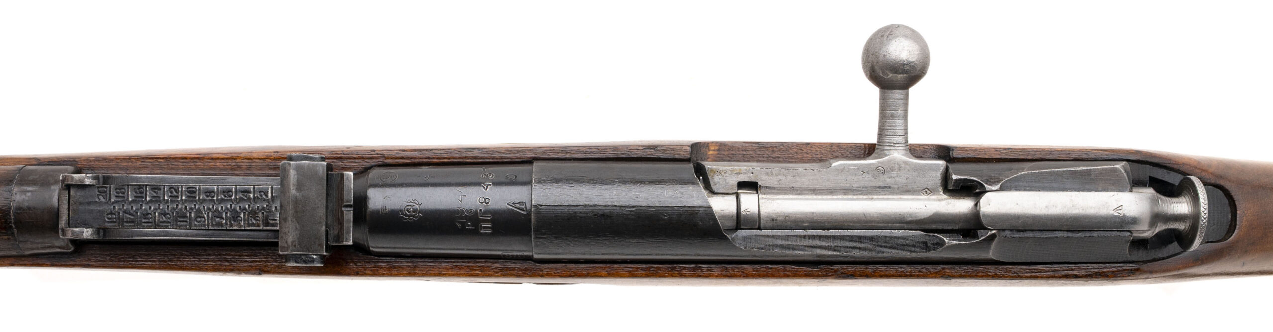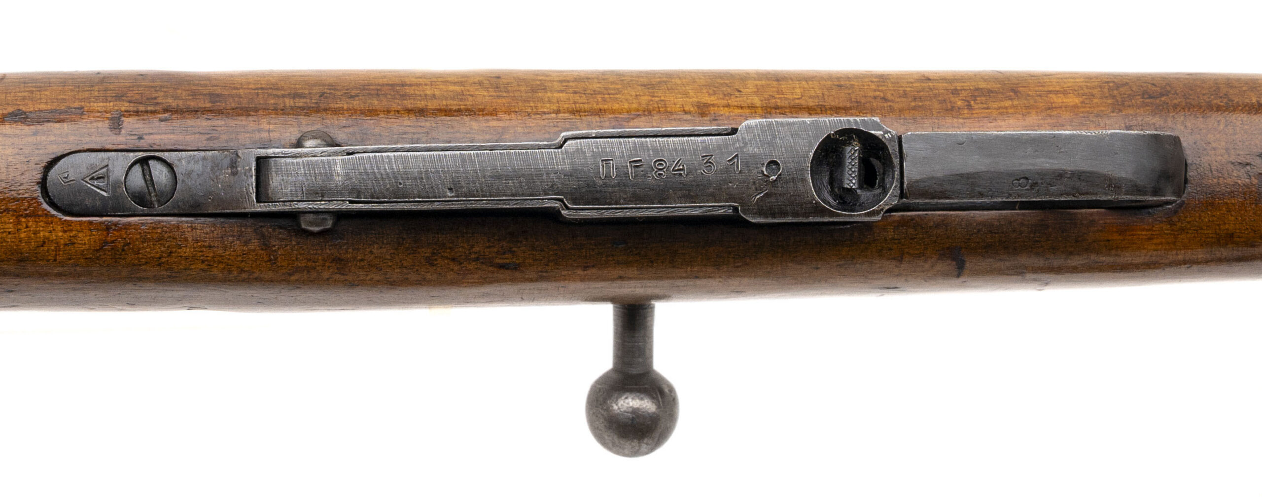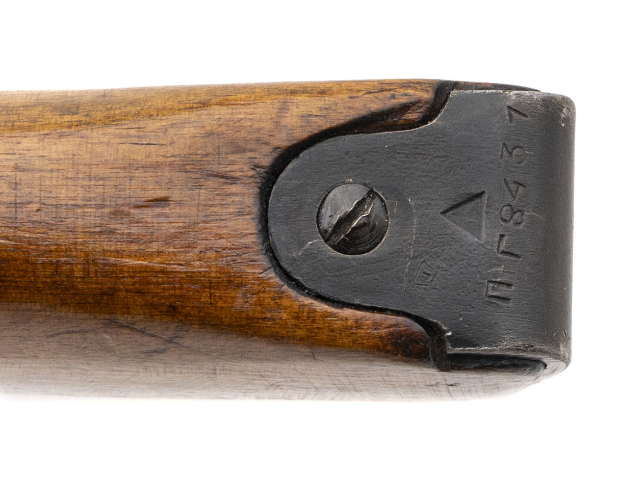 Serial No. PG8437, manufactured in 1941 at the Izhevsk Arsenal, chambered in 7.62×54R with a 29" round barrel bearing an import mark. The bore is good with strong rifling noted. Serial numbers are matching throughout. The rifle has been post-war arsenal refurbished, resulting in a clean and serviceable appearance typical of Soviet reissue rifles. Overall condition remains very good, and the rifle presents as a solid example of a wartime Izhevsk-produced M91/30. Action is smooth and functions correctly.