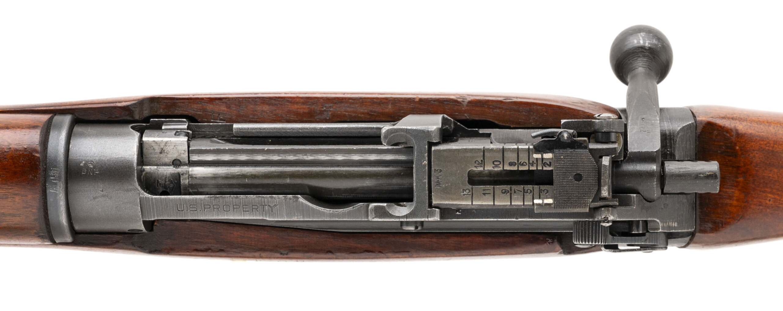 Serial No. 71C7821B, circa 1942, .303 British, 25.2” round barrel. Bore is bright and shiny with a small area of frosting noted, rifling remains strong. Finish is thinning to a grey patina, receiver is marked “U.S. PROPERTY/Flaming Bomb-5 No4 MKI*” Socket is marked with serial number/ “MADE IN USA”. Serial numbers are non-matching, stock is in excellent condition
