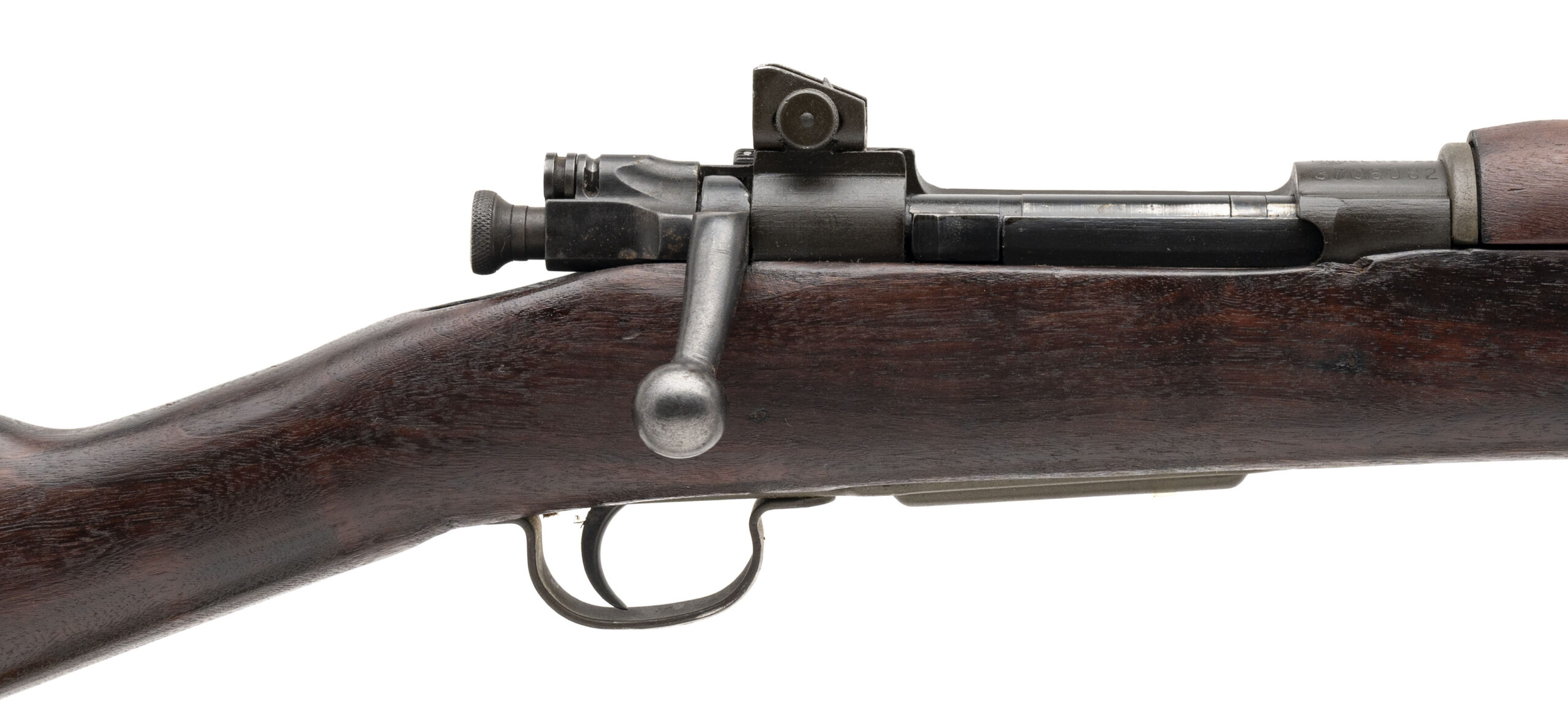 Serial No. 3706082, manufactured in 1943, .30-06 Springfield, 24” round barrel marked “S.C. / Flaming Bomb / 6-43.” Rifle remains in very good overall condition, retaining approximately 95–98% of its original finish. Stock shows scattered light handling impressions consistent with light service use. Action is smooth and functions correctly. A fine example of the Smith-Corona–produced Model 03-A3, one of the key U.S. service rifles manufactured under wartime contract during World War II.
