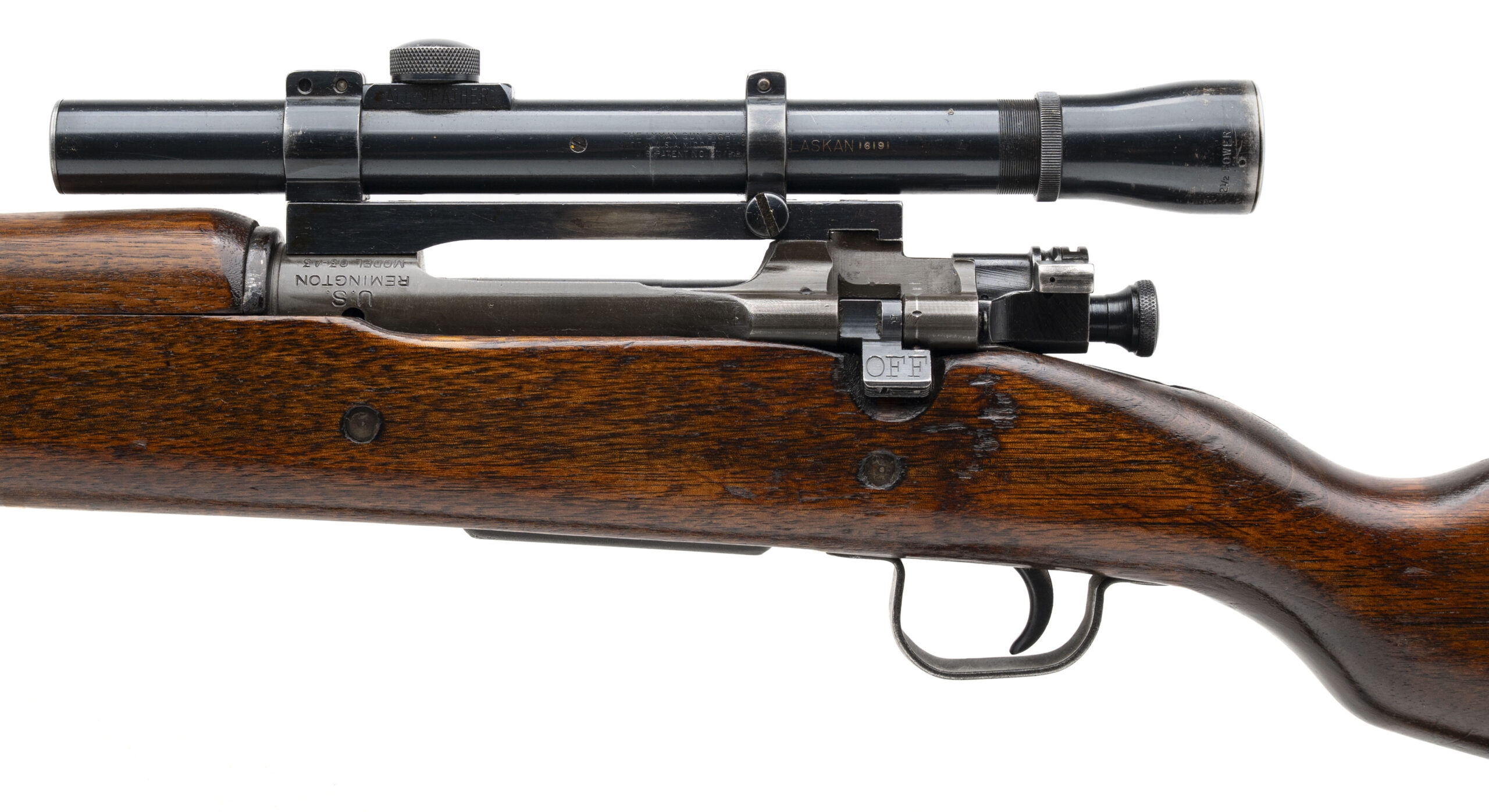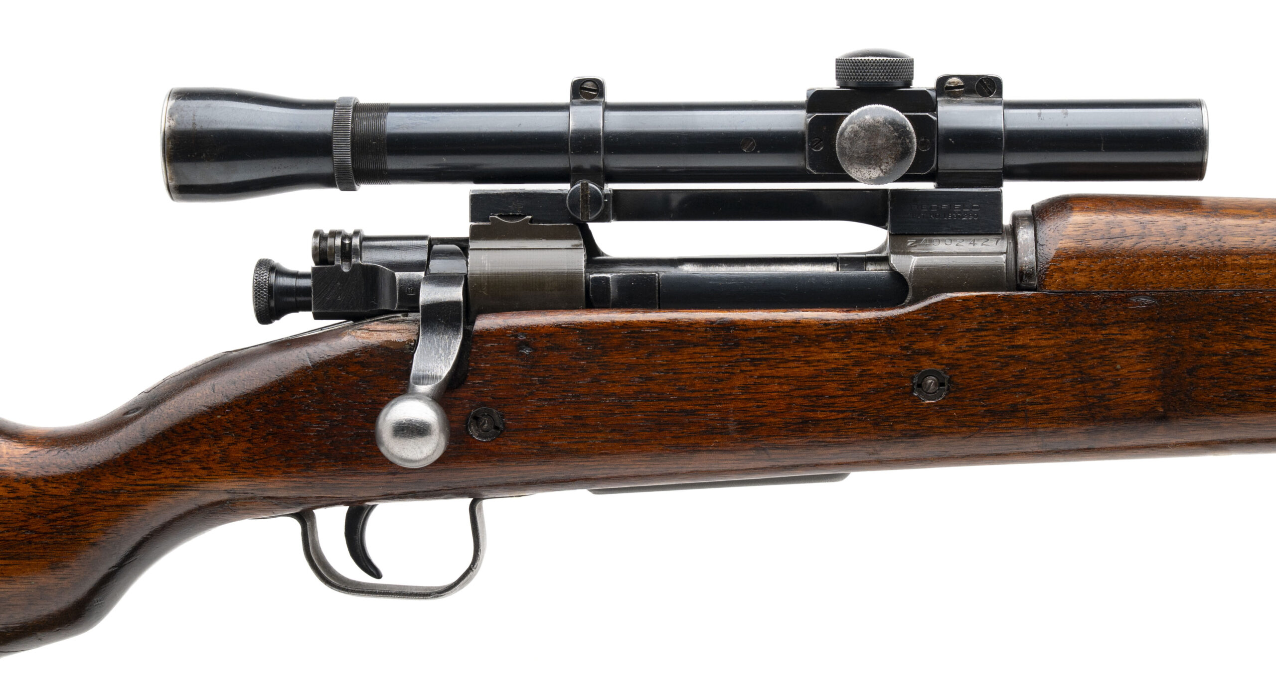 Serial No. Z4002427, made in 1943, .30-06, 24” round barrel marked “R.A. / Flaming Bomb / 9-43”. Barrel and receiver retain the majority of their original blued finish, with light service wear consistent with careful use. Receiver is correctly marked on the left side “U.S. / Remington / Model 03-A3”, with the serial number on the right, confirming proper sniper designation for the 03-A4 variant. Scope base is marked “REDFIELD / Pat. No. L837290”, and fitted with a Lyman Alaskan scope, marked “The Lyman Gun Sight Co. – ALASKAN 16191”. The top turret mount is marked “ALL WEATHER”, and optics remain clear, indicating fully functional sighting capability. Stock is in very good condition, showing only the lightest handling impressions, and remains solid with no structural issues. Action is smooth and functions correctly.
