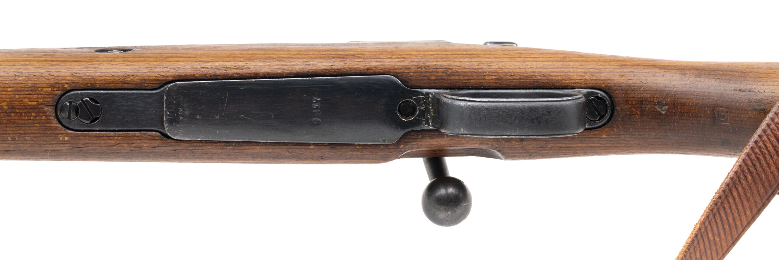 Serial No. G5897, manufactured in 1944 at the Preduzeće 44 Factory, chambered in 8mm Mauser, with a 24” round import-marked barrel. This rifle is a Yugoslavian refurbishment of a German K98k, produced near the end of WWII. Serial numbers are matching throughout, and the rifle retains the majority of its original blue finish. The Yugoslav crest remains handsomely struck on the receiver. Stock is in very good condition, with light handling impressions consistent with age and service. The rear sight retains a faint German Eagle/623 Waffenamt, indicating leftover wartime German components were used during assembly or refurbishment. Action is smooth and functions correctly.