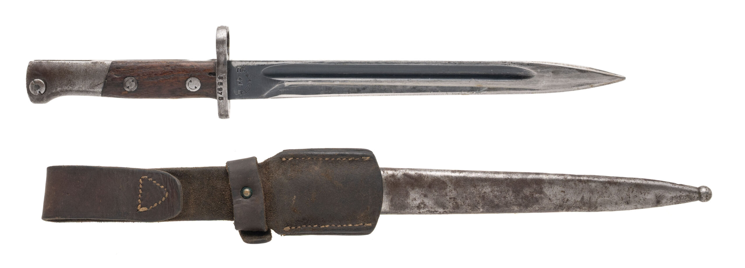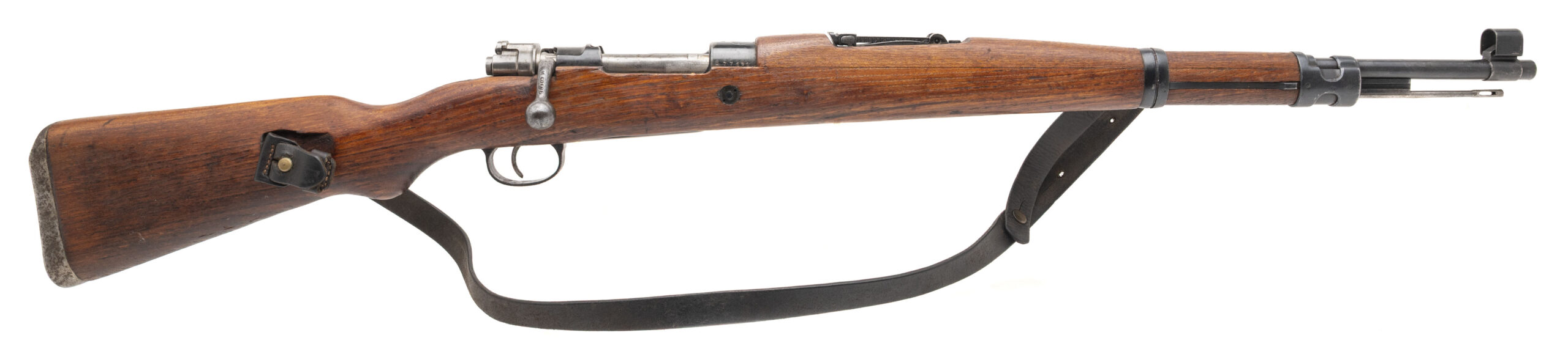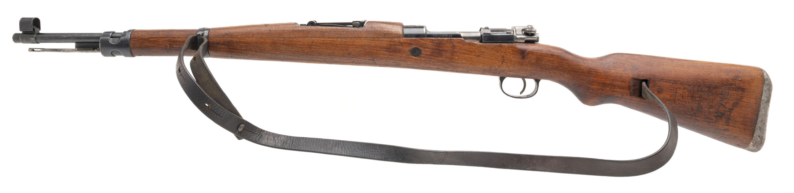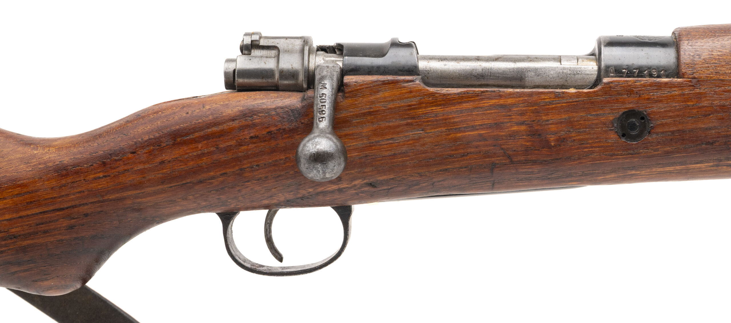 Serial No. A77191, manufactured circa 1950–1952, chambered in 8mm with a 23 ½” round barrel. The bore is good, showing light frosting in the grooves with rifling remaining sharp. The bolt is non-matching, while approximately 92% of the original finish remains on the barrel and receiver. The stock is in very good condition with light handling impressions consistent with service and storage. Action is smooth and functions correctly. Rifle comes complete with bayonet and frog.