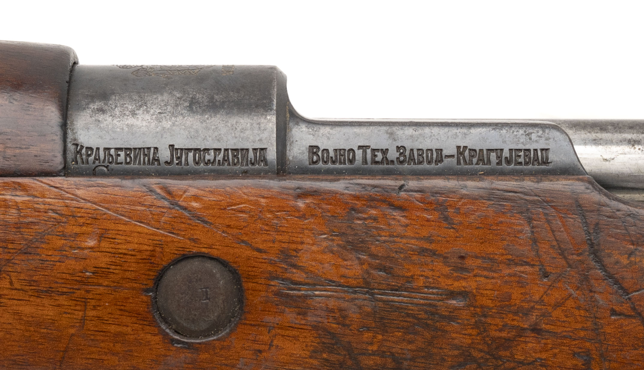 Serial No. 42807, made circa 1930s–1940s, chambered in 8mm, with a 23 ½” round barrel. Metal has turned to an even grey patina with age. The receiver is proudly marked with the Serbian crest. Stock shows expected handling and usage wear consistent with service. Action is smooth and functions correctly. Rifle comes with original sling. This rifle is based on the FN 1924 Mauser pattern and produced by the Kingdom of Yugoslavia at the Kragujevac arsenal. These rifles equipped the Royal Yugoslav Army prior to World War II and many were later captured and reused by Axis and partisan forces alike during the war. A solid example of a hard-used Balkan service rifle with historical significance.