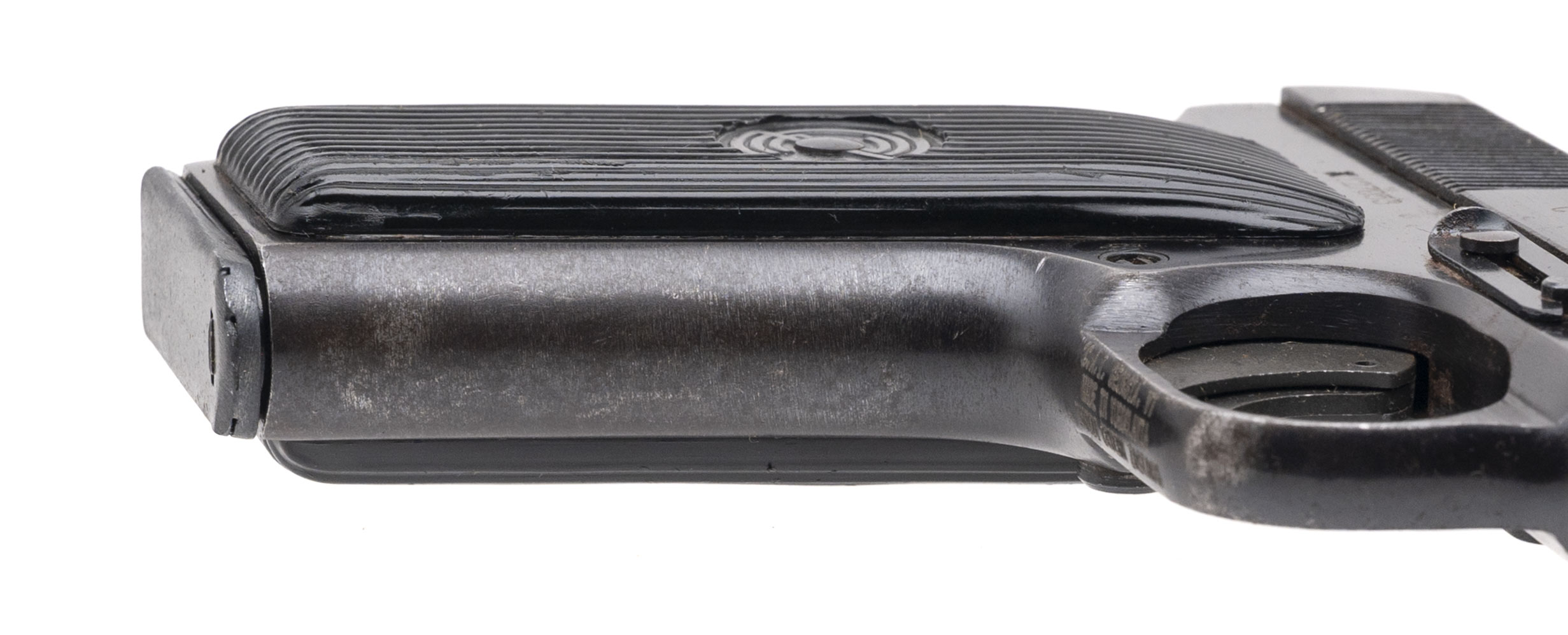 Serial number X127053. Made in 1971 with a 4.6-inch round barrel that has a bright bore with strong visible rifling although there is some frosting noted between the grooves. The M57 is a modified & unlicensed derivative of the Soviet TT-33 Tokarev pistol that has longer grip length & therefore greater magazine capacity. It was the standard service pistol of the Yugoslav People's Army from 1961 until the early 1990s. Condition overall is very good with original factory blued finish across the metallic parts that has oxidized in a few places. Century Arms import mark on the bottom of the trigger guard. Comes with an import compliant safety shoe trigger & an aftermarket 9-round magazine.