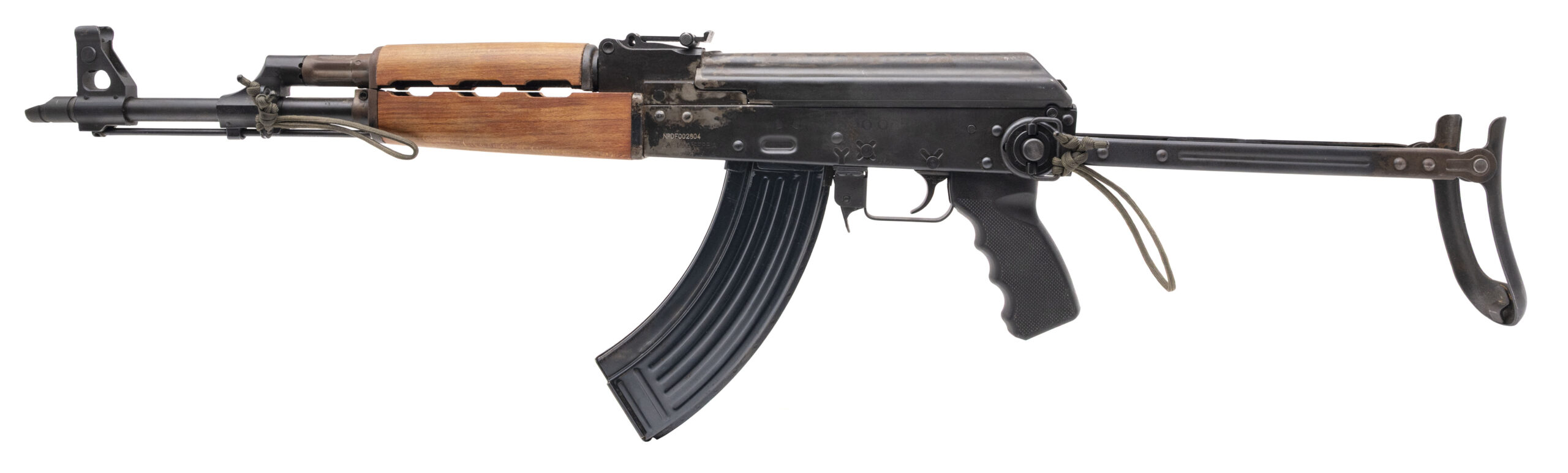 SN: NPDF002804. Modern production, 7.62x39mm with an 16" barrel. Bore is bright with strong rifling. Serbian made Yugo pattern rifle with a wood handguard and under-folding stock. Metal shows wear but the overall condition is good.